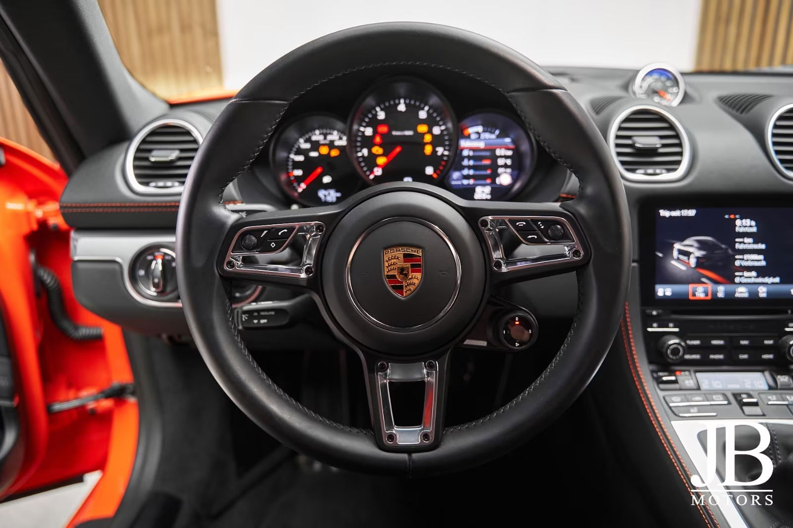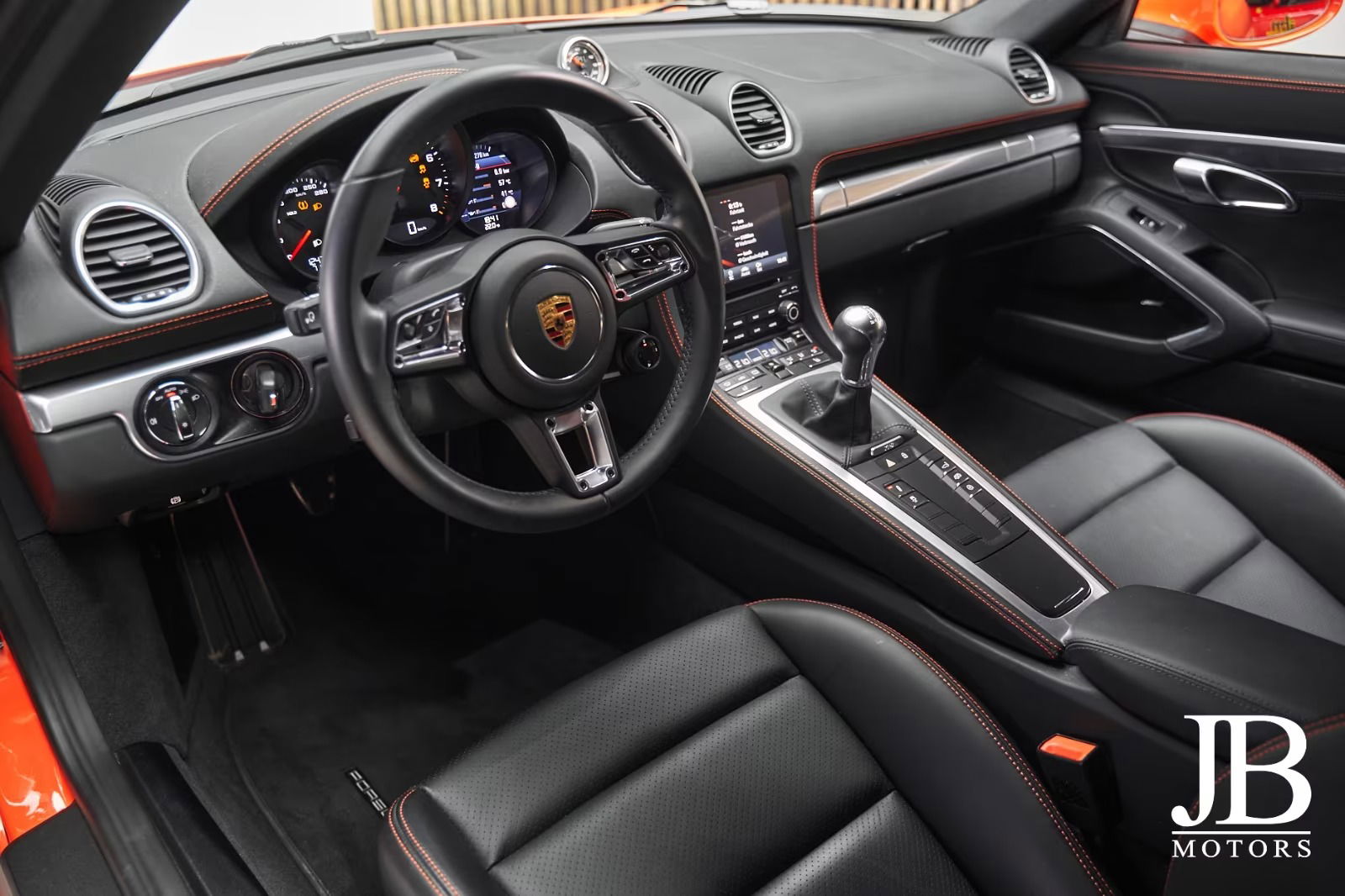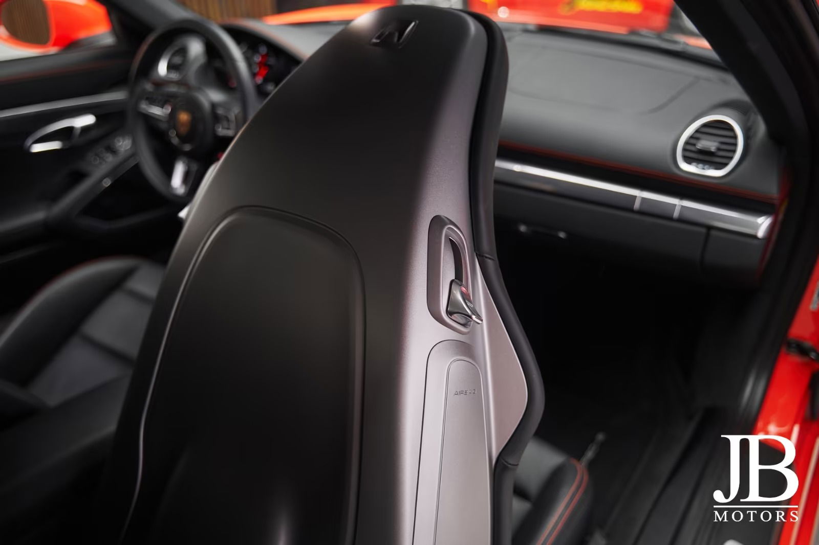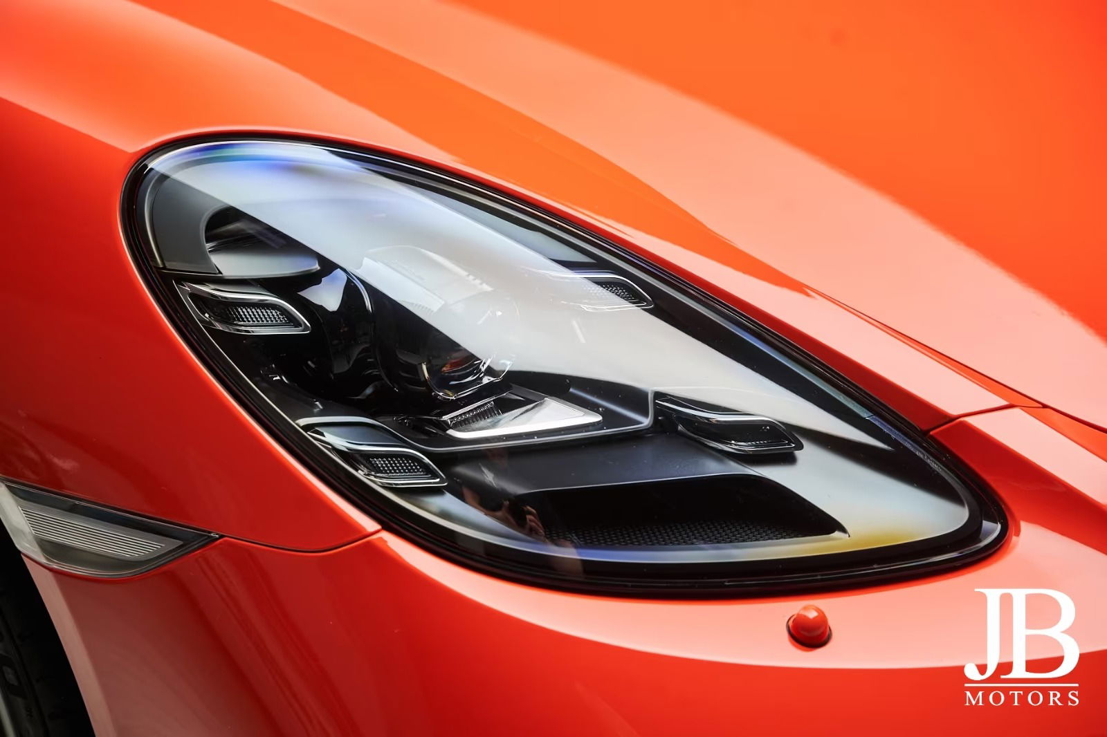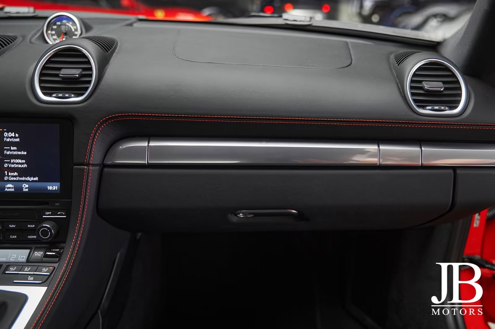 Special features: Apple CarPlay incl. voice control – exterior/interior mirrors with automatic dimming and rain sensor – electrically folding exterior mirrors – anti-theft alarm system with interior monitoring – Driver assistance system: Front and rear parking assist – Driver assistance system: Lane change assist – Driver assistance system: Traffic sign recognition – Black window trim (high-gloss) – Windshield with band filter at the top – Floor mats – Interior: leather – Interior package with contrasting decorative stitching – Dual-zone automatic climate control – Front headrests with Porsche crest – Fuel tank: 64 liters – Heated steering wheel with multifunction (additional AV to steering wheel)