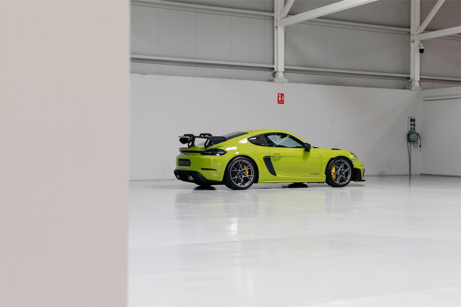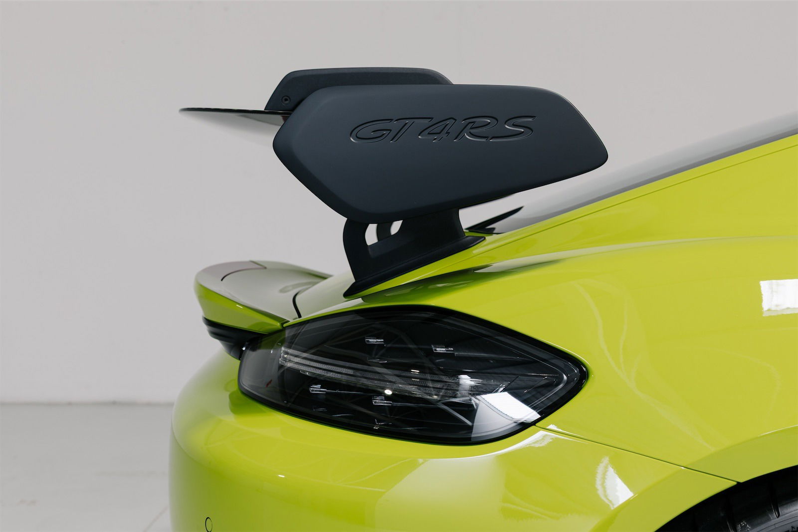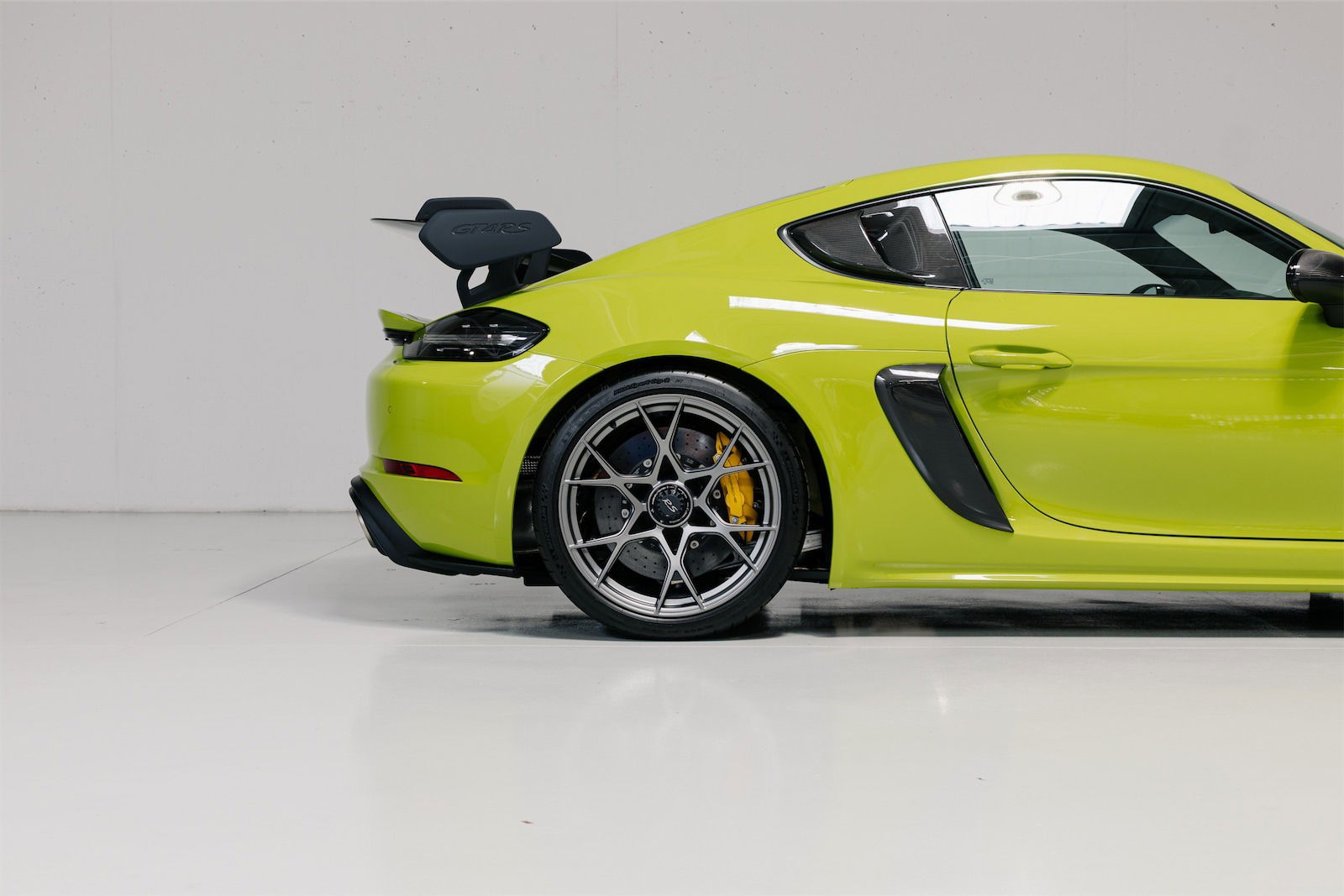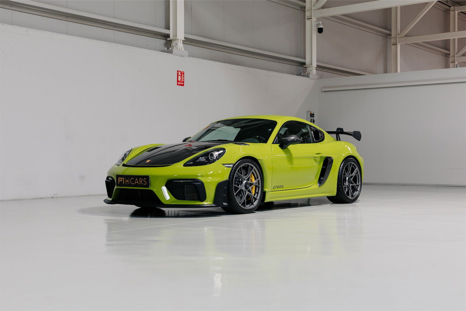 For sale: Porsche 718 Cayman GT4 RS in Paint to Sample (PTS) Lindengreen (Chartreuse). Equipped with Weissach Package, Porsche Ceramic Composite Brakes (PCCB) and Lift System. It has only 120 kilometres and is in new condition. The car comes with its original purchase invoice, service books, manuals, and the COC (Certificate of Conformity). A stunning example, ready to drive and enjoy. Feel free to get in touch with our team, we can help with transportation and delivery.