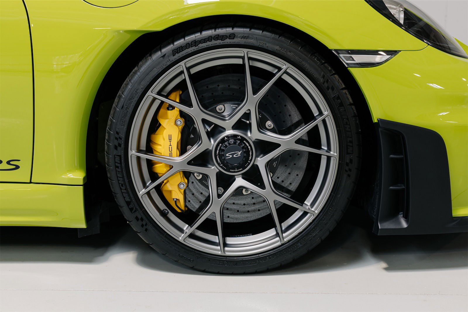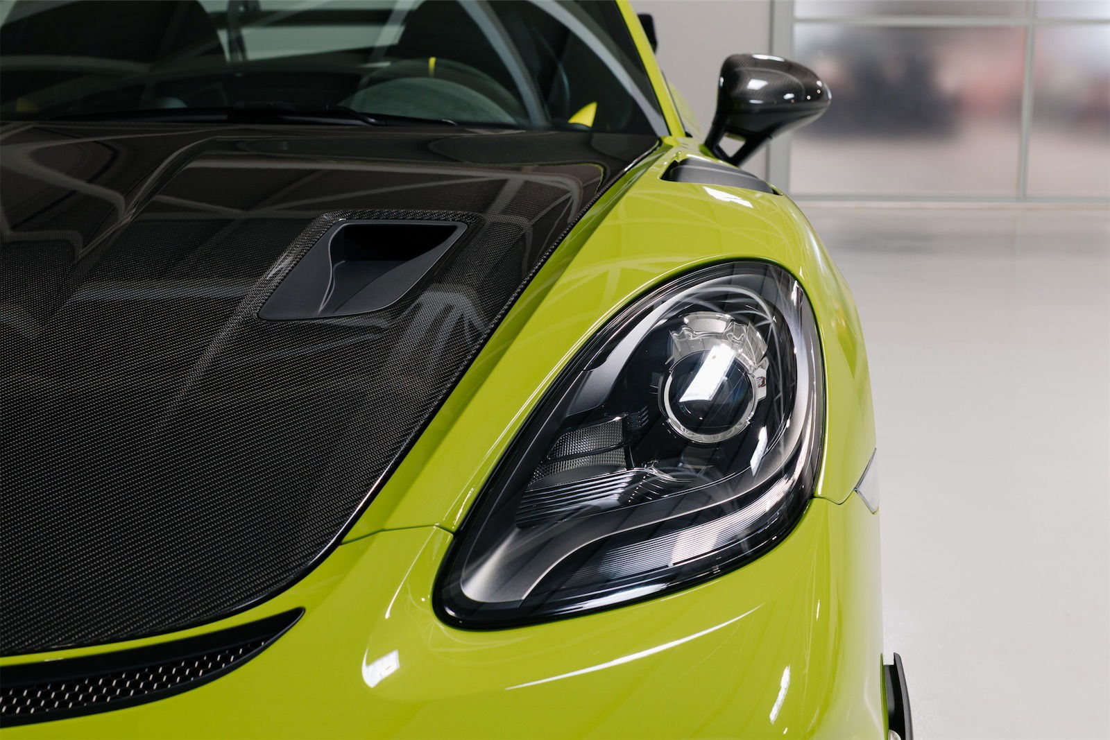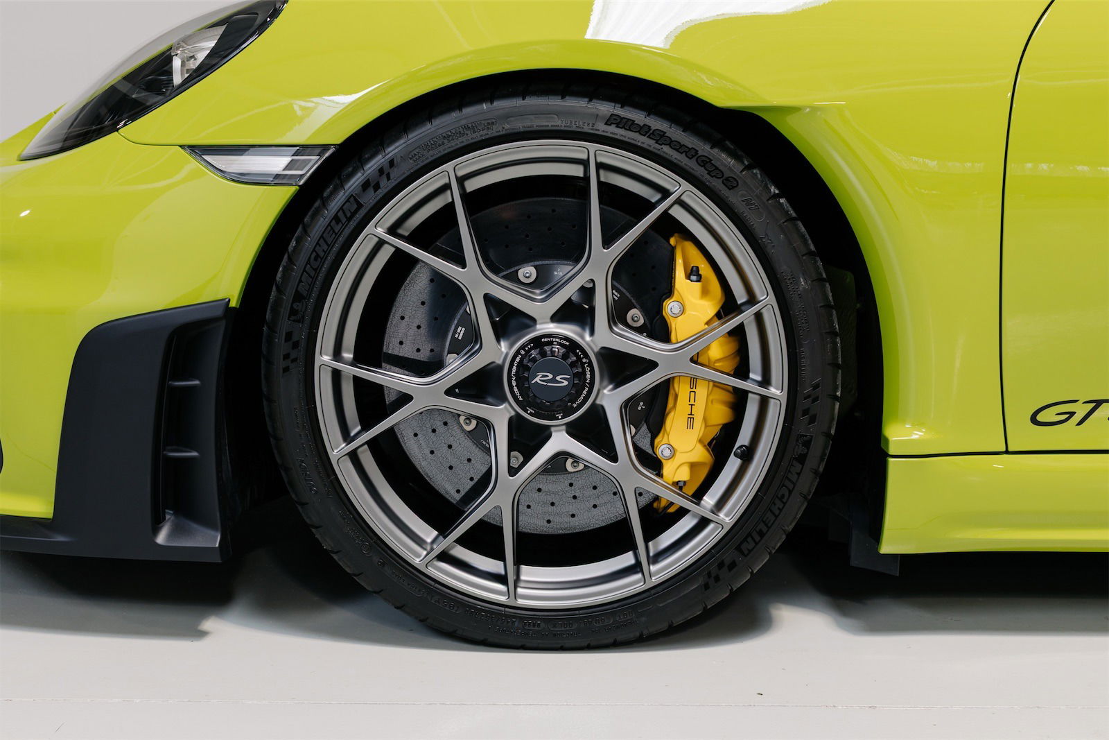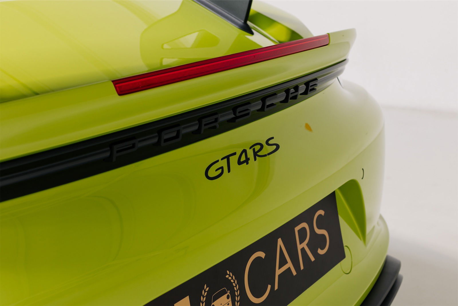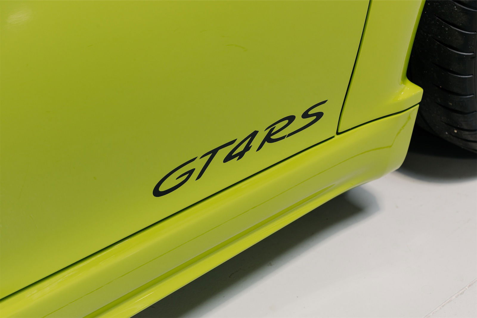 For sale: Porsche 718 Cayman GT4 RS in Paint to Sample (PTS) Lindengreen (Chartreuse). Equipped with Weissach Package, Porsche Ceramic Composite Brakes (PCCB) and Lift System. It has only 120 kilometres and is in new condition. The car comes with its original purchase invoice, service books, manuals, and the COC (Certificate of Conformity). A stunning example, ready to drive and enjoy. Feel free to get in touch with our team, we can help with transportation and delivery.