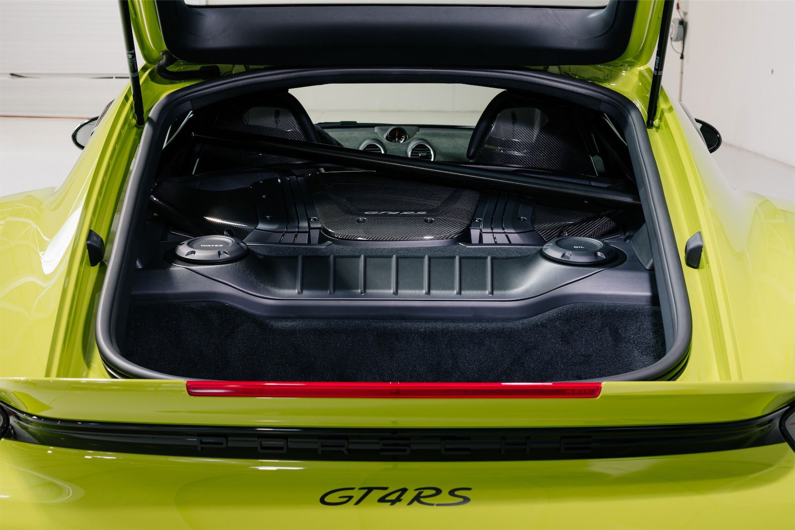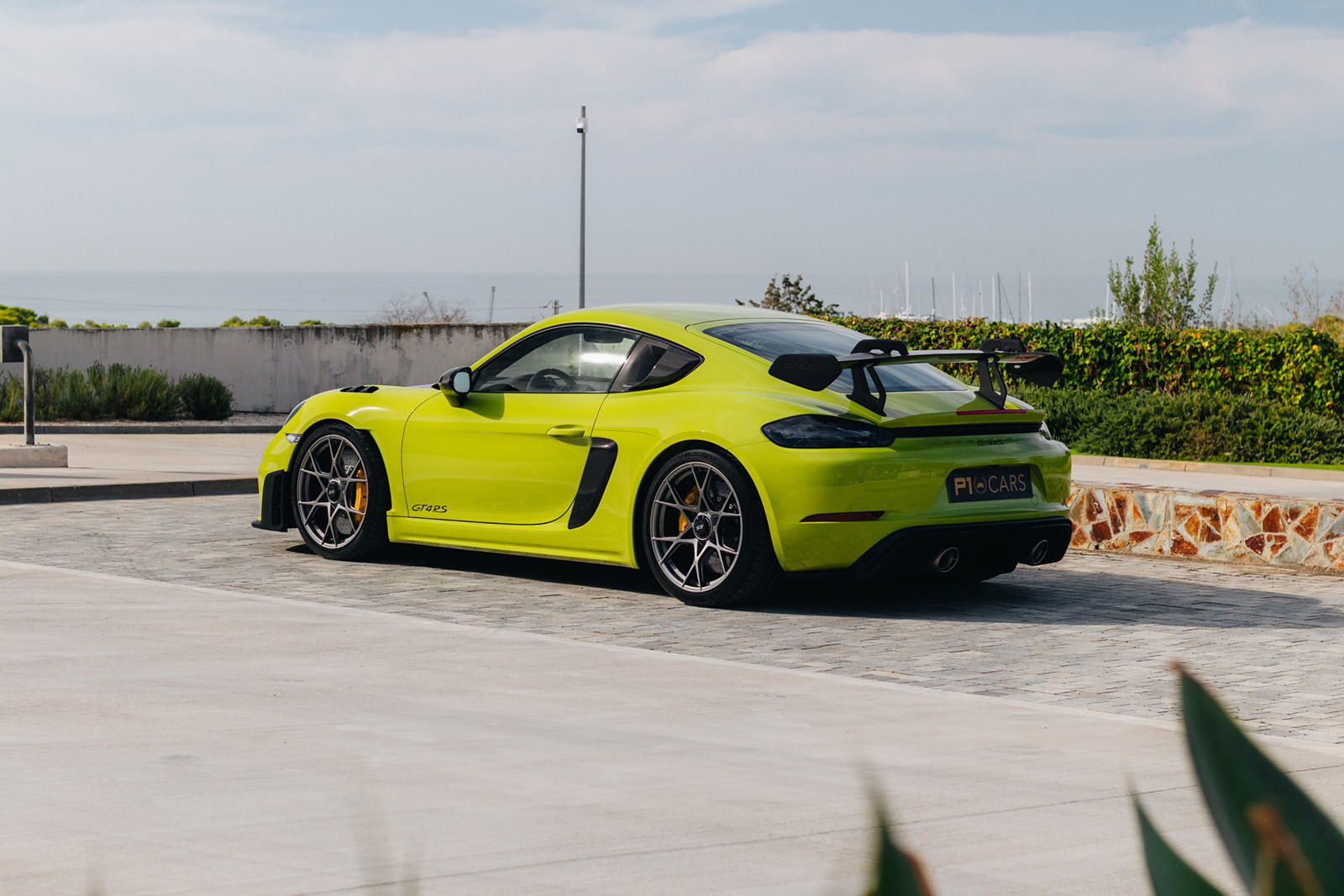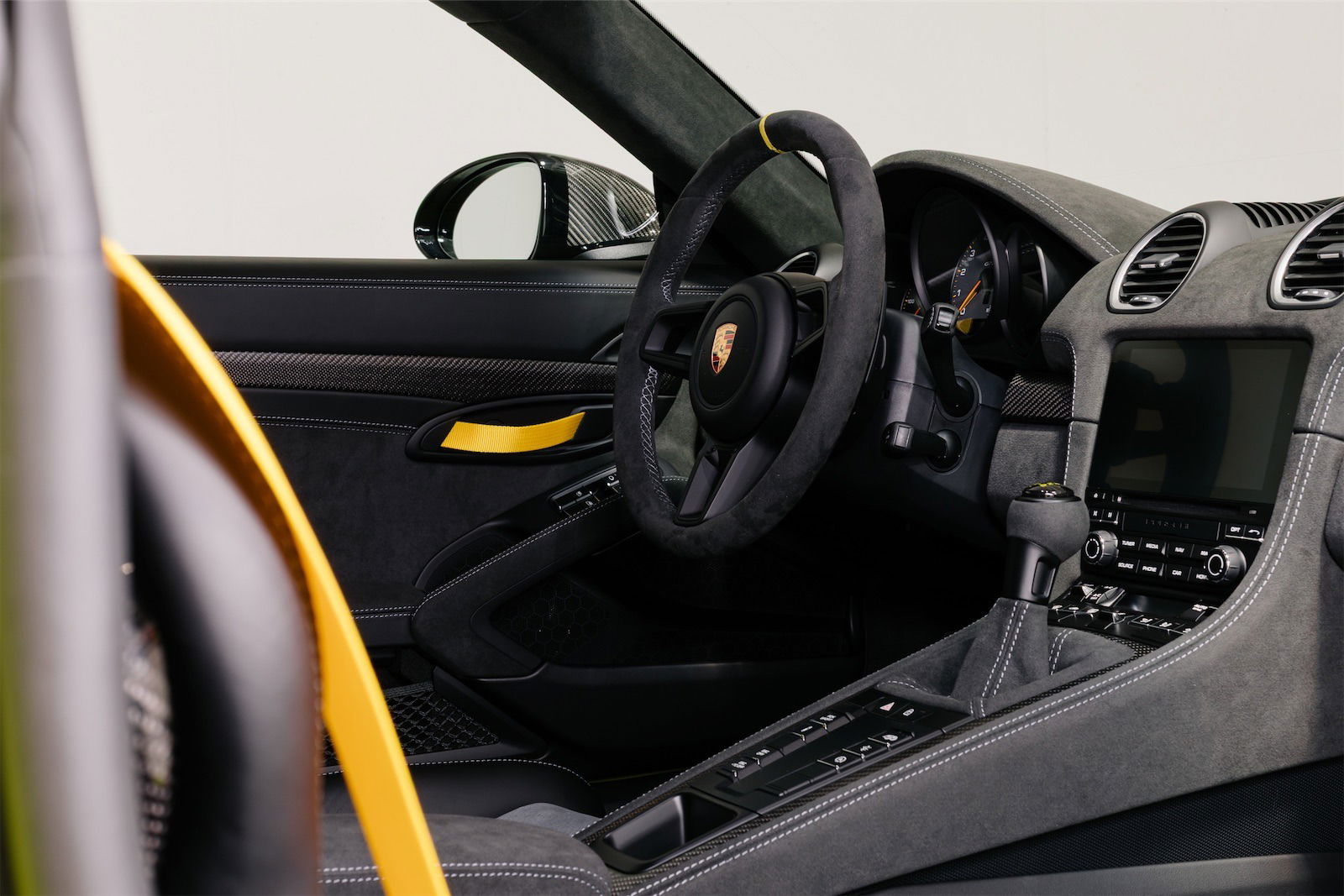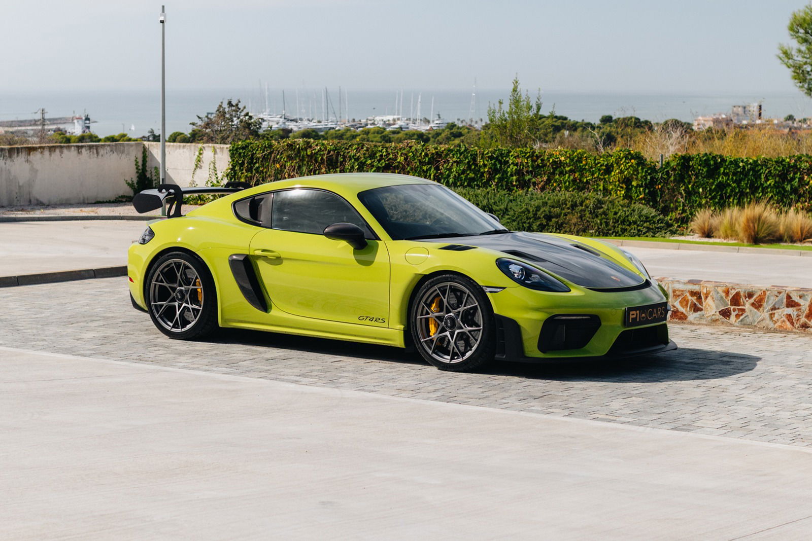 For sale: Porsche 718 Cayman GT4 RS in Paint to Sample (PTS) Lindengreen (Chartreuse). Equipped with Weissach Package, Porsche Ceramic Composite Brakes (PCCB) and Lift System. It has only 120 kilometres and is in new condition. The car comes with its original purchase invoice, service books, manuals, and the COC (Certificate of Conformity). A stunning example, ready to drive and enjoy. Feel free to get in touch with our team, we can help with transportation and delivery.