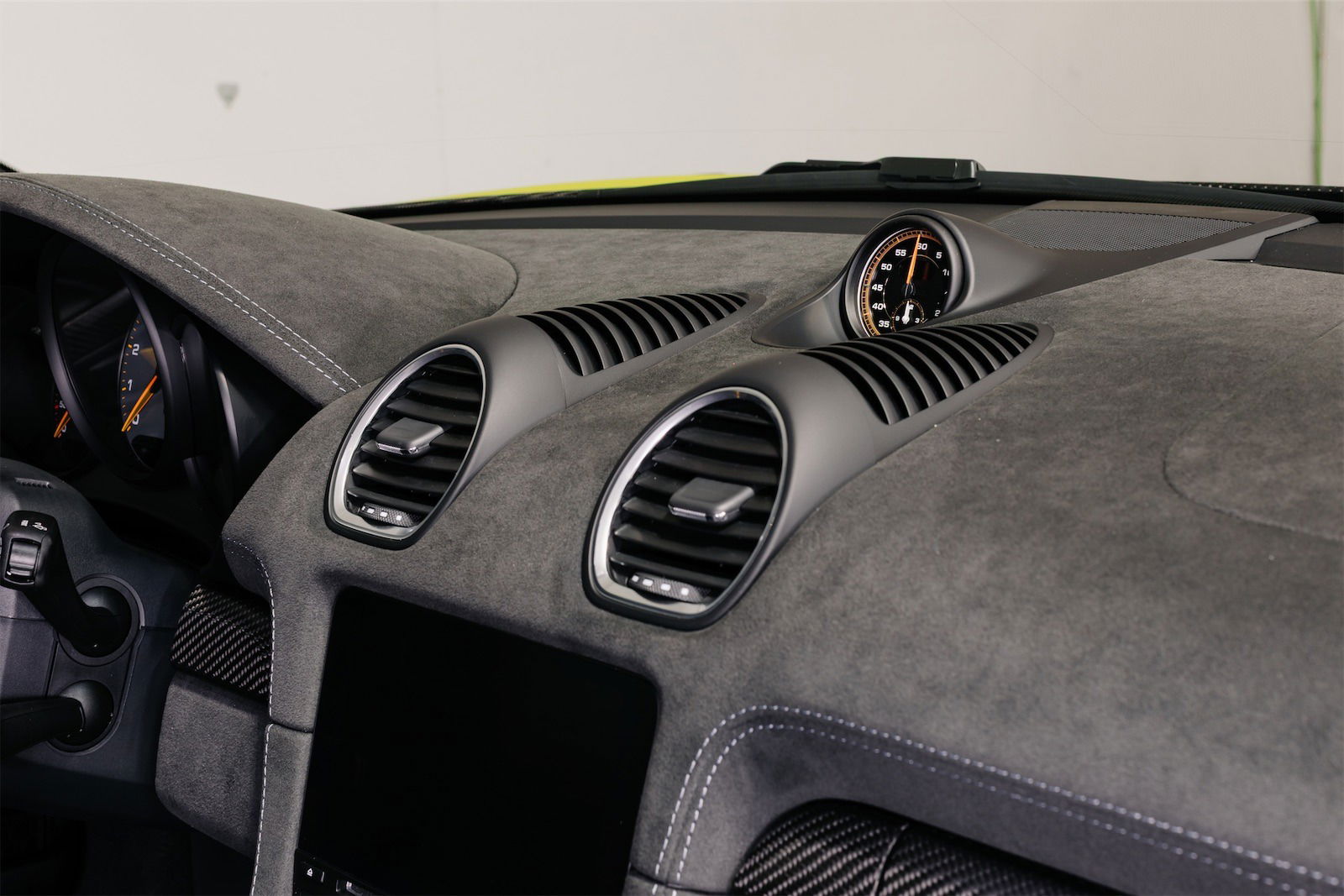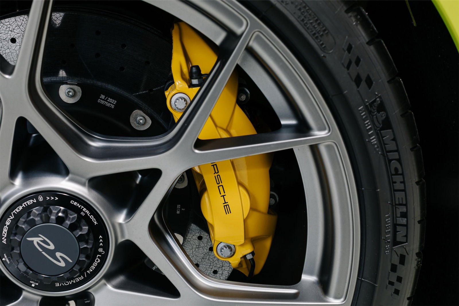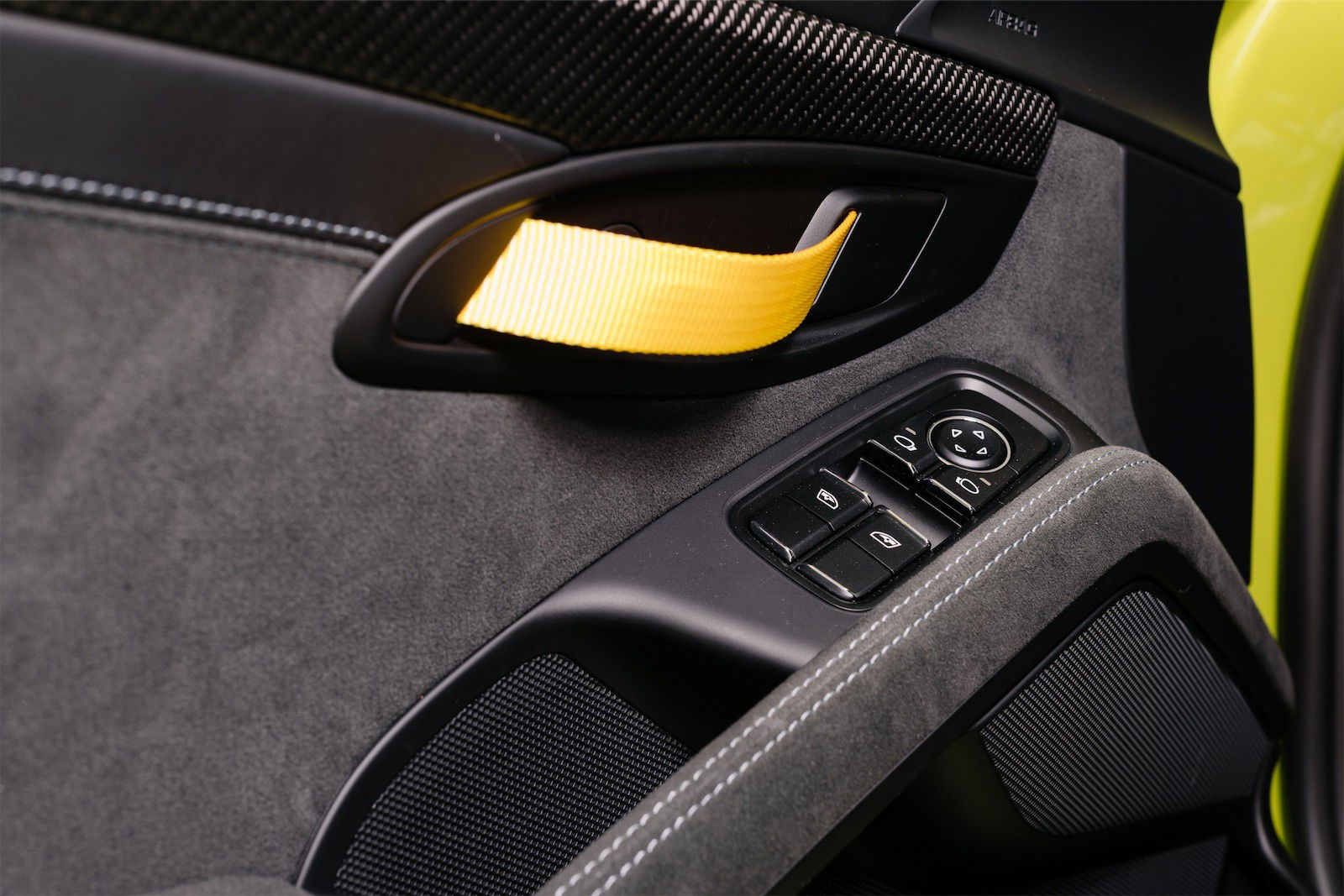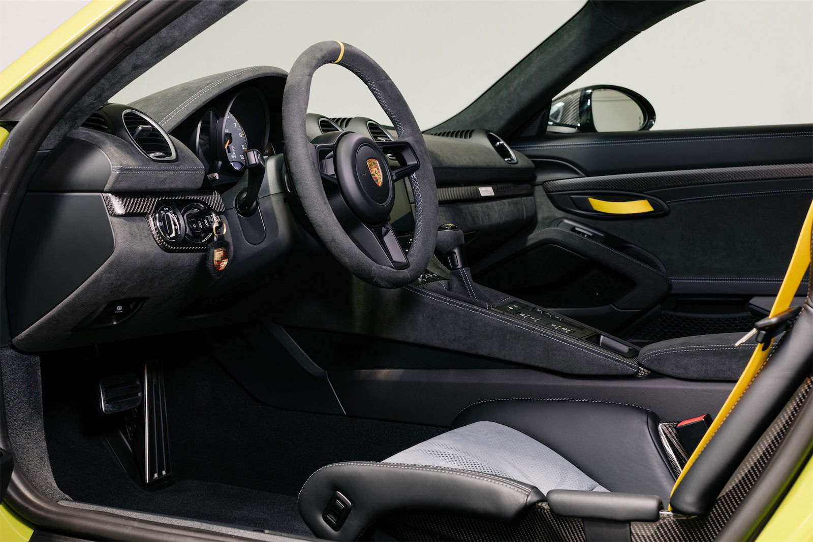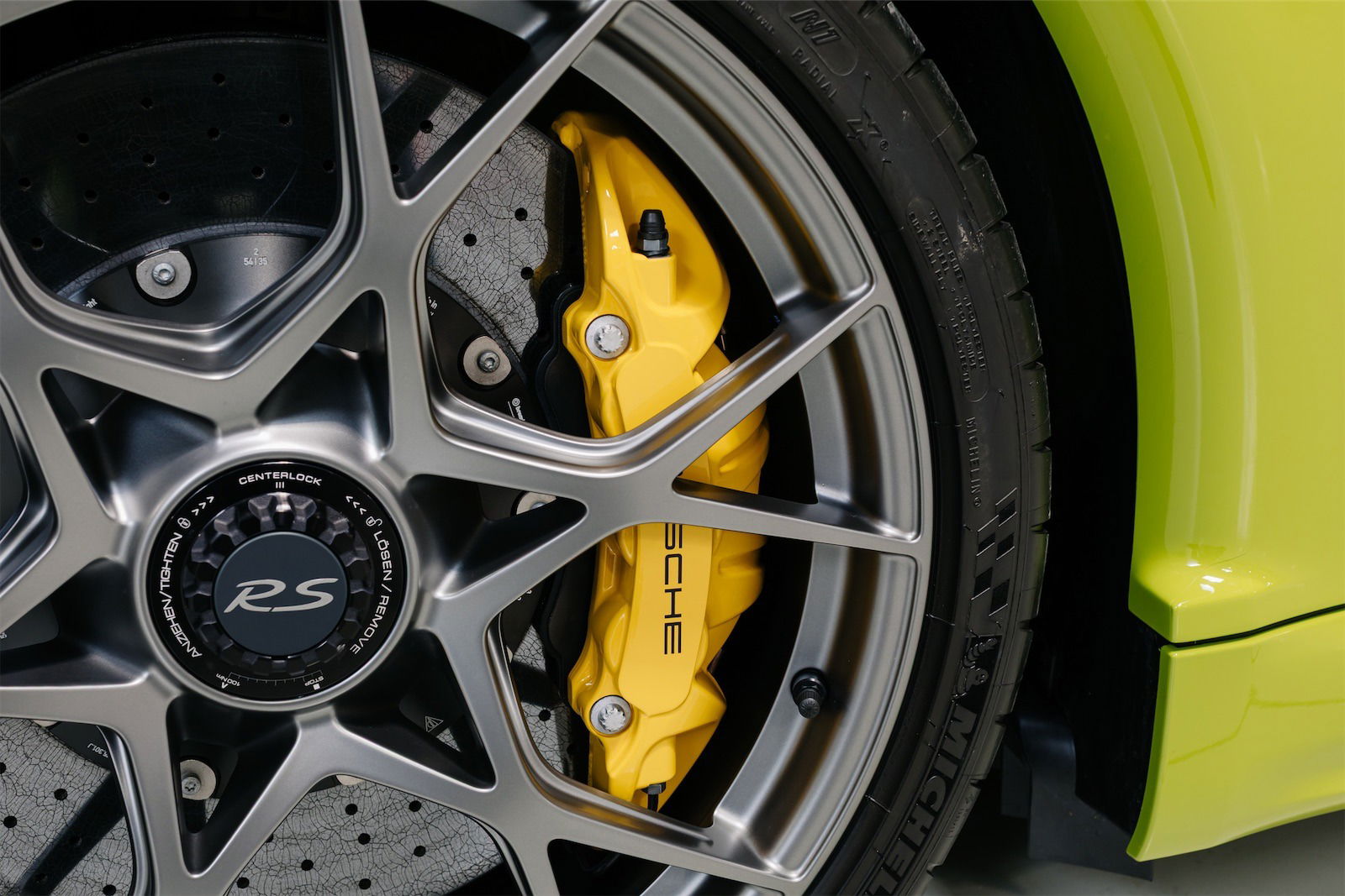 For sale: Porsche 718 Cayman GT4 RS in Paint to Sample (PTS) Lindengreen (Chartreuse). Equipped with Weissach Package, Porsche Ceramic Composite Brakes (PCCB) and Lift System. It has only 120 kilometres and is in new condition. The car comes with its original purchase invoice, service books, manuals, and the COC (Certificate of Conformity). A stunning example, ready to drive and enjoy. Feel free to get in touch with our team, we can help with transportation and delivery.