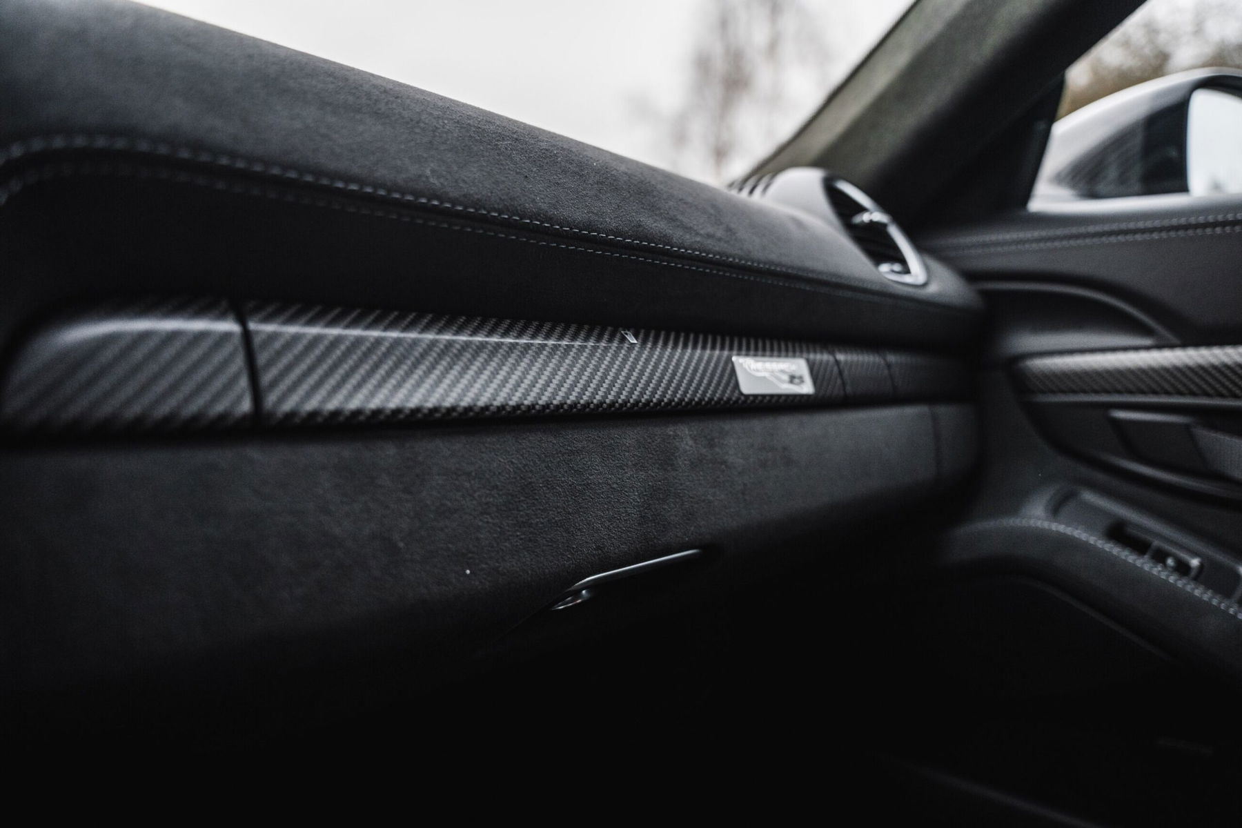 61 Weissach interior package with extended elements in leather and Race-Tex, Black and Arctic Grey