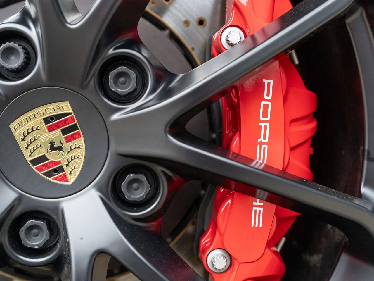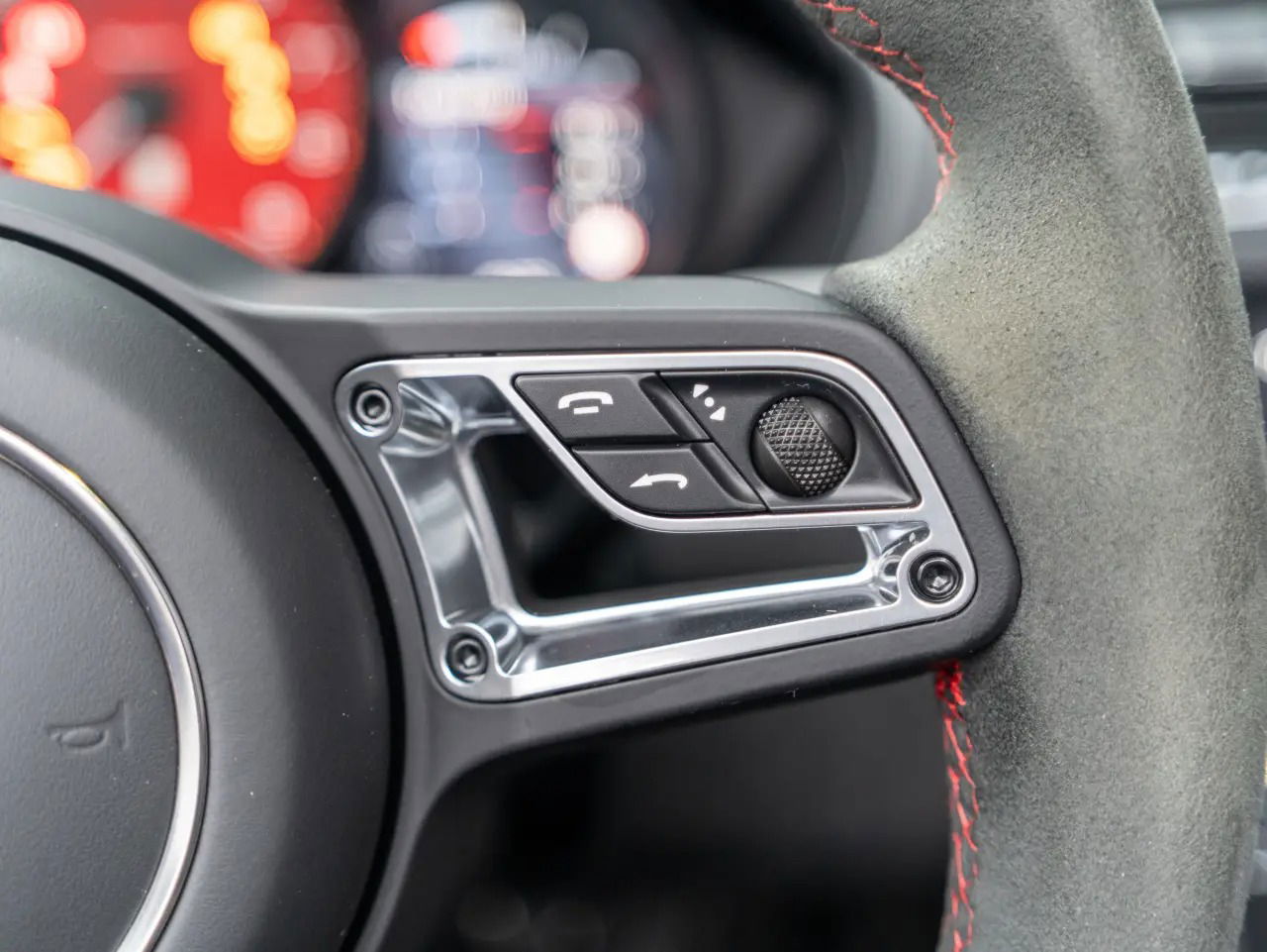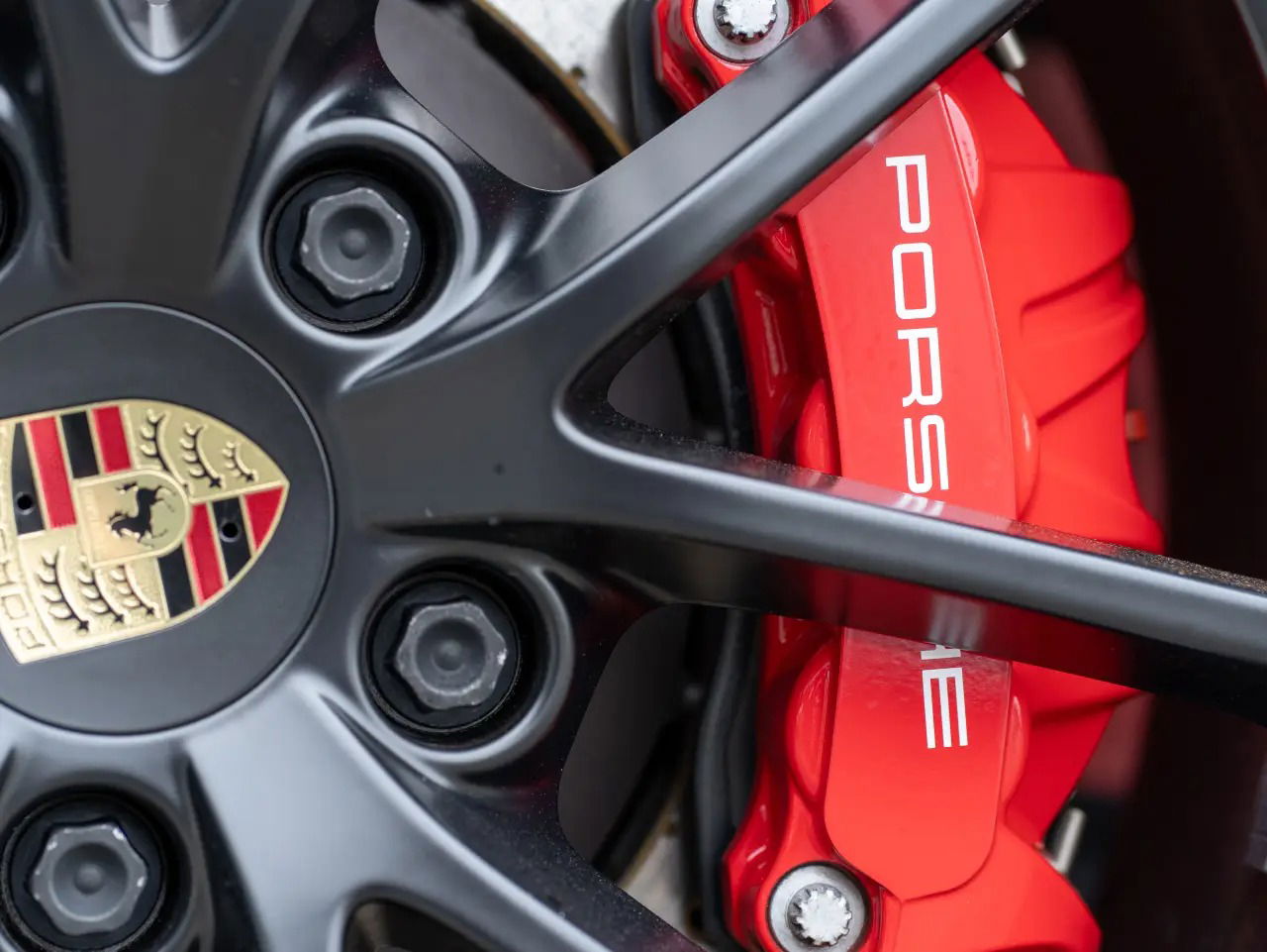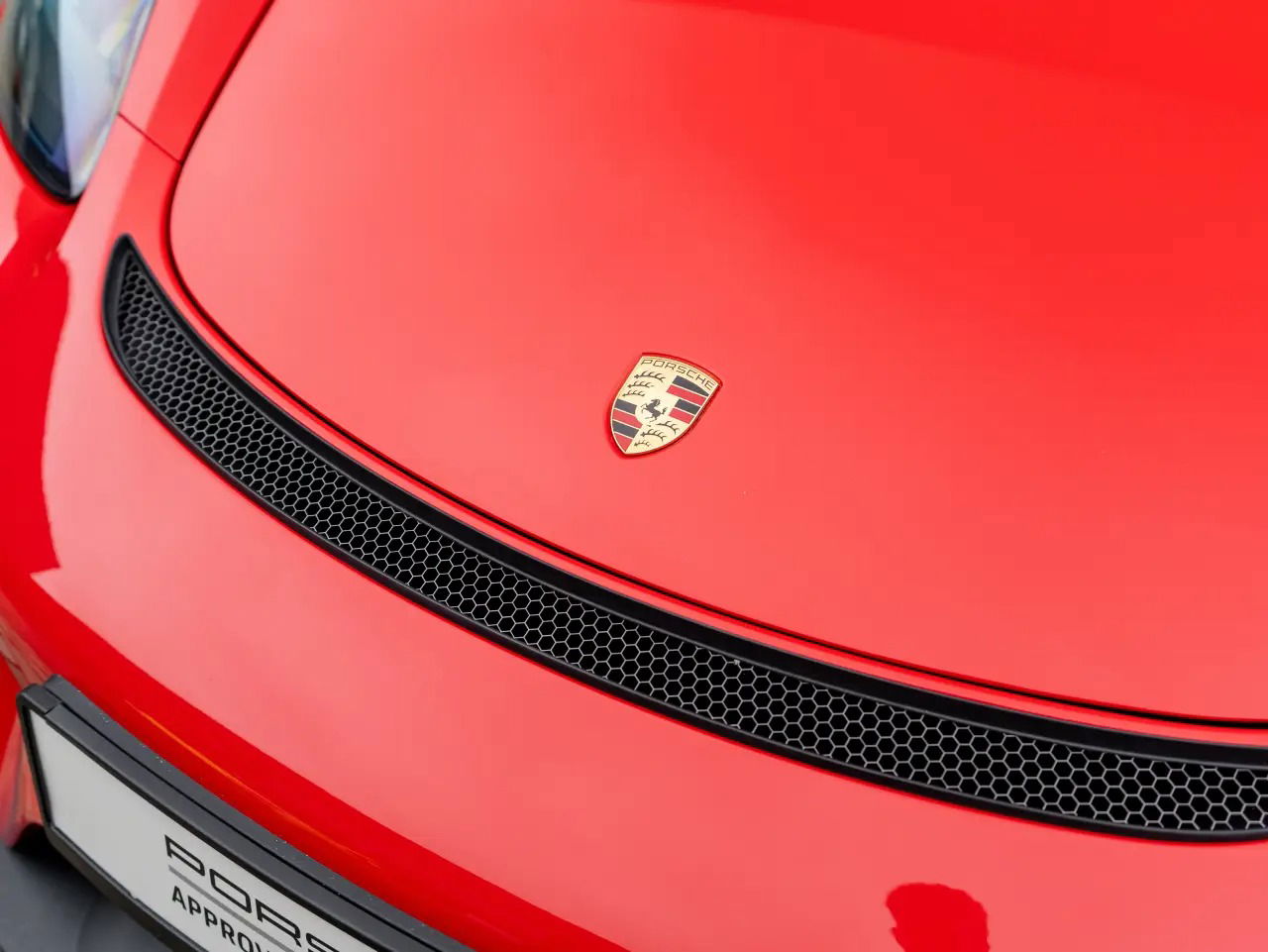 Interior: Multifunction and steering wheel heating, adaptive sports seats Plus (18-way, electric) with memory package, 2-zone automatic climate control, seat heating, floor mats, storage net in passenger footwell, seat belts in Guards Red, instrument cluster dials in Guards Red Guards Red chronograph stopwatch dial, contrasting color stitching