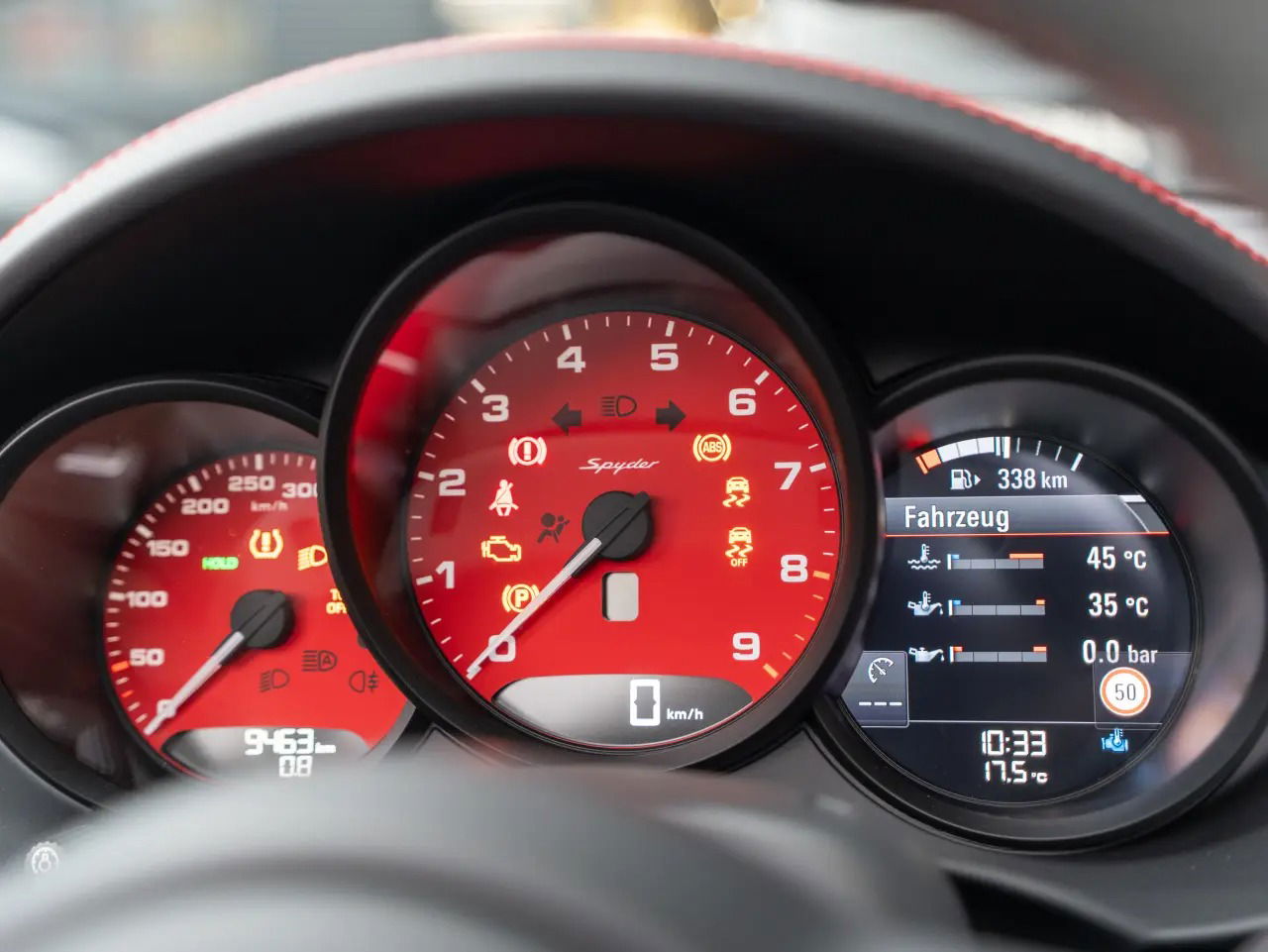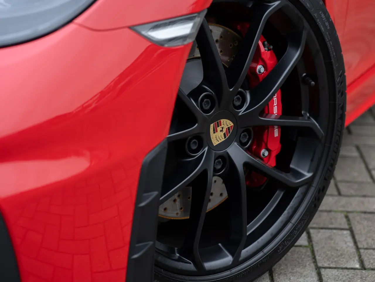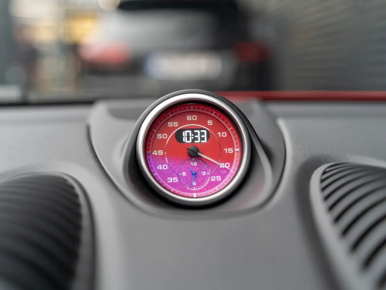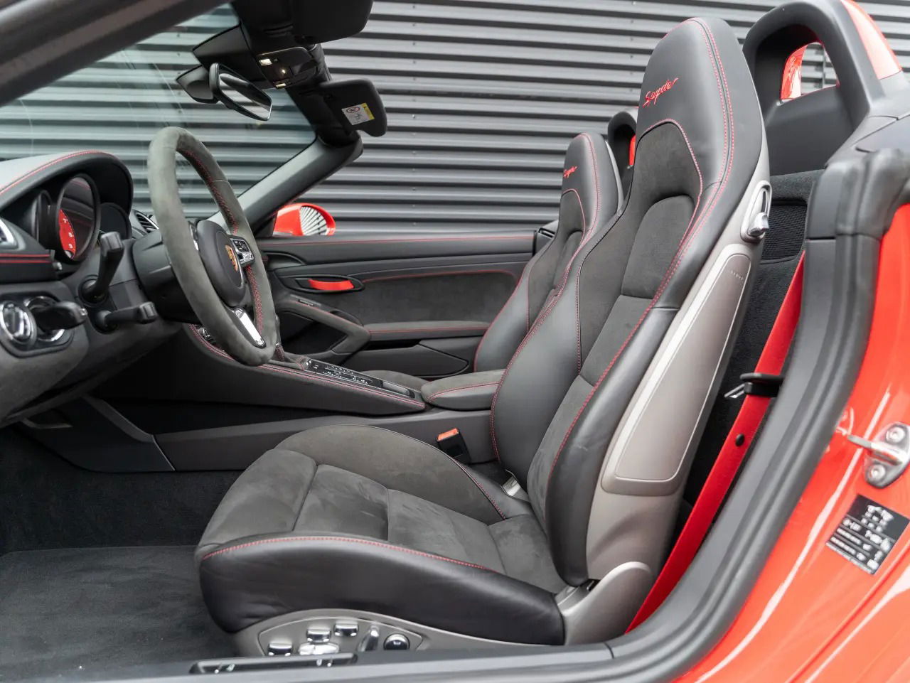 Interior: Multifunction and steering wheel heating, adaptive sports seats Plus (18-way, electric) with memory package, 2-zone automatic climate control, seat heating, floor mats, storage net in passenger footwell, seat belts in Guards Red, instrument cluster dials in Guards Red Guards Red chronograph stopwatch dial, contrasting color stitching