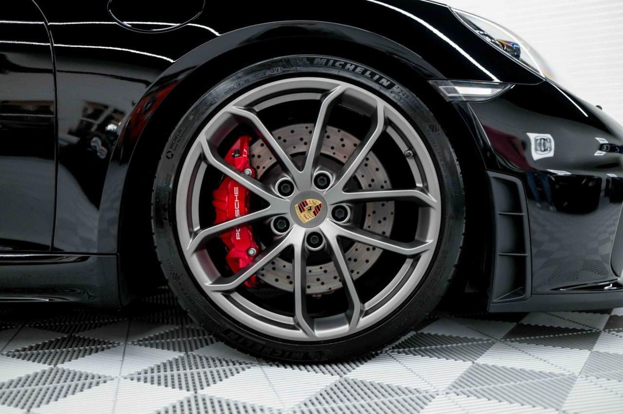 new arrival!! over $50k in upgrades!! new tires and front ppf/ceramic coating!! rare porsche 718 spyder with deman motorsport prototype 4.7l engine upgrade!! 8 month wait list!! stunning car inside and out! one of the best modern driving cars in existence!! exterior is finished in black with black and bordeaux leather interior and silver trim.