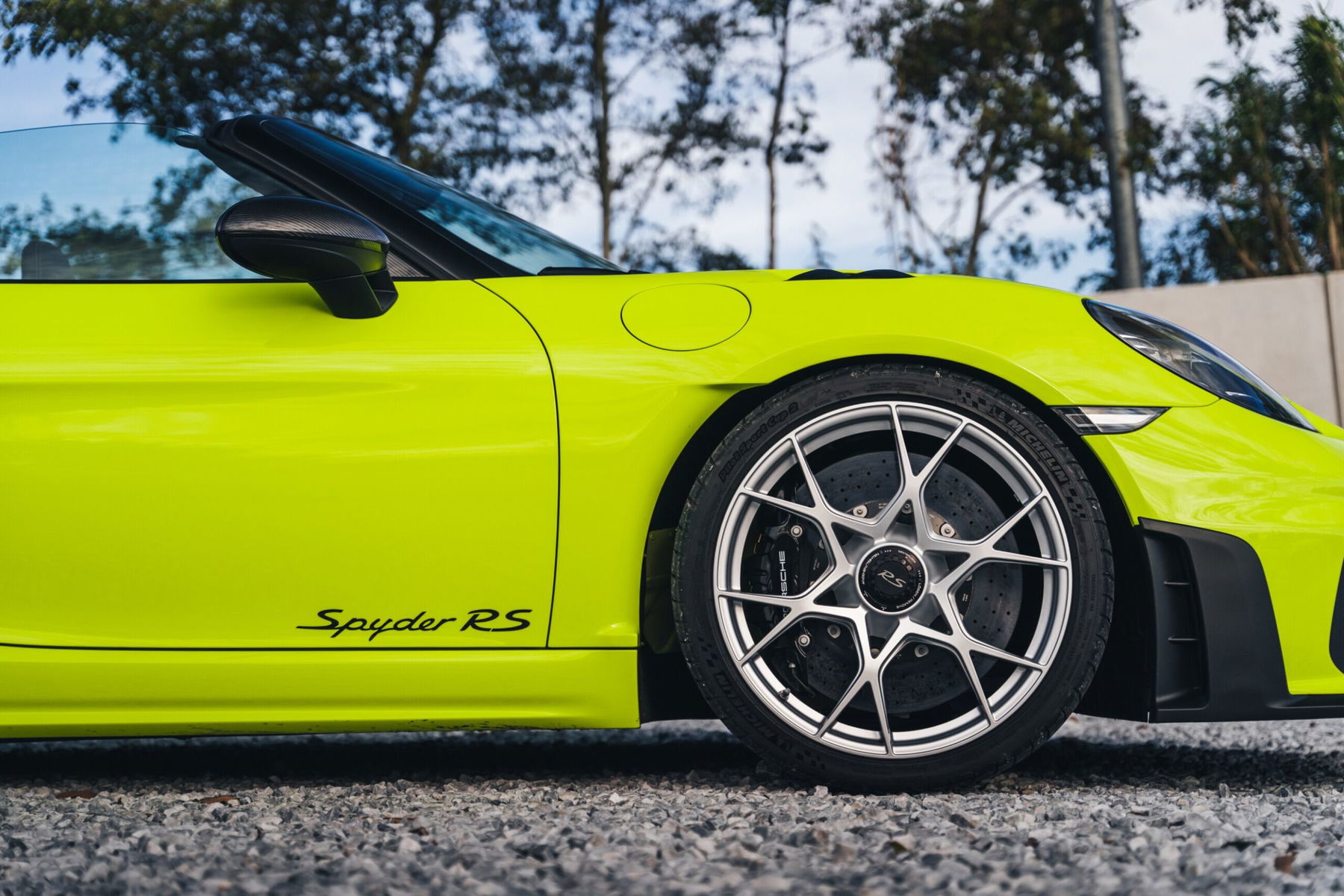 This Spyder RS stands out with its PTS Acidgreen color, Black Ceramic Brakes (PCCB), lots of carbon fibre and even a Porsche Design Chronograph to complete the package.