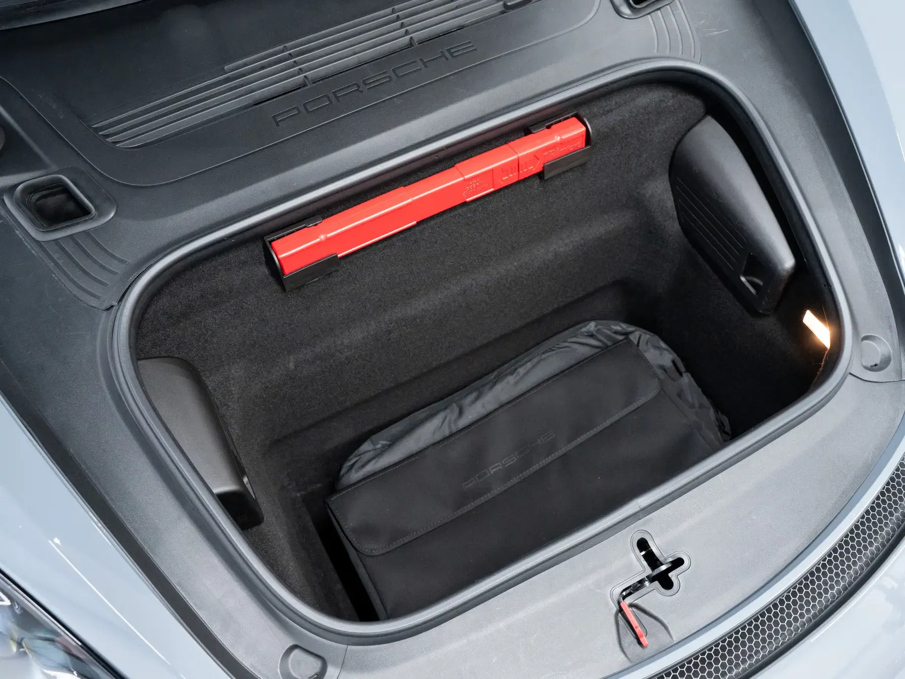 Center console lid in Race-tex with Porsche crest