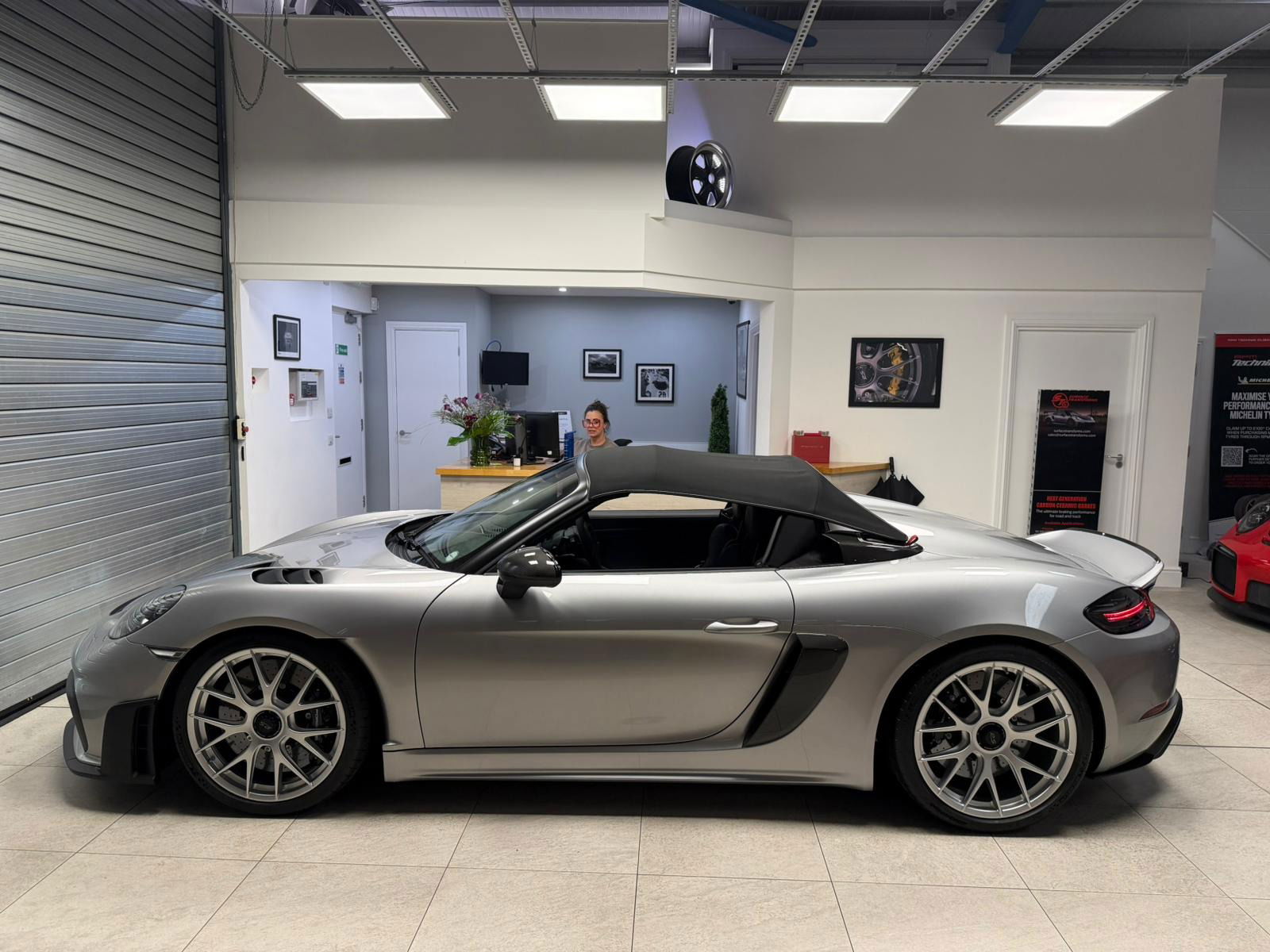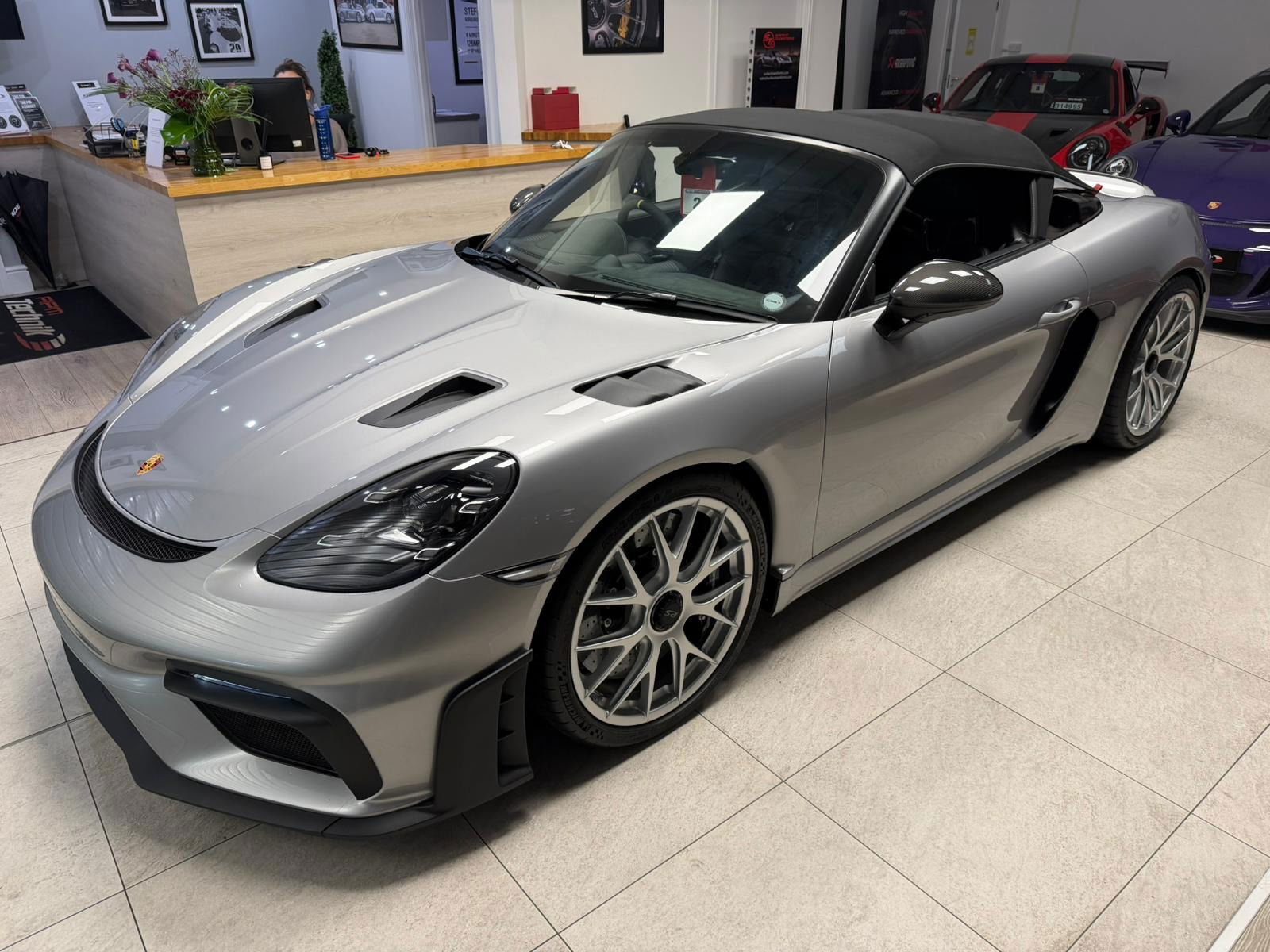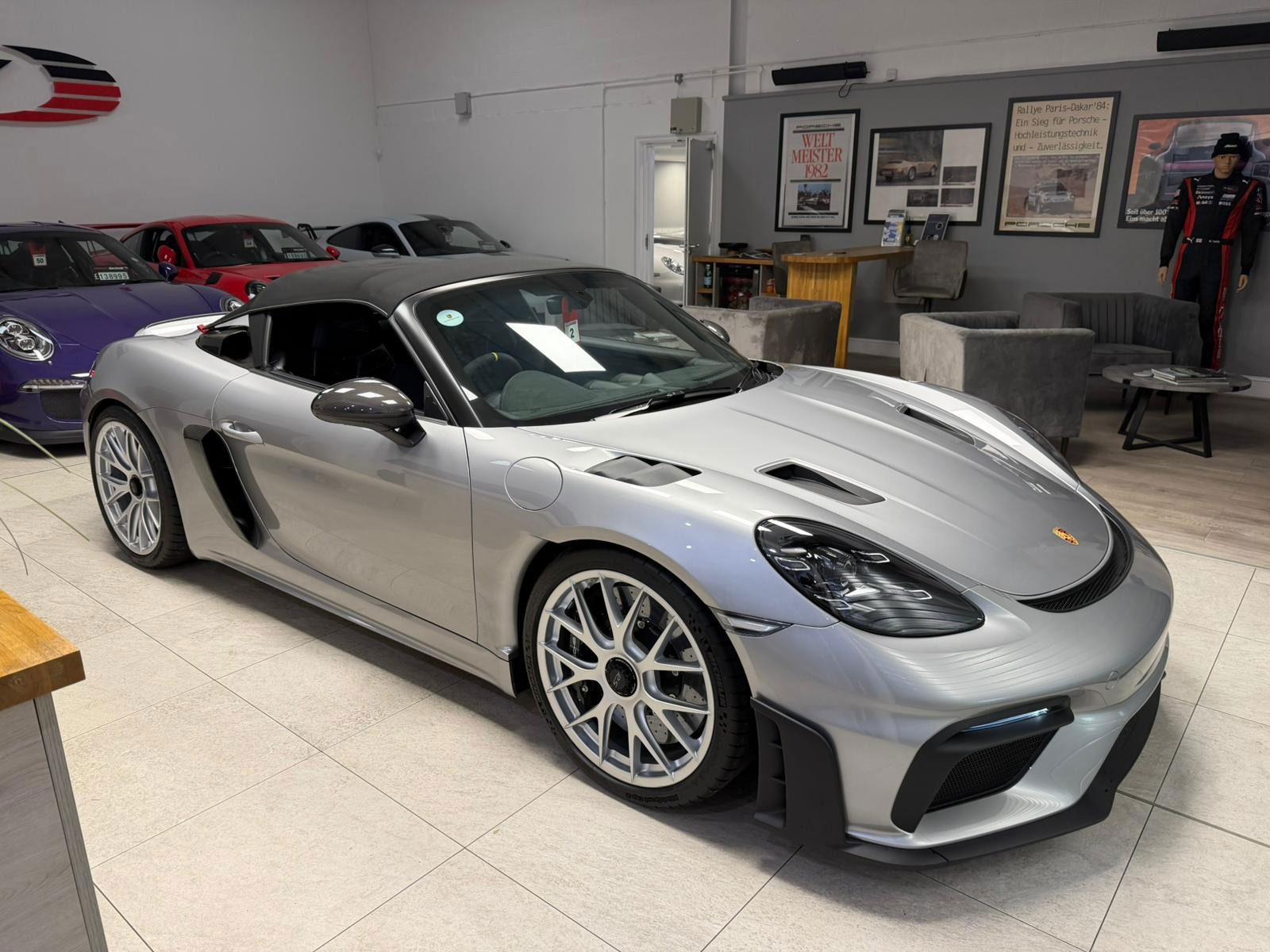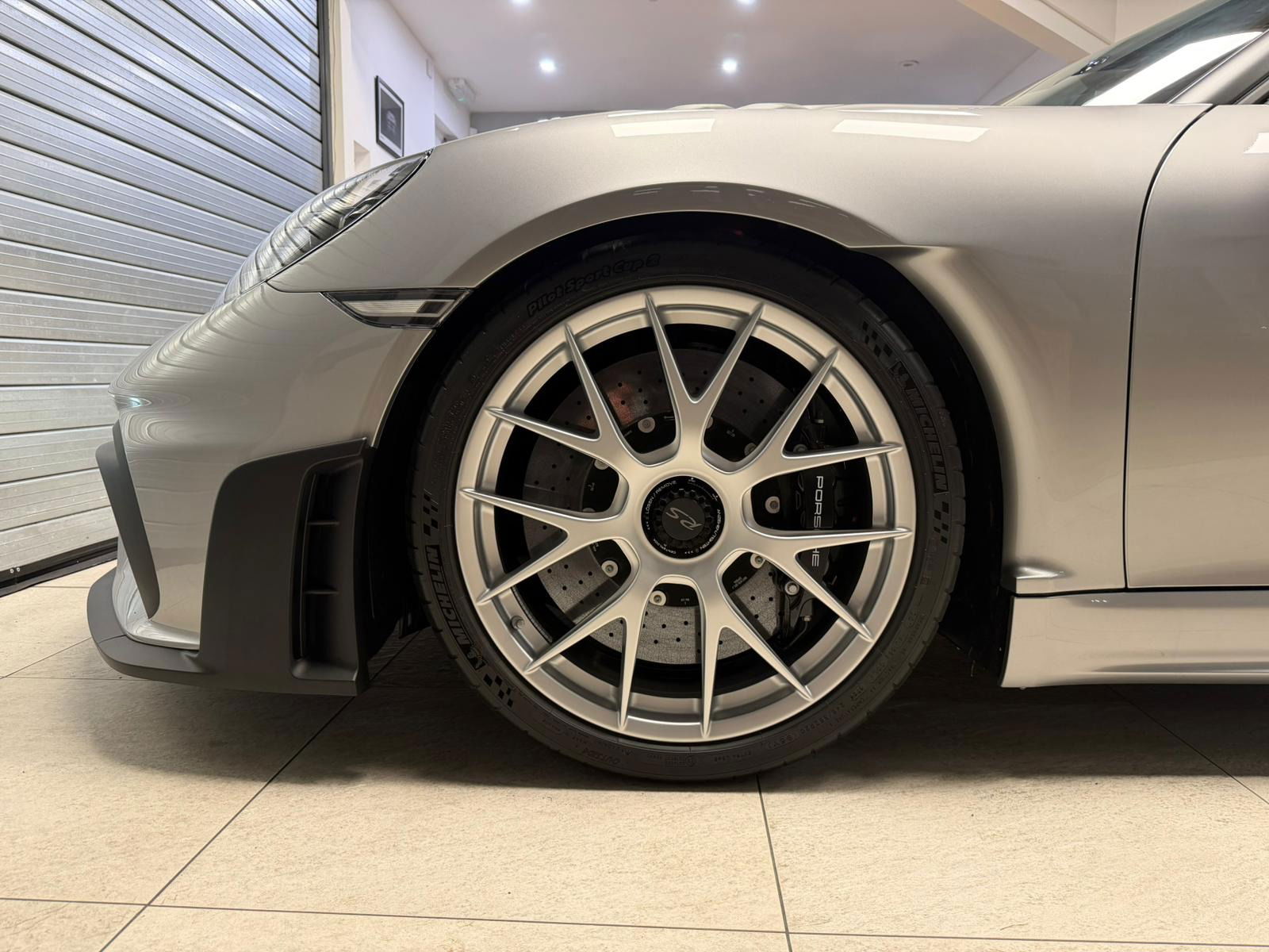 GT Silver metallic, Weissach package with painted bonnet, 918 bucket seats, Front axle lift, PCCB’s with Highly Polished Black calipers, LED lights with PDLS+, BOSE stereo, Reversing camera, Sport Chrono Plus package, Dual zone climate control, Cruise control, Interior light package, Auto dimming mirrors with rain sensors, Carbon interior trims, Sport look pedals, 12 o’clock marker in Yellow, PCM4 with Apple CarPlay, Deletion of model designation on rear, Porsche logo in Black, Instrument dials in Carrera White, Exterior mirror tops in Carbon, Centre console lid in Alcantara with Porsche Crest, Leather steering column, Fuel cap in Aluminium look, Alcantara sun visors, Carbon illumianted door sills, 20″ Magnesium RS Spyder wheels.