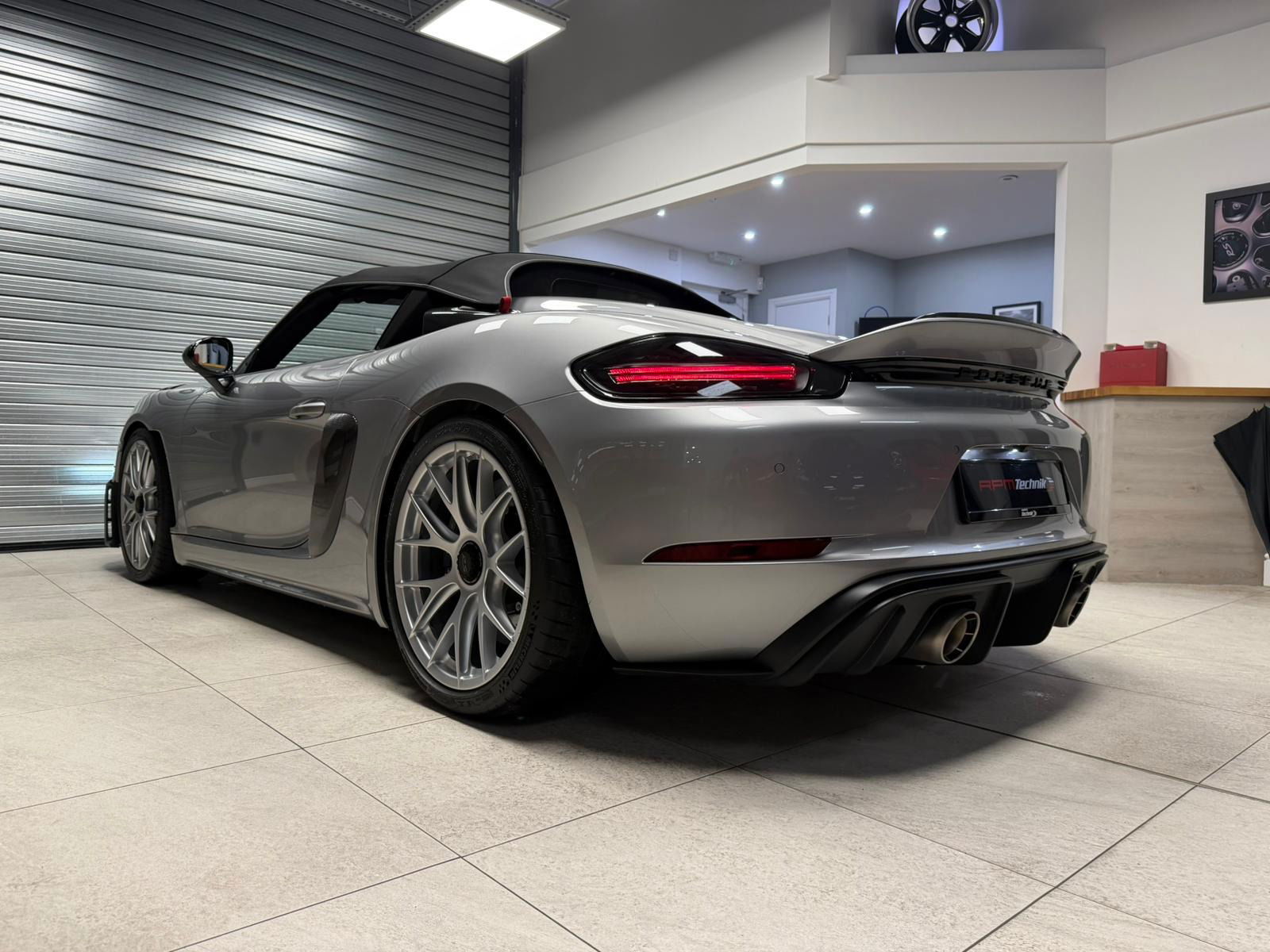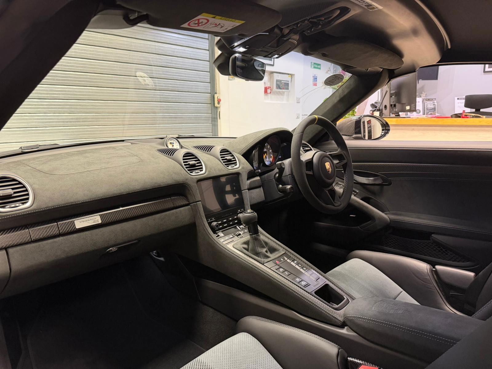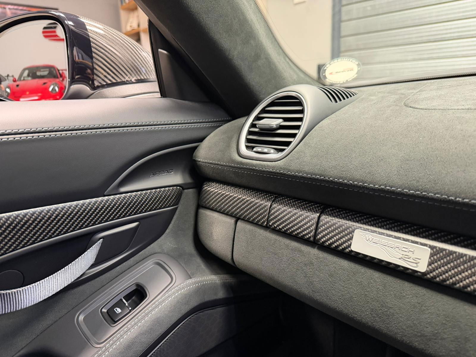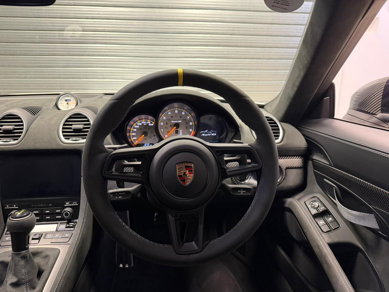 GT Silver metallic, Weissach package with painted bonnet, 918 bucket seats, Front axle lift, PCCB’s with Highly Polished Black calipers, LED lights with PDLS+, BOSE stereo, Reversing camera, Sport Chrono Plus package, Dual zone climate control, Cruise control, Interior light package, Auto dimming mirrors with rain sensors, Carbon interior trims, Sport look pedals, 12 o’clock marker in Yellow, PCM4 with Apple CarPlay, Deletion of model designation on rear, Porsche logo in Black, Instrument dials in Carrera White, Exterior mirror tops in Carbon, Centre console lid in Alcantara with Porsche Crest, Leather steering column, Fuel cap in Aluminium look, Alcantara sun visors, Carbon illumianted door sills, 20″ Magnesium RS Spyder wheels.