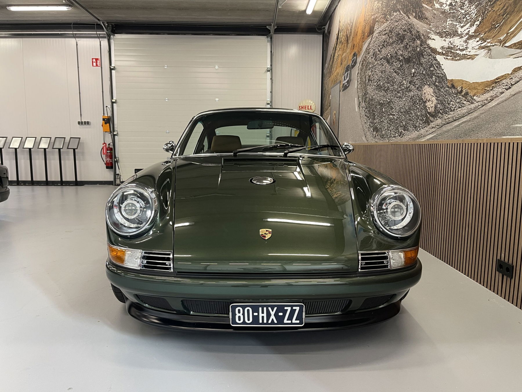De eerste is deze Von Schmidt. Dat klinkt Duits, maar elke Von Schmidt wordt gebouwd in ons eigen Oss. De basis is een Porsche 964, deze wordt vervolgens zo omgebouwd dat hij lijkt op een Porsche 911 ‘F-body’. Lijken op de originele 911 terwijl de techniek veel moderner is: kicken. Personalisatie is heilig bij dit soort projecten en bij Von Schmidt is dat niet anders. Voor dit exemplaar is een donkergroene kleur gekozen, waarschijnlijk Porsches eigen Oak Green Metallic. Deze wordt bijgestaan door gouden details zoals de velgen, een gouden streep en beige stoelen. Erg geslaagd!