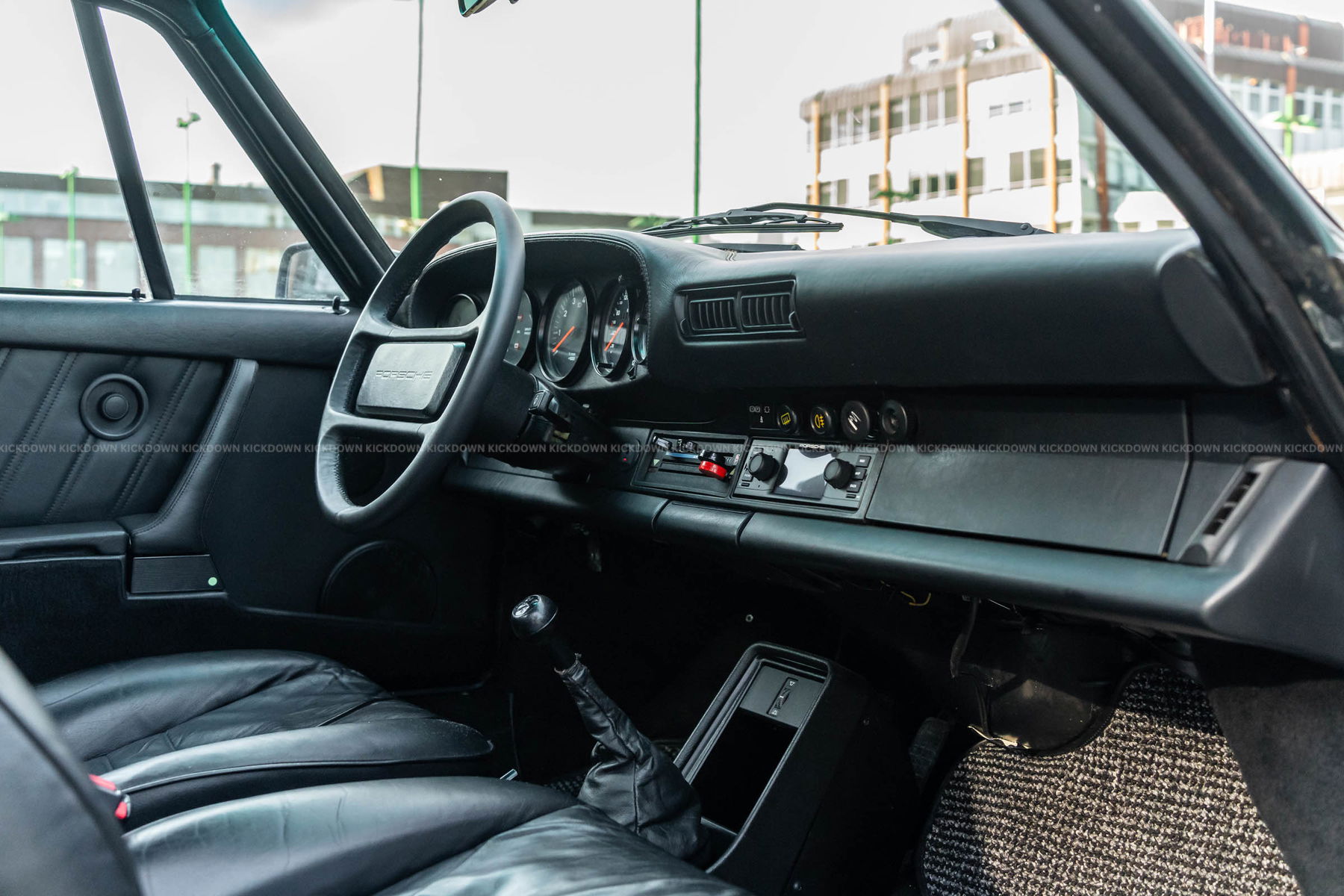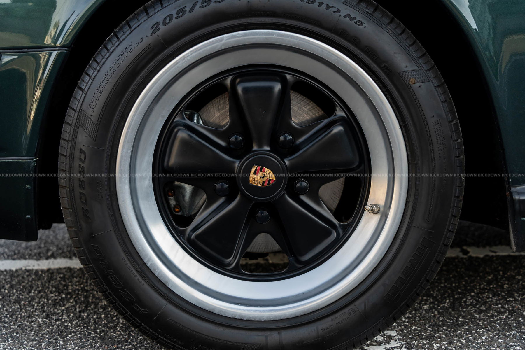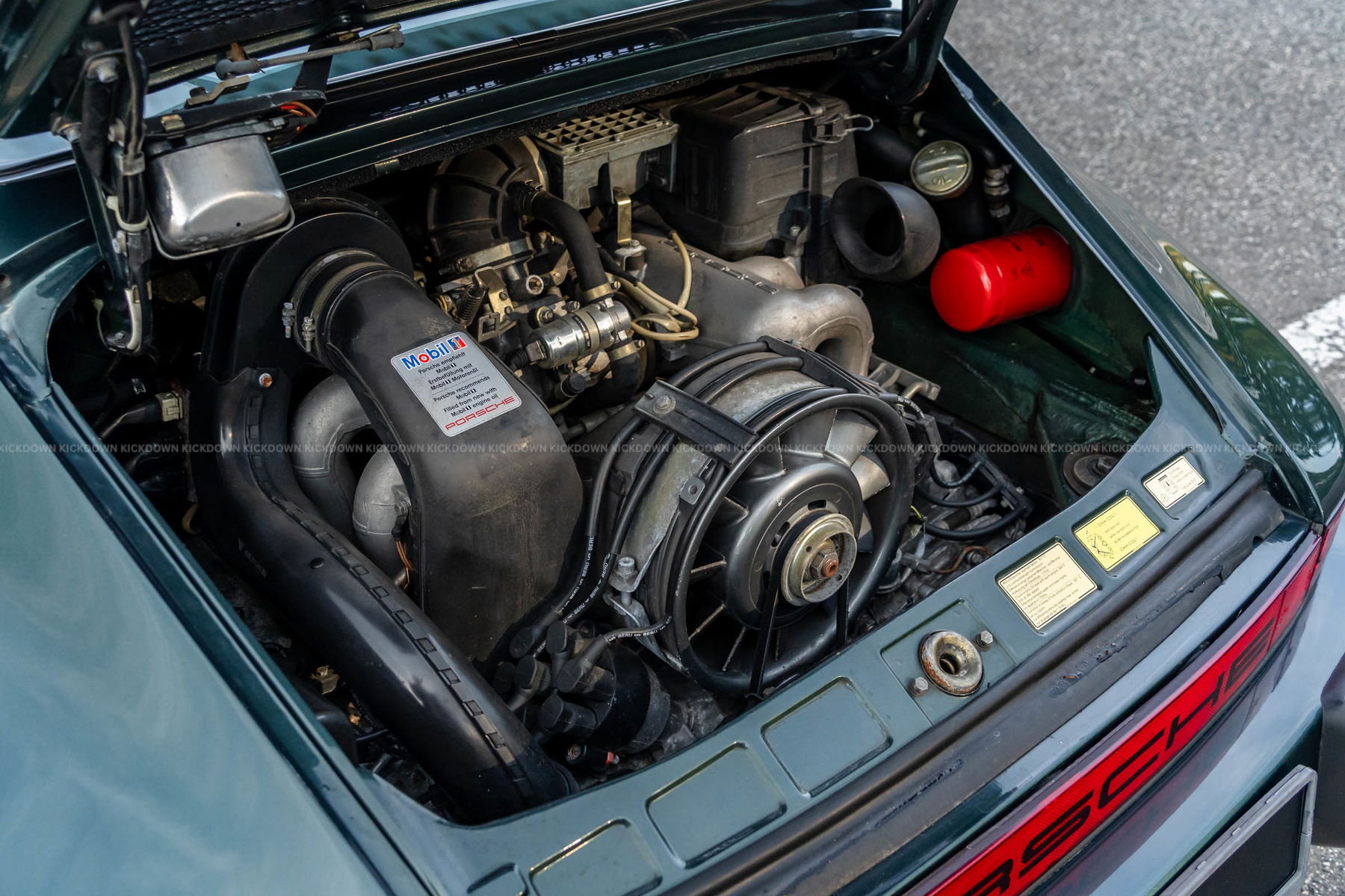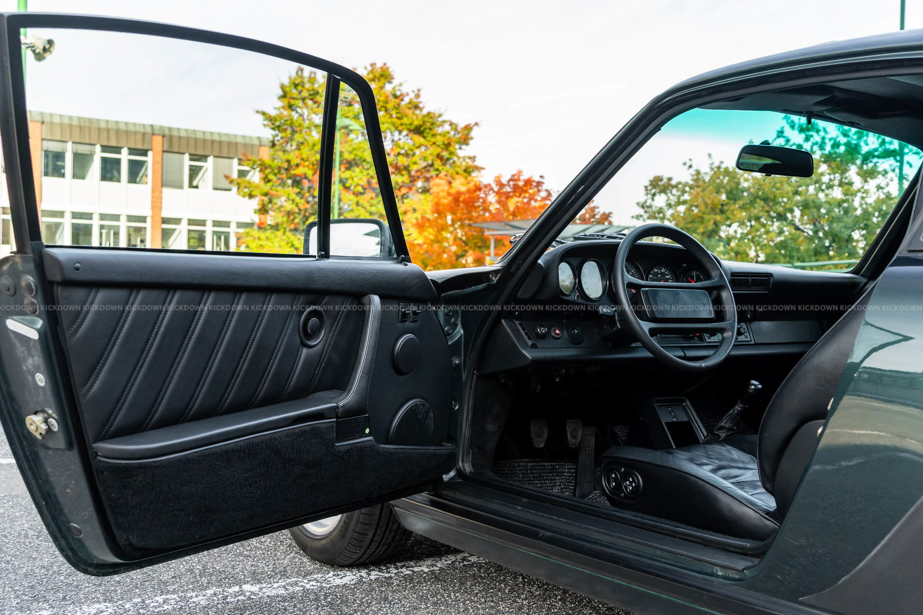 A 1985 Porsche 911 Carrera 3.2 is for sale in moss green metallic with black leather interior.