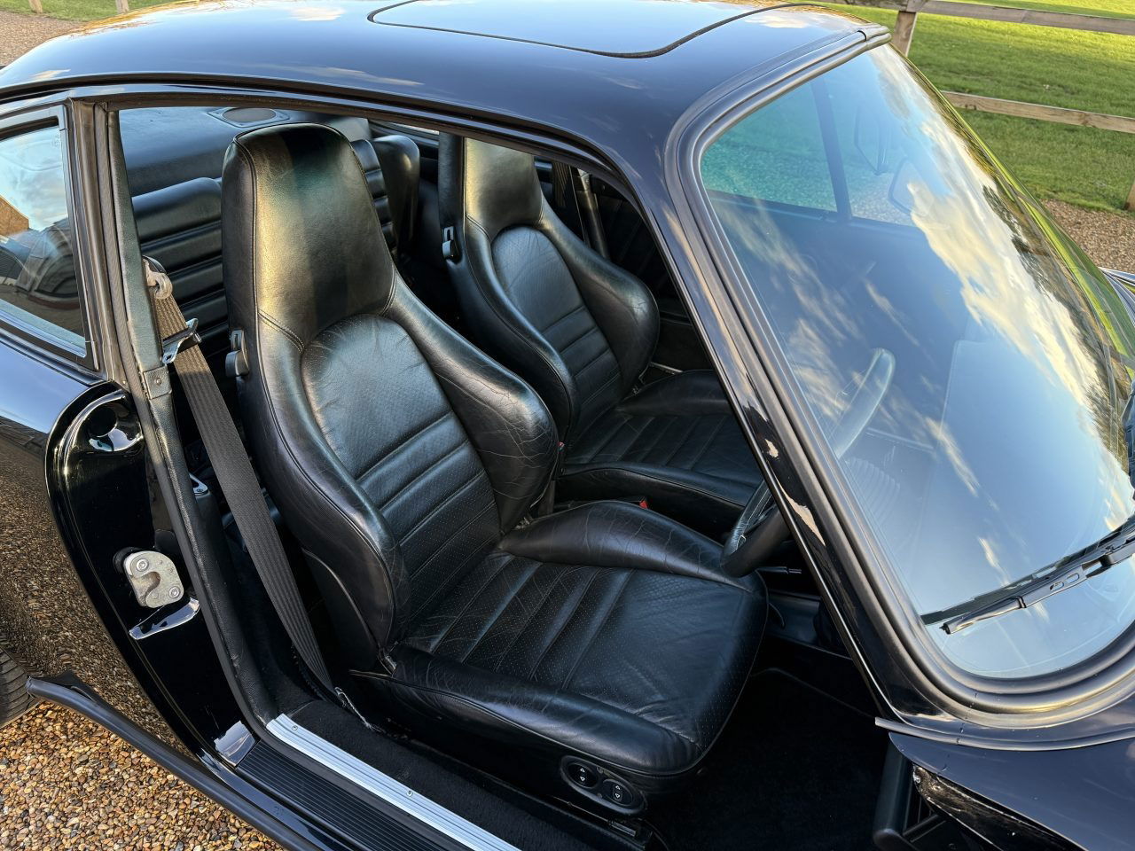 A very well presented example of the classic 3.2 Carrera Sport, finished in factory gloss black with black leather interior. This C16 UK supplied car was first registered on 1st January 1986 by Monarch Porsche in Warwickshire and has now covered 127,905 miles, supported by a full service history and documentation. It has had eight former keepers. Between 2004 and 2016 the car saw limited use, after which it underwent a major mechanical and cosmetic restoration by Porsche specialists HP Motorsport. This included a top end engine rebuild with new cylinder head studs, piston rings, timing chains, all new gaskets, oil return tubes, starter motor, full clutch kit, fuel pump, refurbished brake calipers and new oil lines. At the same time the body received structural repairs including new kidney bowls and new door shut panels, followed by a complete repaint in its original gloss black. The work was carried out to a high standard and the car remains solid and well presented throughout.