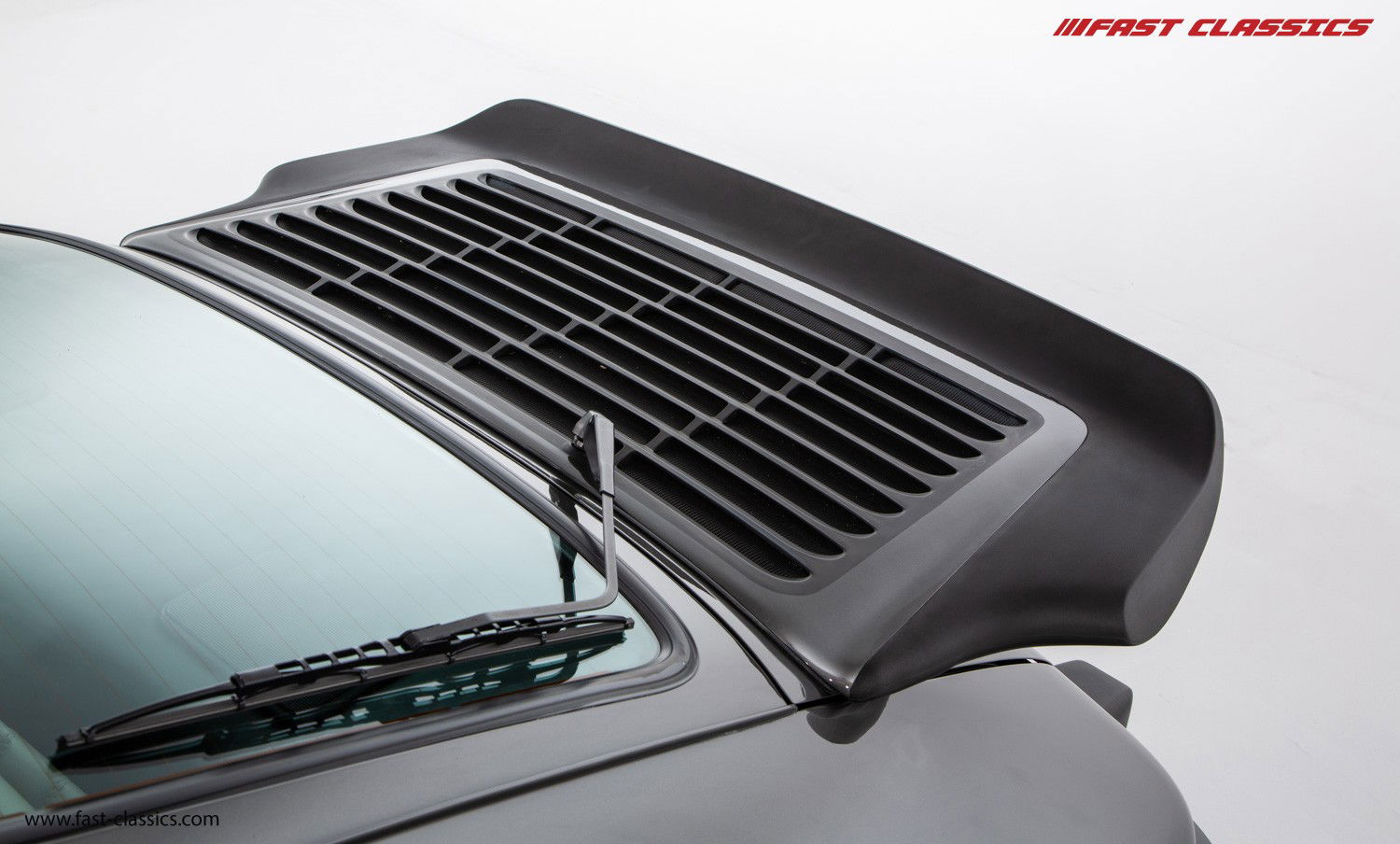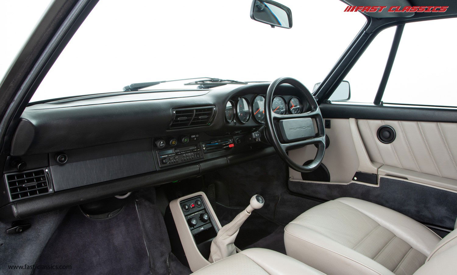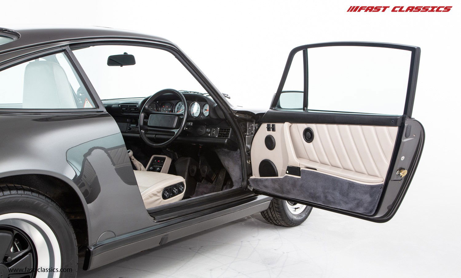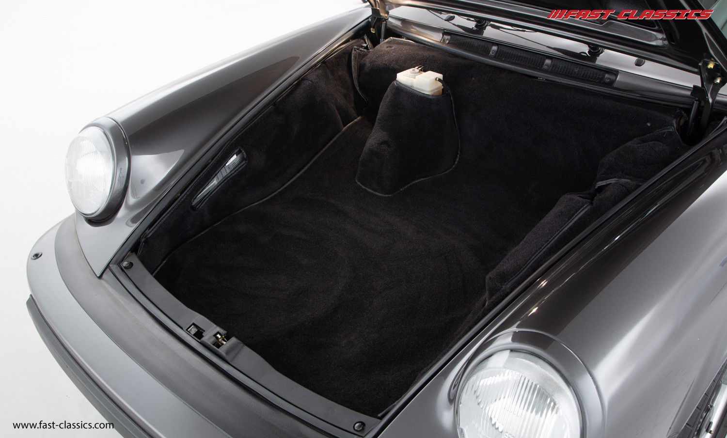 Porsche have always provided a wonderful colour palette and this example sits draped in the exquisite Slate Grey metallic – in quite fantastic all round condition with pin straight panels and uniform paint throughout. Both sills, wings and kidney panels have also been inspected and proved to be in excellent condition. The front splitter retains good shape and structure whilst the factory optioned whale tail spoiler sits proudly on the rear deck.