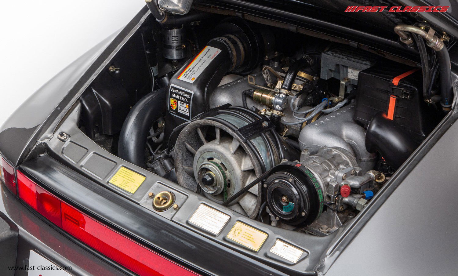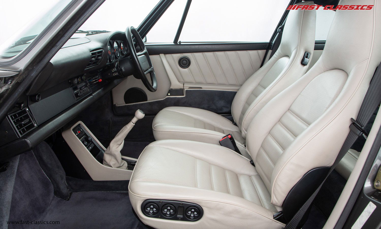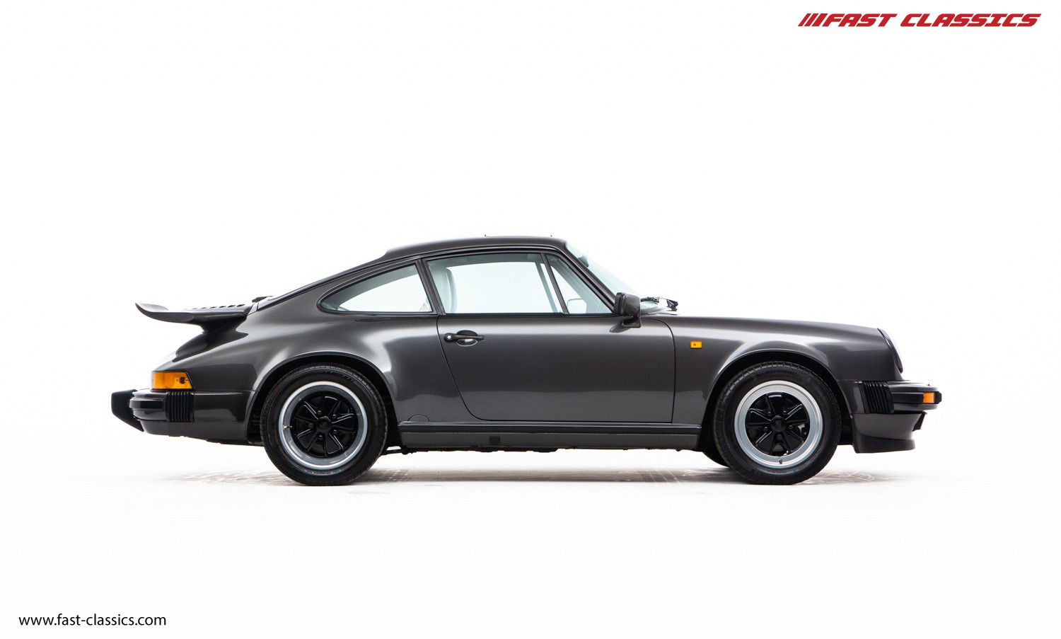 Porsche have always provided a wonderful colour palette and this example sits draped in the exquisite Slate Grey metallic – in quite fantastic all round condition with pin straight panels and uniform paint throughout. Both sills, wings and kidney panels have also been inspected and proved to be in excellent condition. The front splitter retains good shape and structure whilst the factory optioned whale tail spoiler sits proudly on the rear deck.