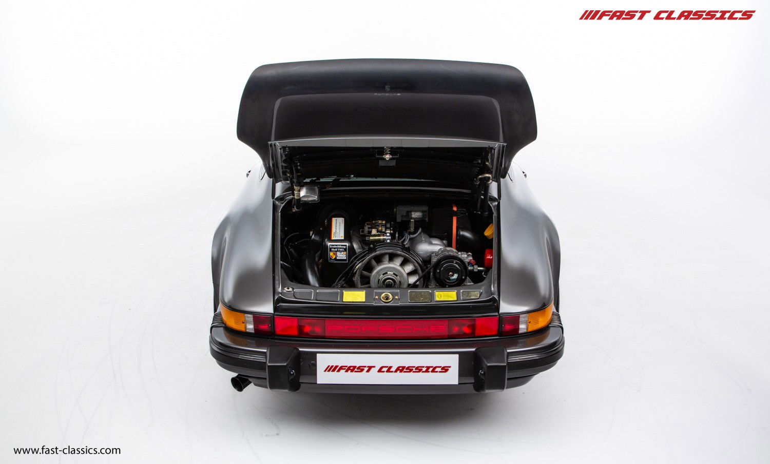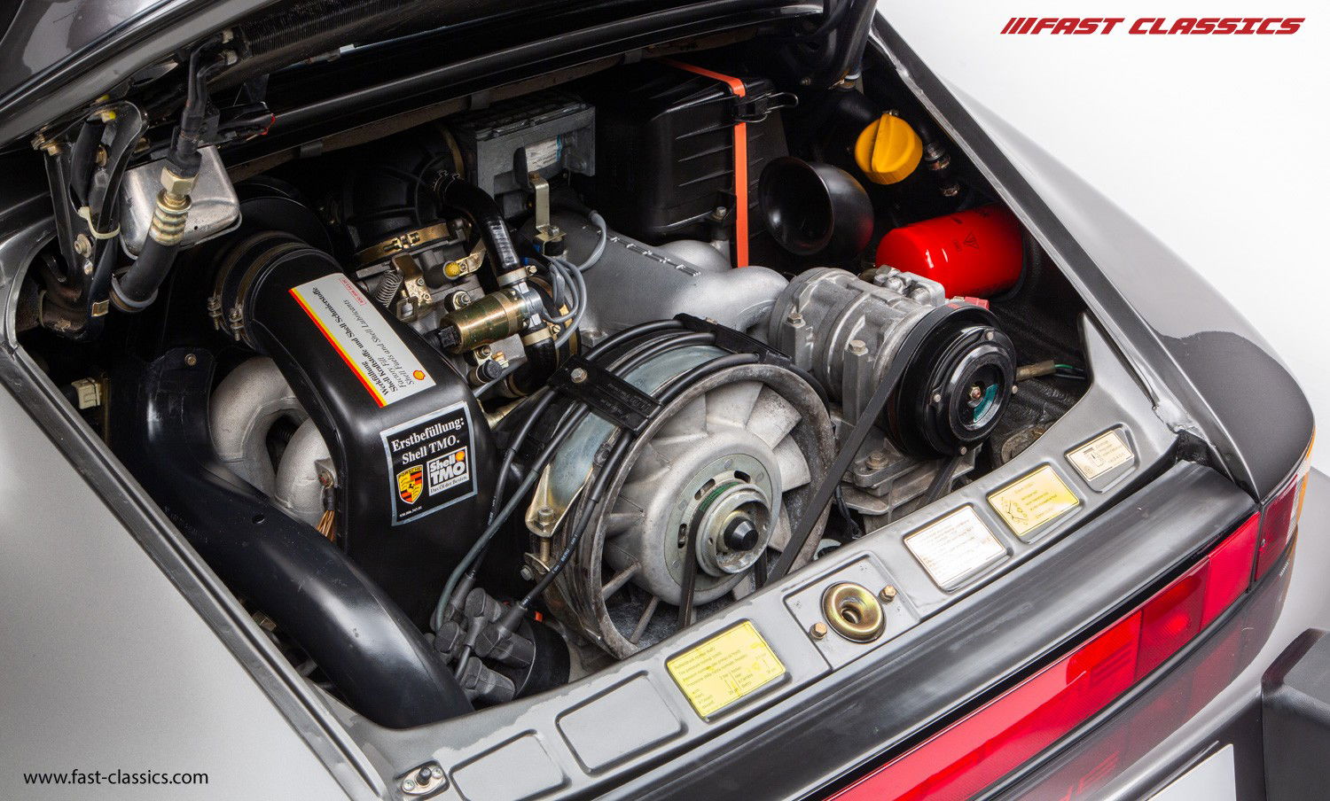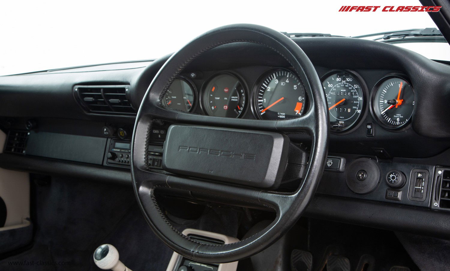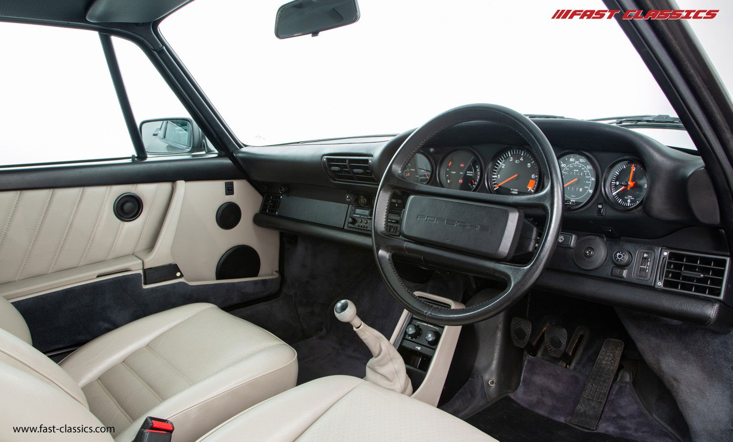 Porsche have always provided a wonderful colour palette and this example sits draped in the exquisite Slate Grey metallic – in quite fantastic all round condition with pin straight panels and uniform paint throughout. Both sills, wings and kidney panels have also been inspected and proved to be in excellent condition. The front splitter retains good shape and structure whilst the factory optioned whale tail spoiler sits proudly on the rear deck.