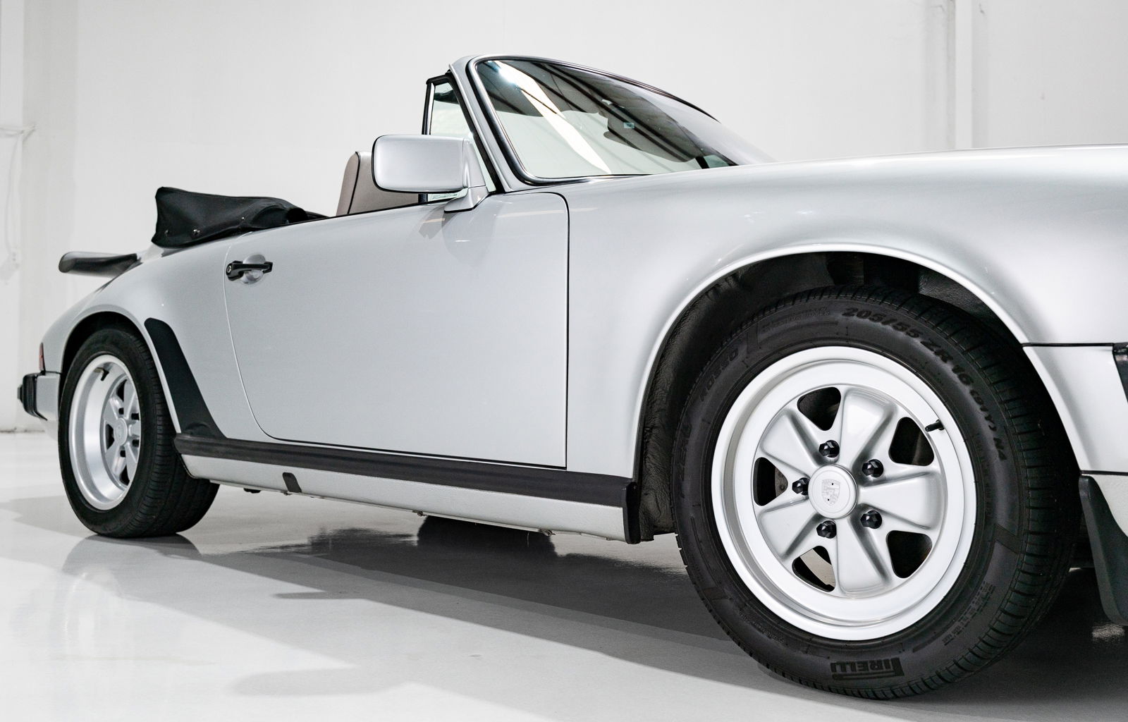 The spectacular 1989 Porsche 911 Carrera 3.2 25th Anniversary Edition Cabriolet is finished in classic and highly desirable Silver Metallic over impeccably kept special-edition Silk Grey supple leather interior with a Black power-folding convertible top. This original California car has been meticulously maintained and driven a mere 34,259 miles from new and is among one of the finest examples to come to market in years! I personally have a lot of enthusiasm for this special edition model, as I owned one from new in 1989 and put over 60,000 miles on it before selling it to a client in Germany with many regrets! Because of the rarity, low miles, California ownership, and impeccable condition, I believe the investment potential of this rare and highly desirable special edition 911 Carrera Cabriolet will grow beyond your imagination! Offered to the most sophisticated collector, investor, or enthusiast who desires to own one of the very best at an investment price!