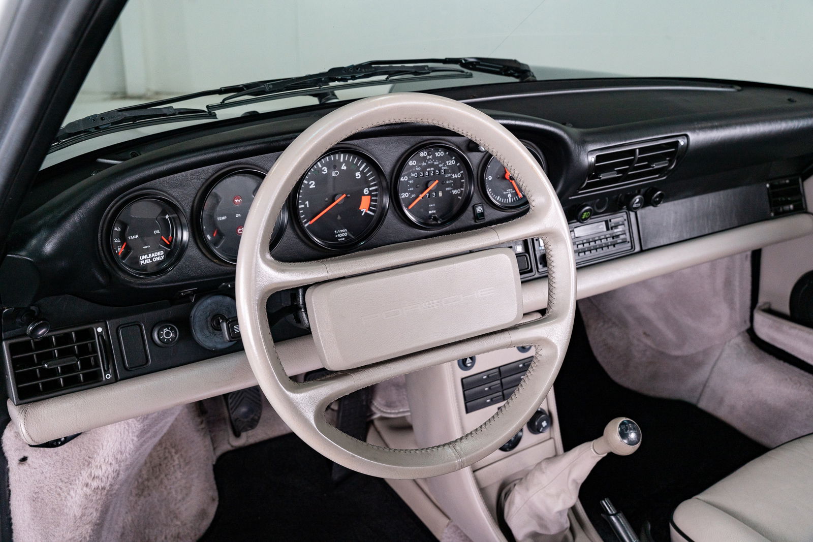 Following the tremendous success of the 911 SC and Carrera 3.2 models through the 1980s, Porsche prepared for the most major update to the 911 yet with the release of the 964. However, just as production of the G-Series 911 was winding down, Porsche made sure to commemorate the 911’s 25th anniversary with a special limited-edition model. Based on the Carrera 3.2, the Anniversary editions were produced exclusively in Satin Black Metallic or Silver Metallic with a Silk Grey supple leather interior with special Black accents. Fuchs alloy wheels with body-color centers, a sunroof, and front/rear spoilers made it relatively easy to spot an anniversary model amongst standard cars.