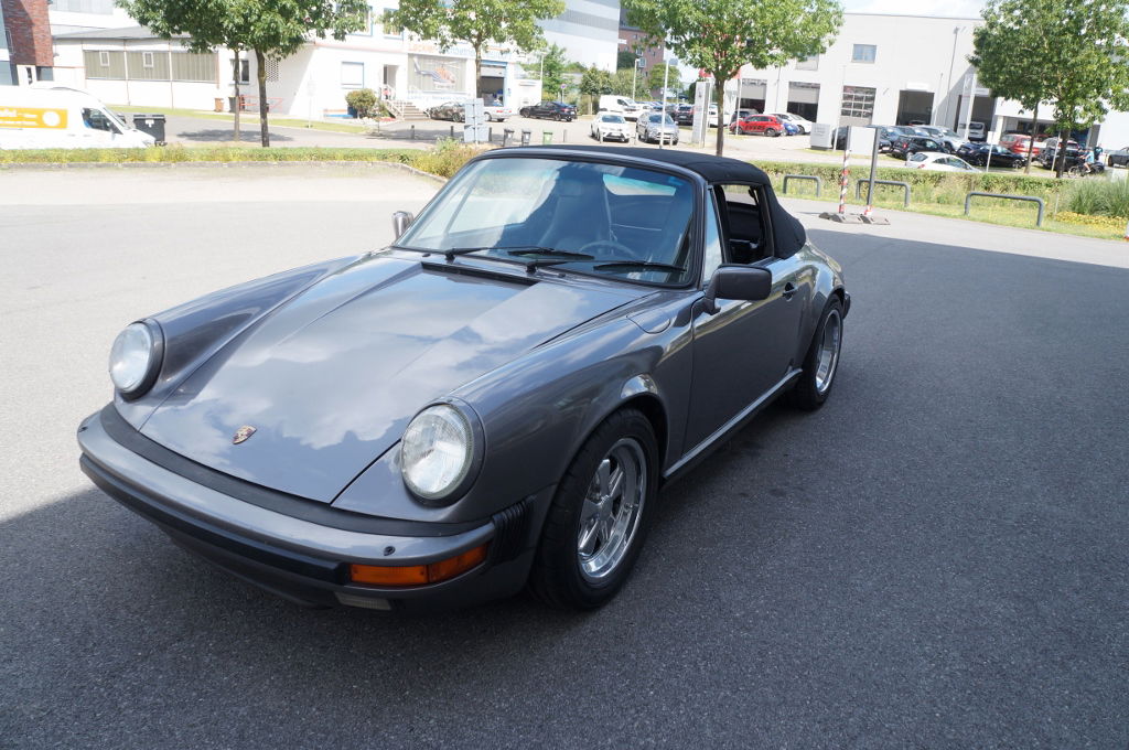 Meteor gray Porsche 911 Carrera Cabrio with original new car invoice, owner's manual with original service history, Carfax report, onboard tools, etc. In its final ownership since 1992. Well maintained. The convertible still has its original roof covering. The interior is high quality. Original 7+8 x 16" Fuchs rims. Mileage: 109,304 miles.
