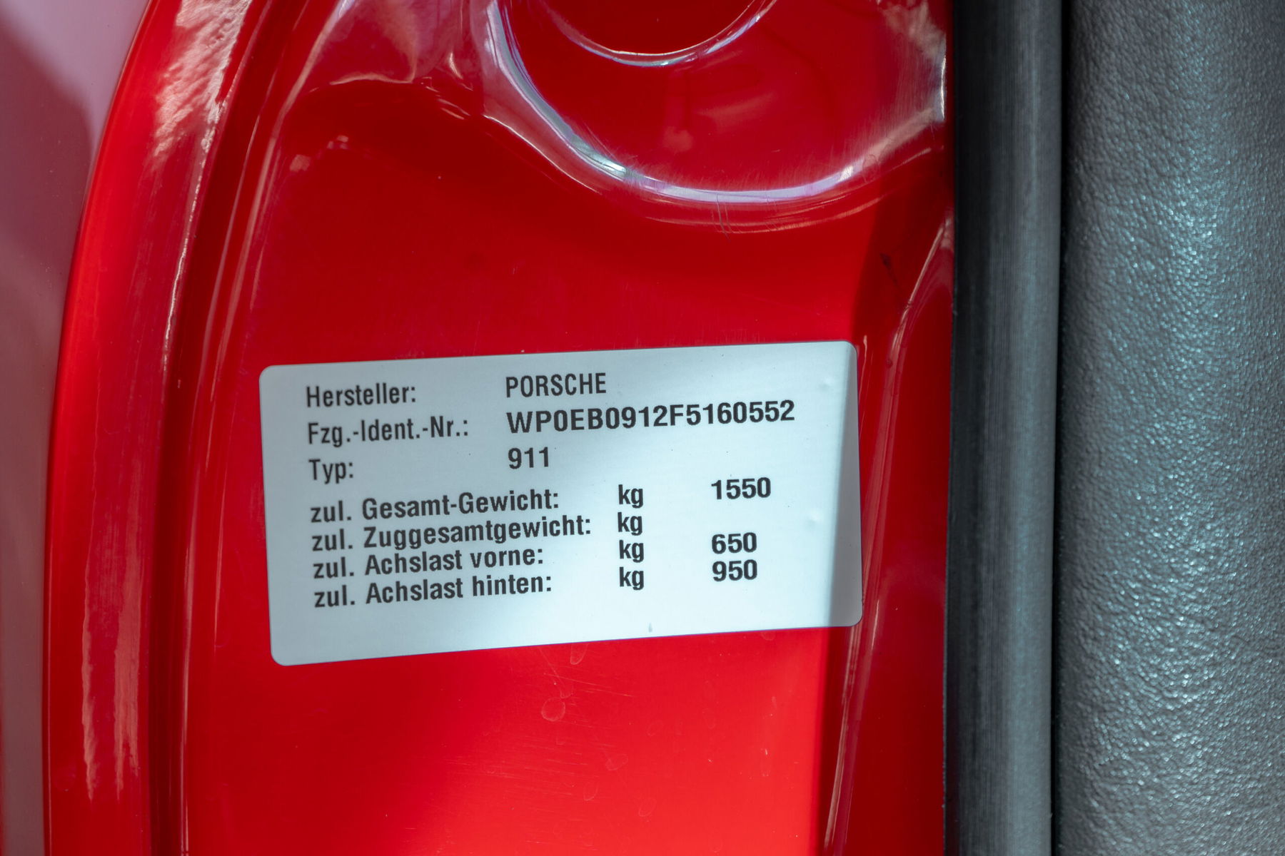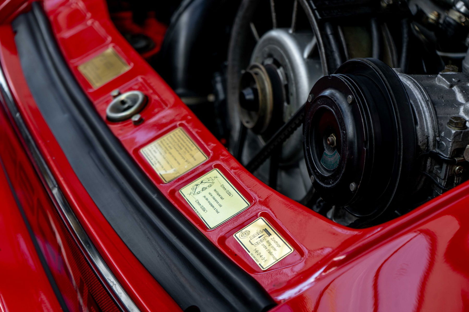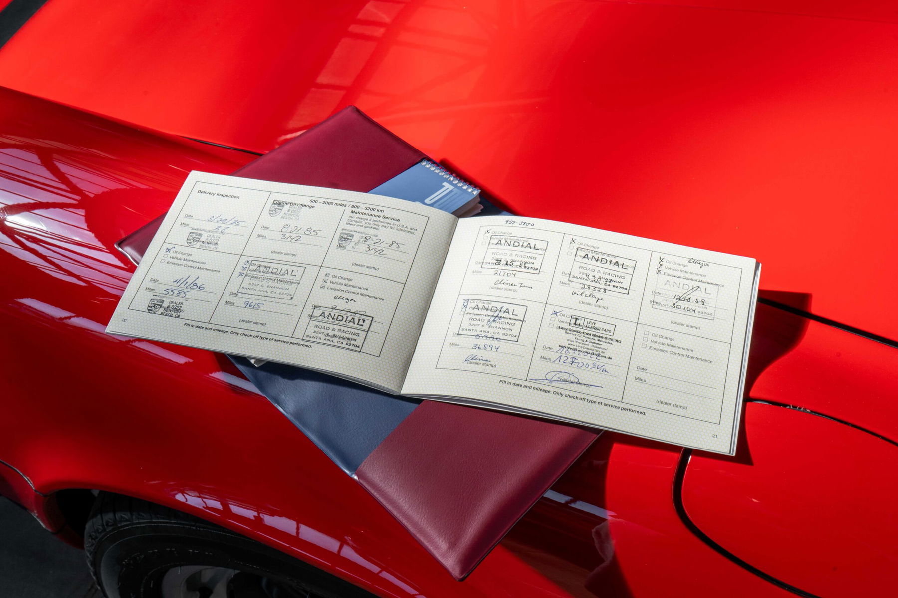 The vehicle is in its original paint, only the engine cover was repainted as the third brake light was removed. The mileage is 132,312 km and is fully traceable. A Carfax certificate is available, which confirms both the mileage and the absence of accidents. The original and well-maintained service booklet is also available and underlines the complete history. In addition, an expert opinion from 2022 with a grade of 2+ is available, in which the replacement value is stated at €85,000 according to Classic Data. The conversion of the speedometer was documented.