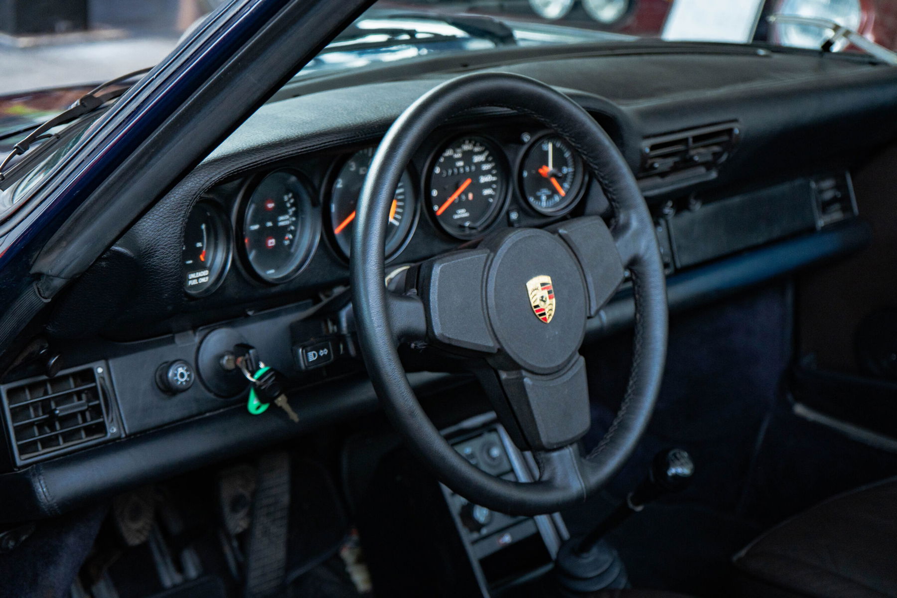 Overall, the 911 is in good condition. The vehicle has been repainted in its original dark blue color and makes a well-maintained impression.