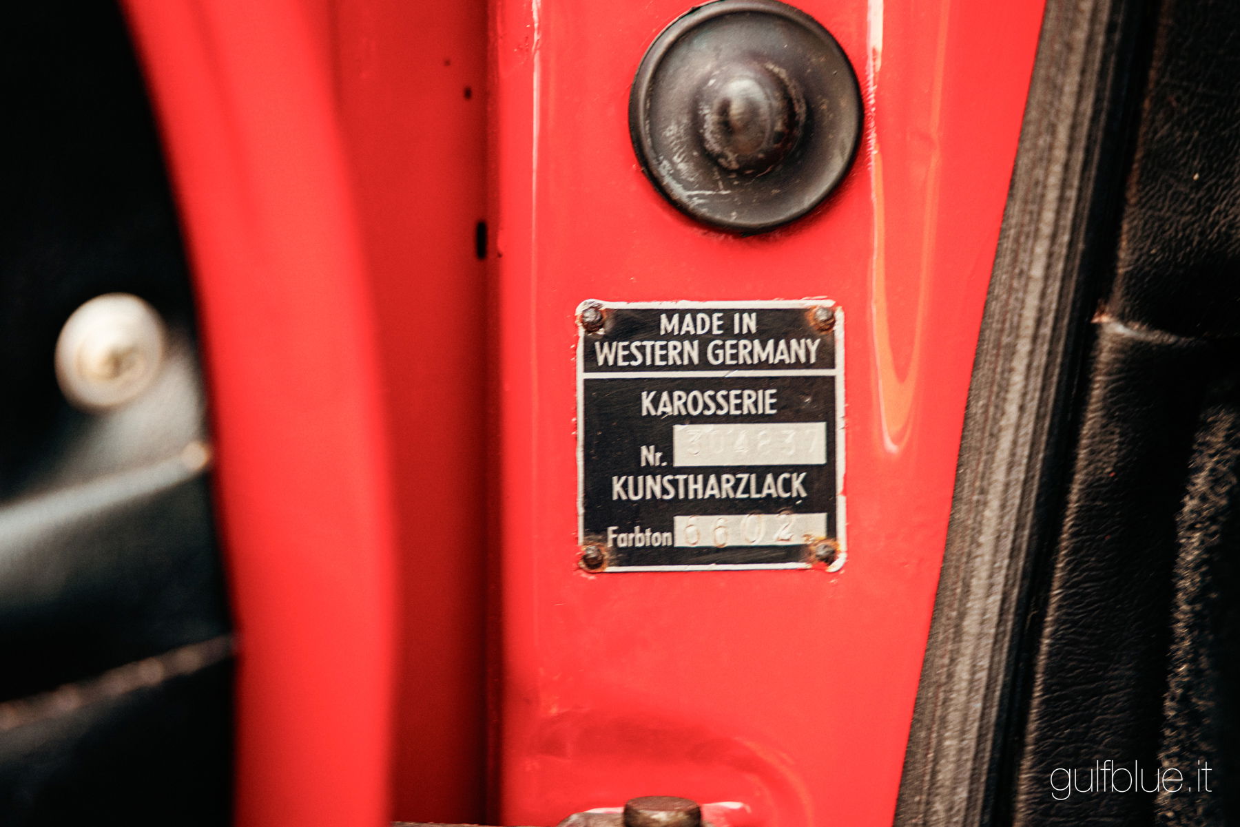 Questo esemplare è uscito dalla catena di montaggio il 5 Agosto 1966, una delle ultimissime, prodotto per il mercato svizzero, e consegnato due settimane dopo al primo proprietario di Zurigo. L’auto rispecchiava la configurazione attuale, rossa con interni neri e pied-de-poule centrale. Unico optional il riscaldamento supplementare Webasto.