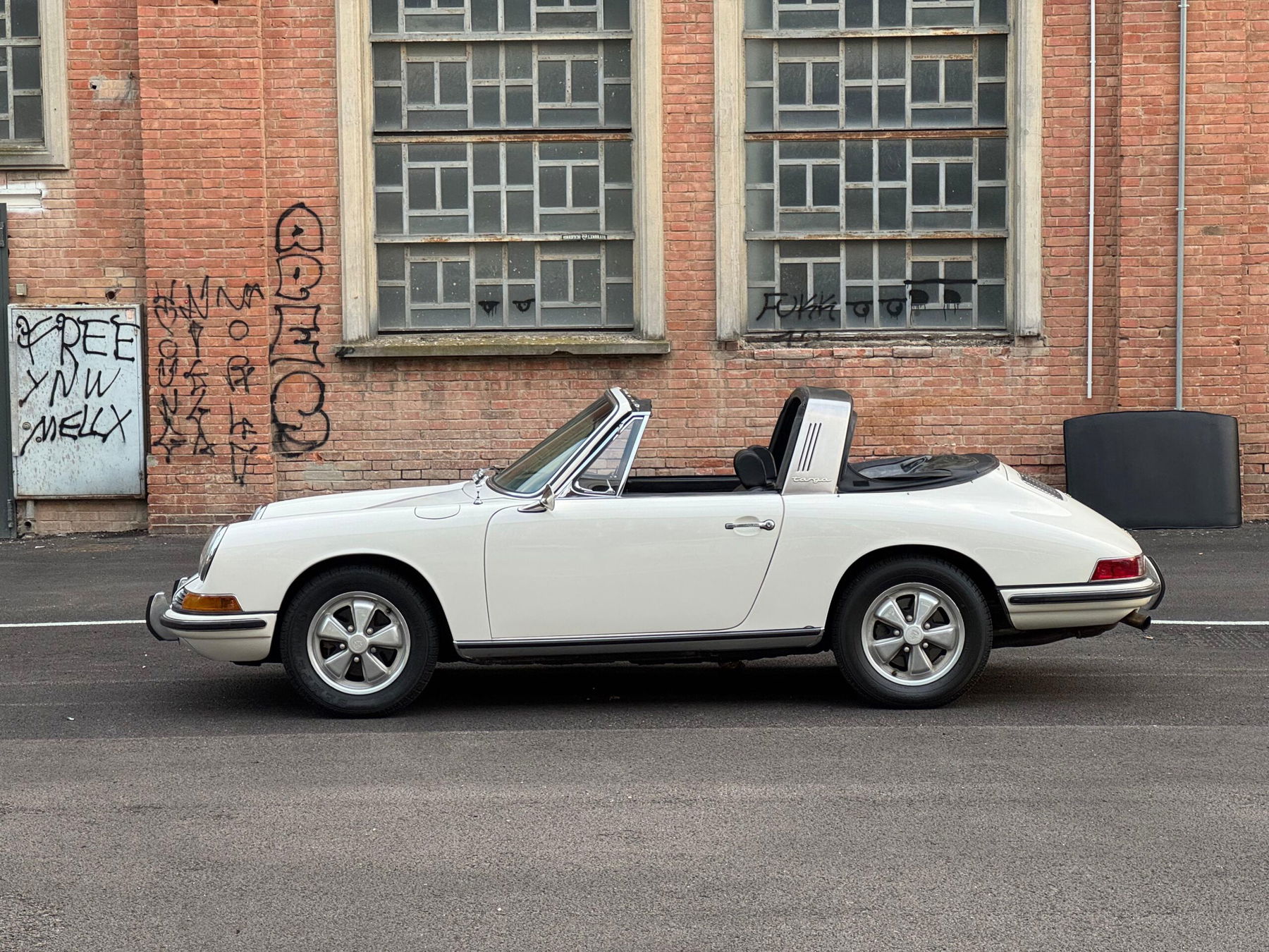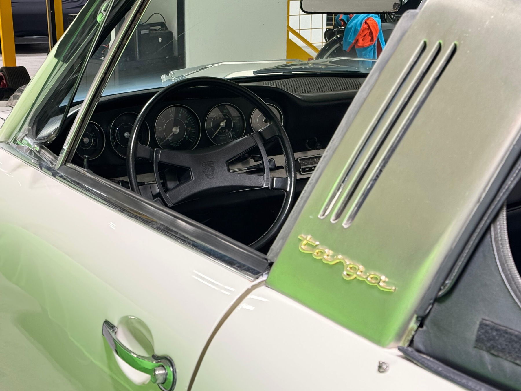 This is a 1967 Porsche 911 Targa Soft Window, the very first year of 911 Targa production. It is the rare soft window version and has remained with its one and only owner from new.
