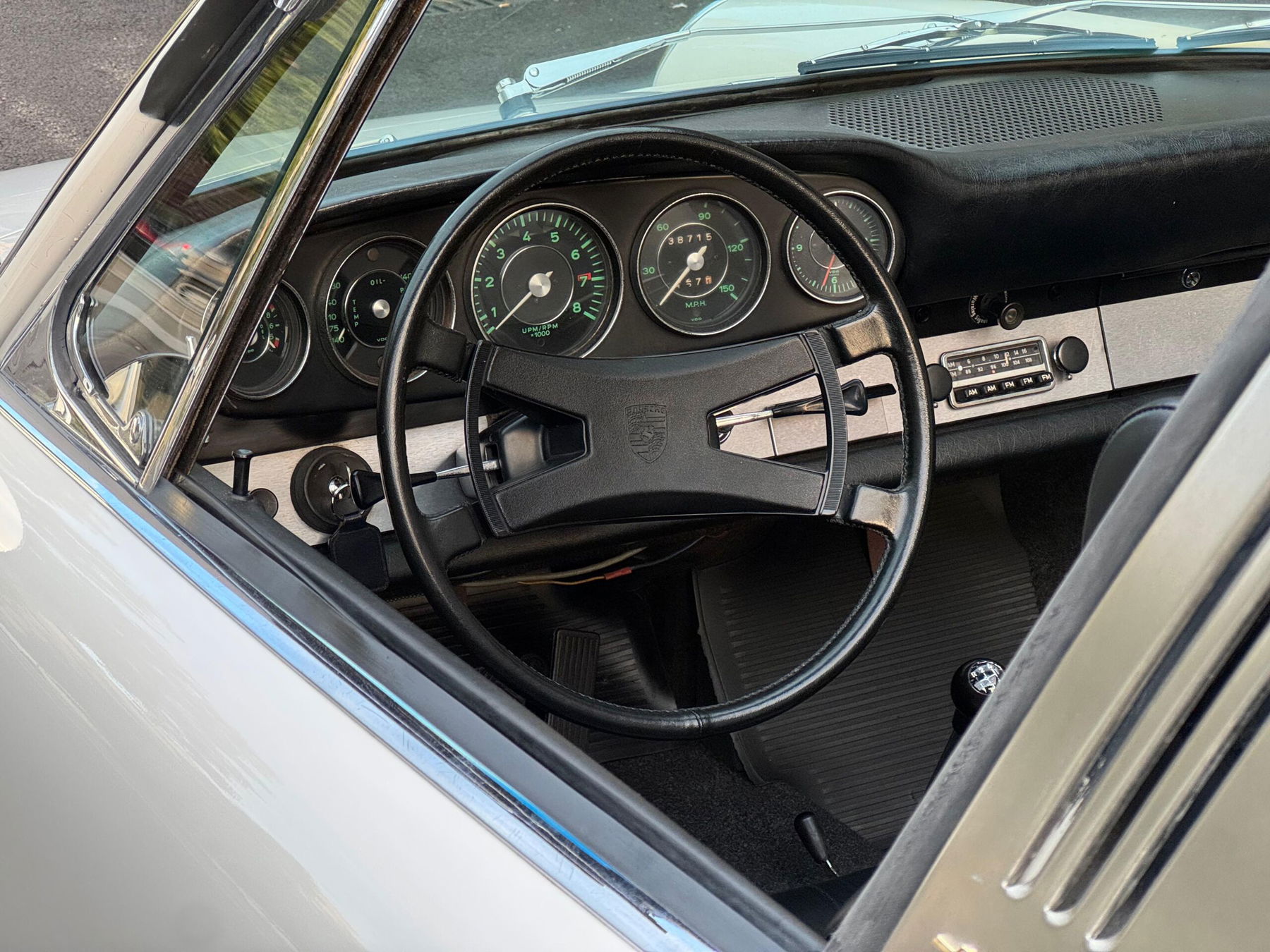 The car retains its matching numbers and features the original S trim, along with 4.5-inch Fuchs wheels, S-style gauges and bumpers, and the correct green-faced instruments. It is offered complete with the original owner’s manuals.