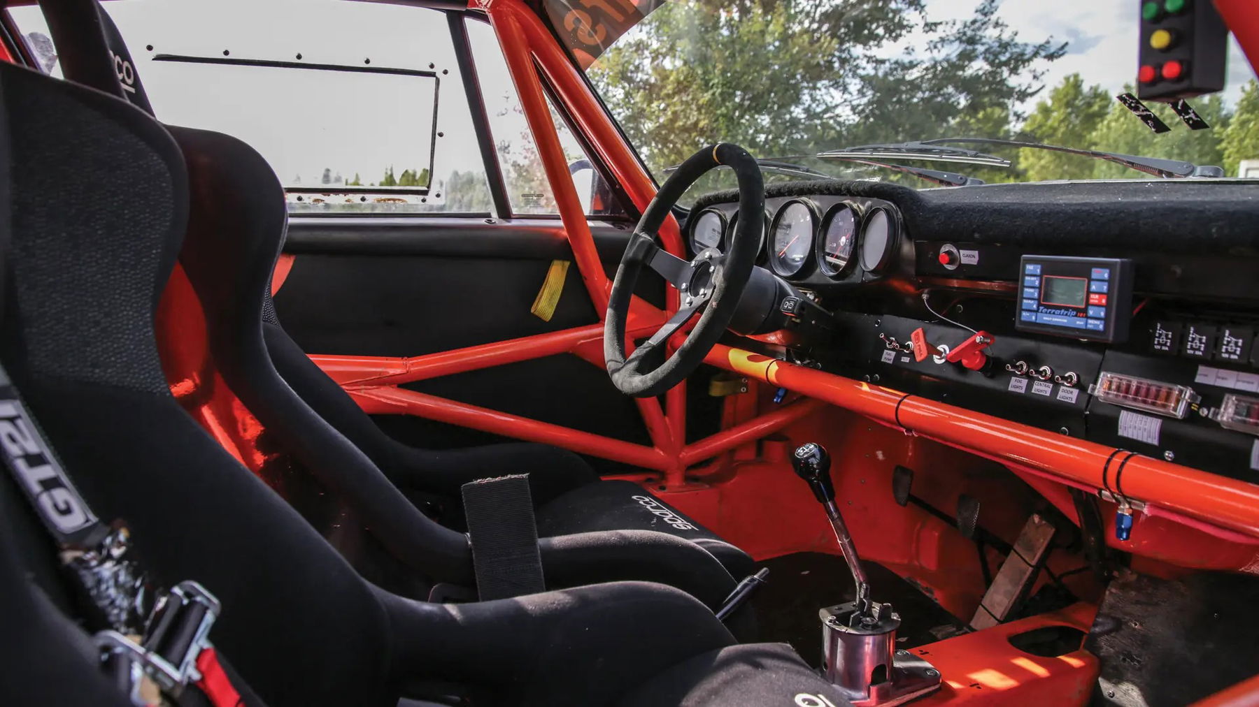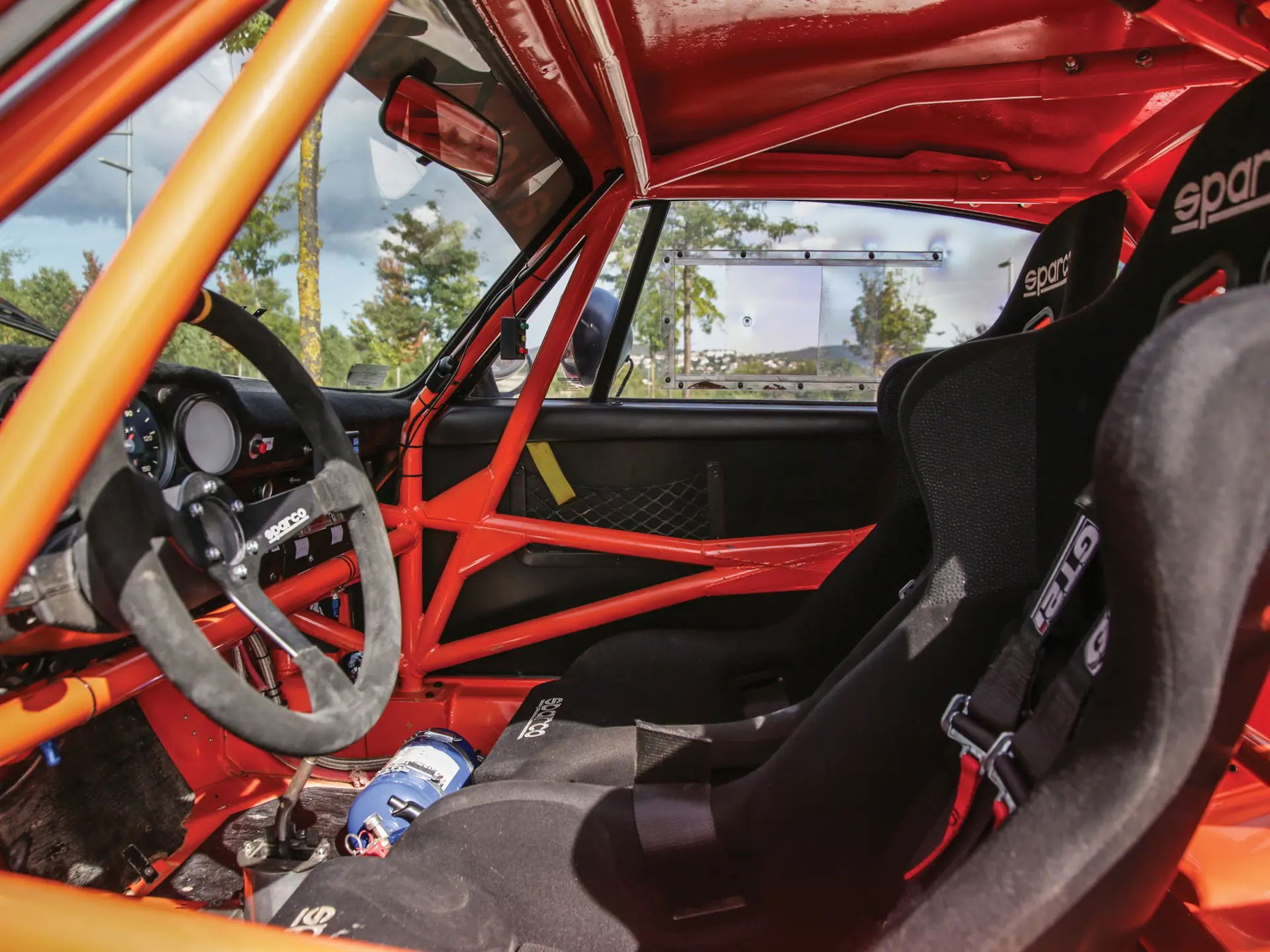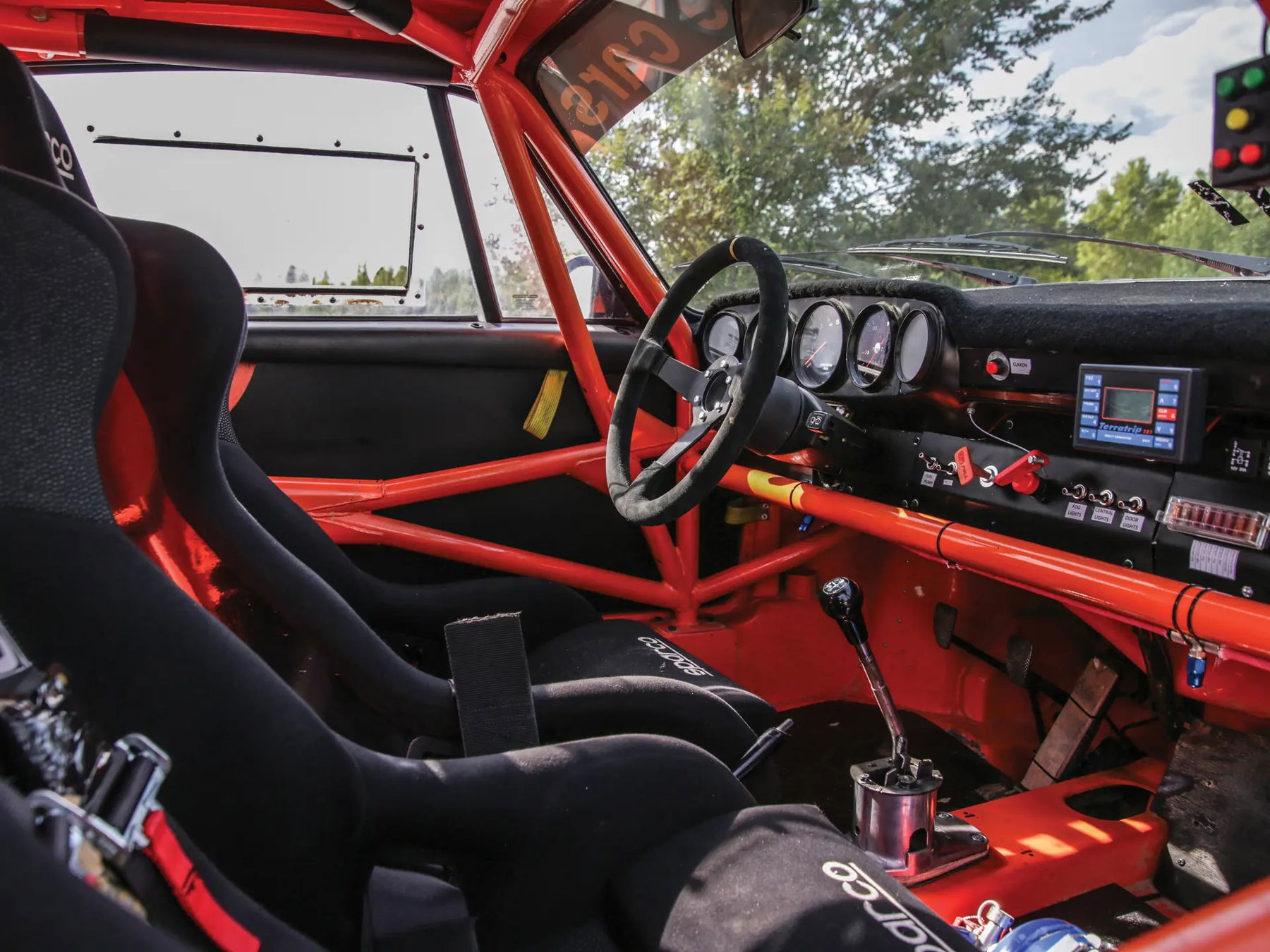 Built as an homage to these competition machines, this Porsche began life as a standard 1977 911 2.7 Coupé but was transformed in the mid-2010s into its current rally-ready specification. Initially dismantled, the chassis and suspension attachment points received additional reinforcement while the body structure’s mass was drastically reduced. The interior was additionally stripped and fitted with a 10-point roll-cage. The windows were replaced with polycarbonate units.