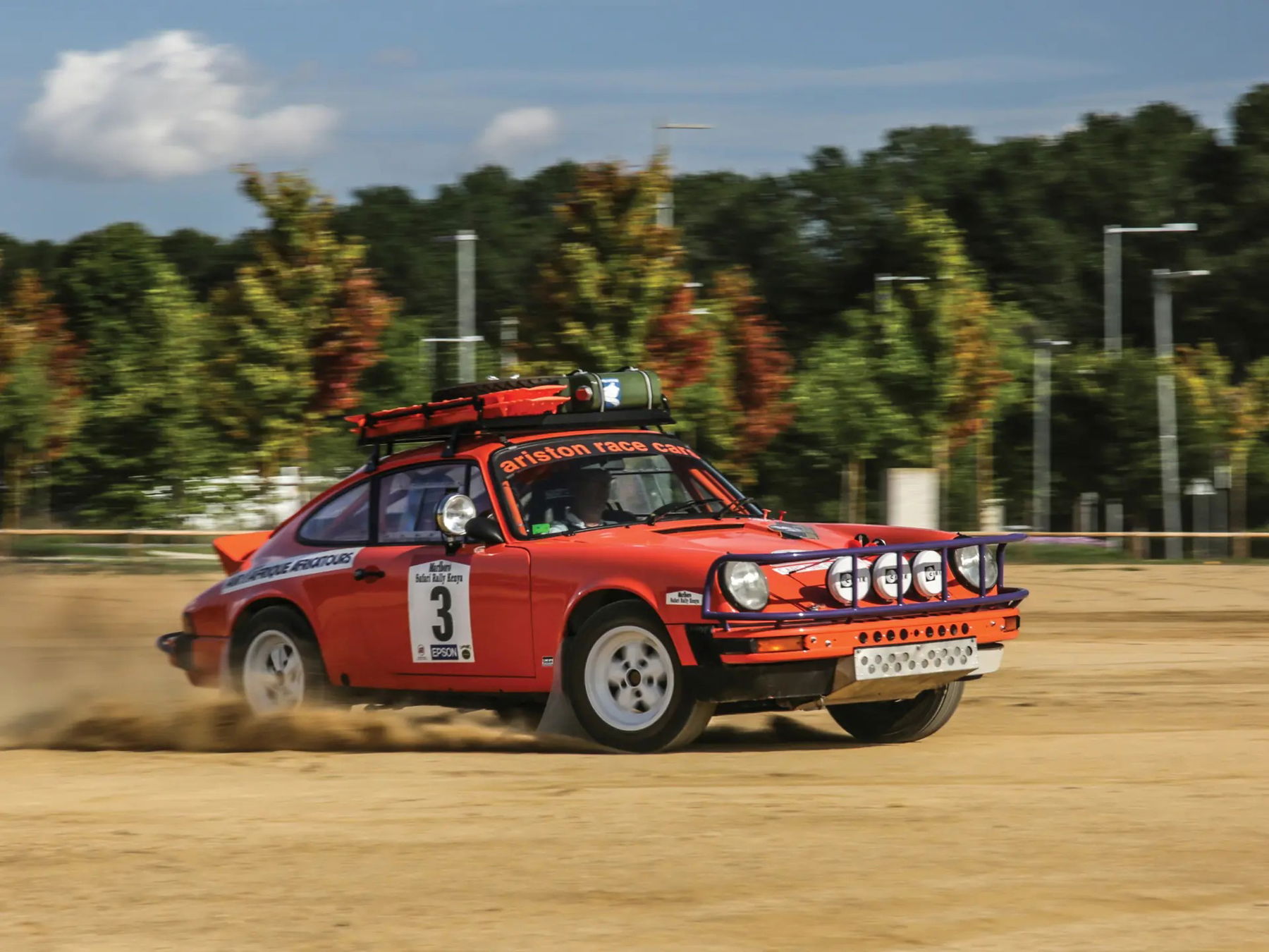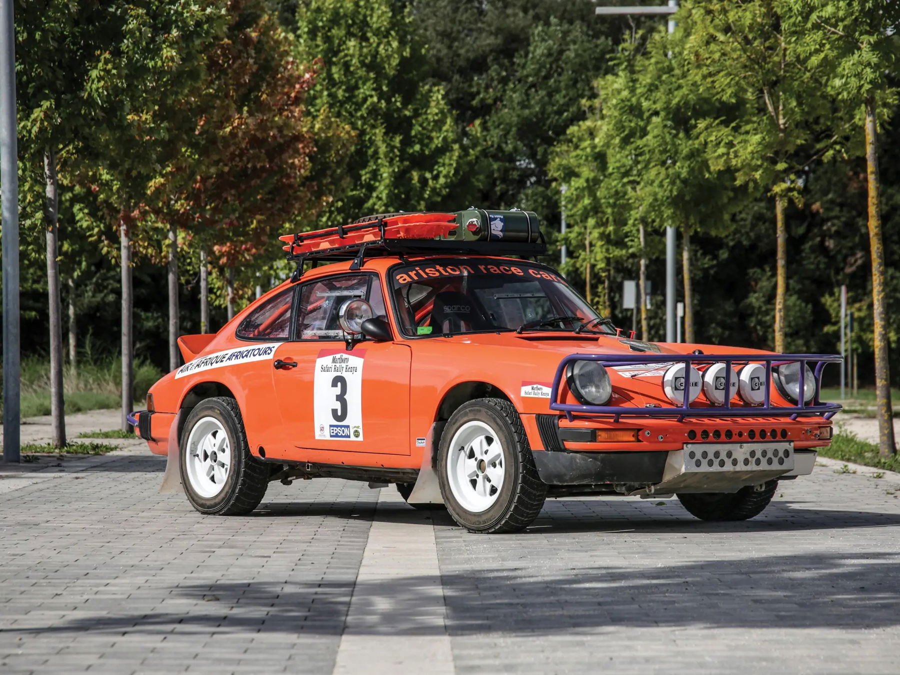 This iconic Porsche 911, which weighs just 960 kilograms fully loaded, is sure to provide an exhilarating driving experience. It has already been proven in the hands of several professional racing drivers and is fully ready for any road or terrain in the world. Like the original Safari cars, it is fitted with Oscar headlights, a roof rack made to measure and designed for raids or safaris equipped with a fuel drum, a spare wheel, plates to get out of mud or sand, shovel, and a pneumatic jack that works with the exhaust gases. Please note, this 2025 catalogue description has been compiled with older photos. Interested parties are encouraged to inspect the car prior to bidding, and newer photos are available upon request. Please contact an RM Sotheby’s Car Specialist for more.