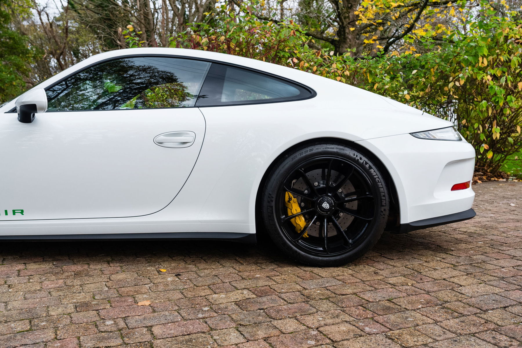 Supplied new via Porsche Centre Reading finished in Grand Prix White over black leather interior and fitted with the following options; 20″ high-gloss black GT3 wheels, front axle lift system, single-mass flywheel, BOSE sound system, 18-way electric adaptive sports seats, PCM with navigation, mobile phone Bluetooth, darkened LED lights with dynamic cornering lights, adjustable and heated seats, interior light package, DAB radio, green stripes, automatic dimming mirrors with rain sensors, clear taillights, PCCB, Bi-Xenon headlights and rear wheel steering.