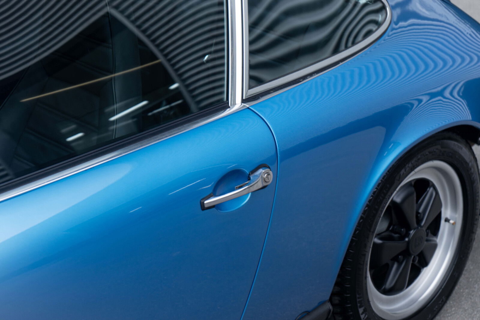 This American-delivered Porsche 911 S left the factory in 1976, finished exactly as it appears today — in stunning Minerva Blue with a black leatherette interior. In 1997, the car was imported to Belgium, where it was well maintained and eventually underwent a documented restoration, supported by invoices and photographs on file. A comprehensive restoration began in 2013. The matching drivetrain was removed and fully overhauled, with numerous new parts, renewed zinc plating, powder coating, and refinished sheet metal. All mechanical systems were carefully inspected, and a stainless-steel exhaust was fitted. The engine pulls strongly through the rev range, and gear changes are smooth and precise.