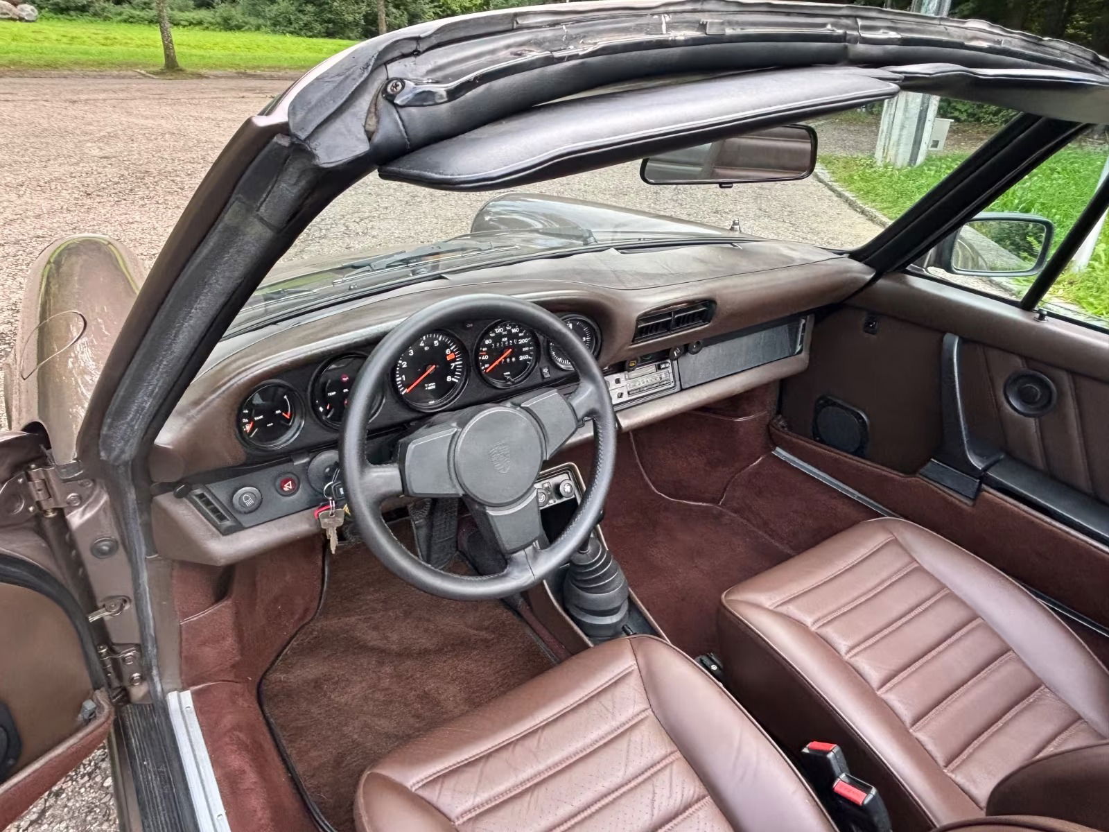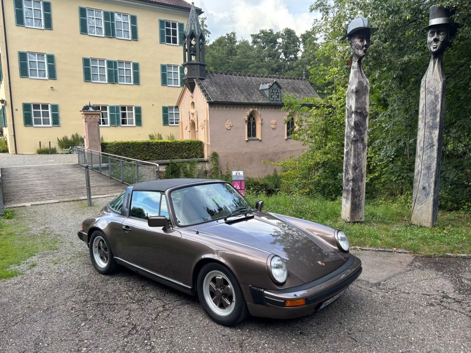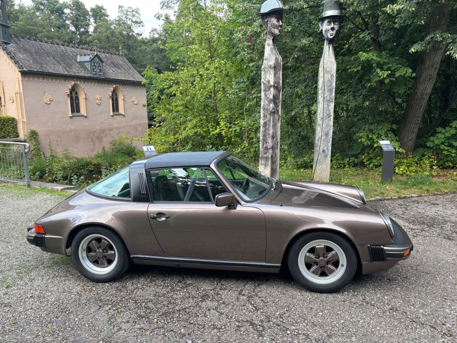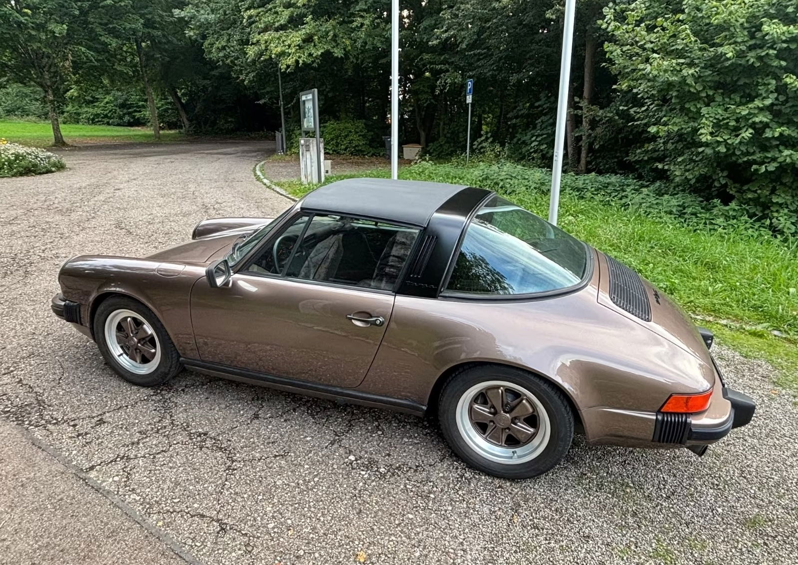 Sepia brown metallic – Brown leather – Colored glass – Electric windows – AIR CONDITIONING – Radio with cassette player – Right-hand exterior mirror – Fuchsfelegen 16-inch wheels – Wheel stars in car color – Engine overhaul approx. 2000 km ago – New Targa roof – Very nice vehicle – Please call to make an appointment before viewing
