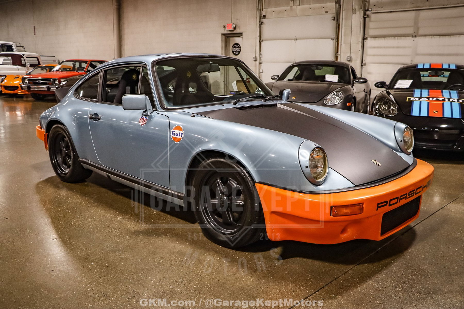 The 1982 Porsche 911 SC 2-Door Coupe is a striking blend of classic air-cooled engineering and bold visual identity. Originally a Texas car, this example wears a striking Gulf Blue with Orange livery that instantly evokes motorsport heritage. The exterior is rounded out with black Fuchs wheels and matching black front and rear decklid panels, adding contrast and a purposeful aesthetic. Its presence is further heightened by the Momo steering wheel and black Momo race seats, hinting at the car’s performance attitude from the moment you approach it.