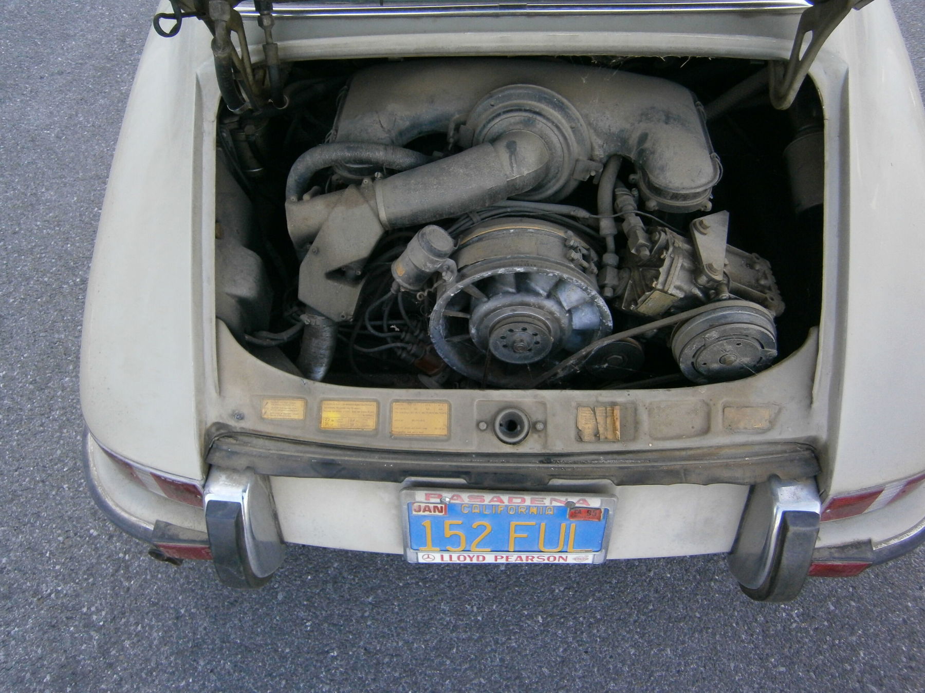 Early untouched Blueplate California oil flap in a special color combination 622 – beige gray. Stored in dry conditions for over 30 years. Vehicle completely untouched in all respects. Perfect car for the connoisseur. Bodywork without stress and free of visible accident damage. Perfect gap dimensions. It is possible to technically overhaul the vehicle and then drive it in this condition, optically reconditioned. Engine matching. Engine performance untested. One of the few opportunities to purchase such an untouched vehicle. Vehicle delivered with 5 x original 5.5x15 Fuchs rims, brown leather interior, air conditioning. Mileage approx. 76,035 miles.