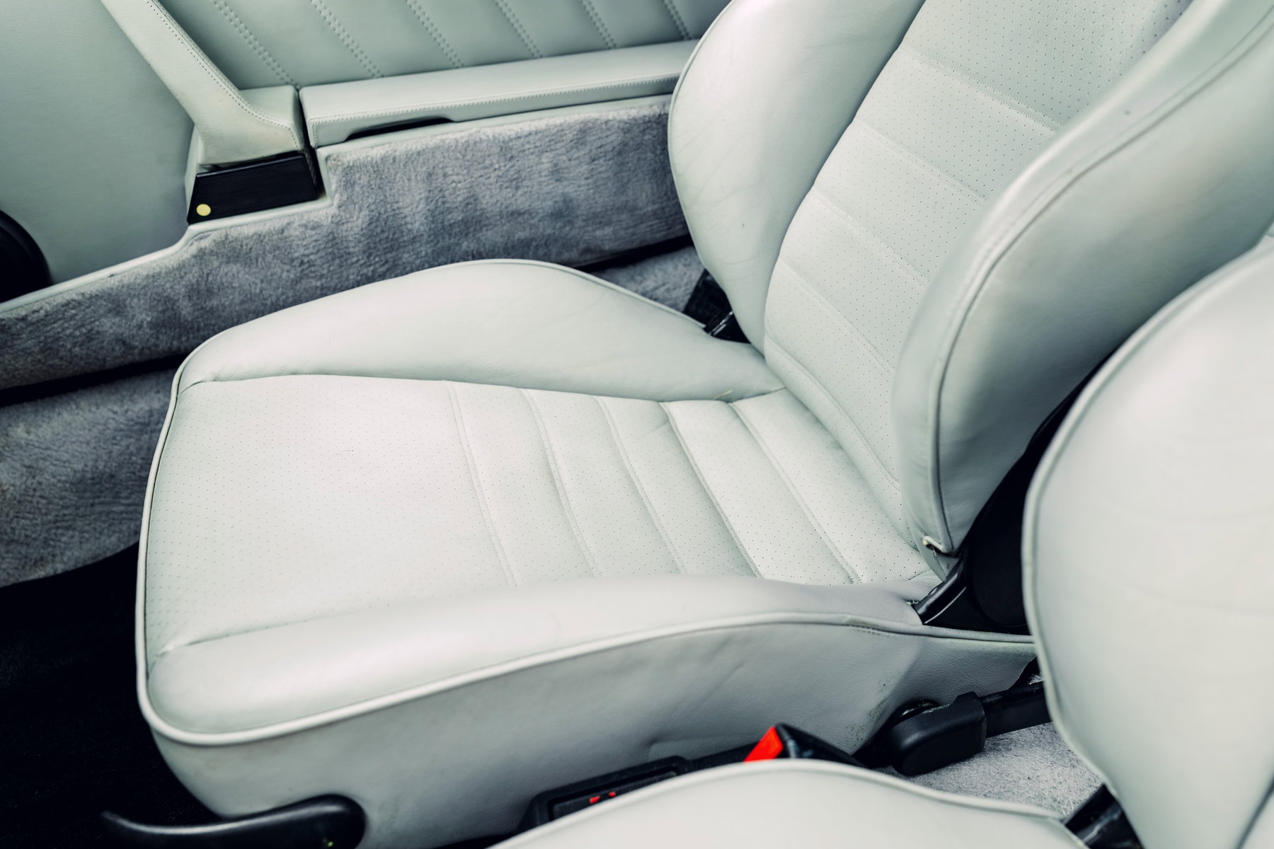 This example is optioned with a factory special leather interior in Silver-Grey. The cabin is further equipped with factory sport seats with electric height adjustment, a limited-slip differential, electric sunroof, Blaupunkt Reno radio, alarm system, and a velour luggage compartment trim.