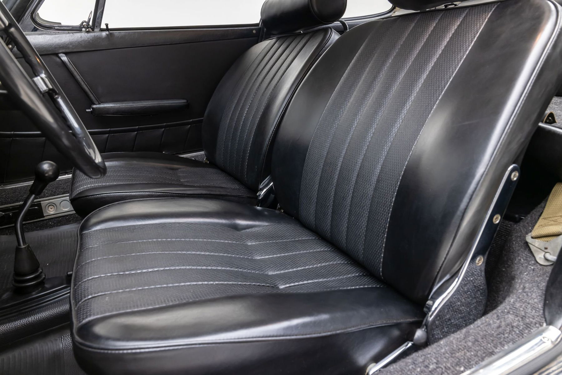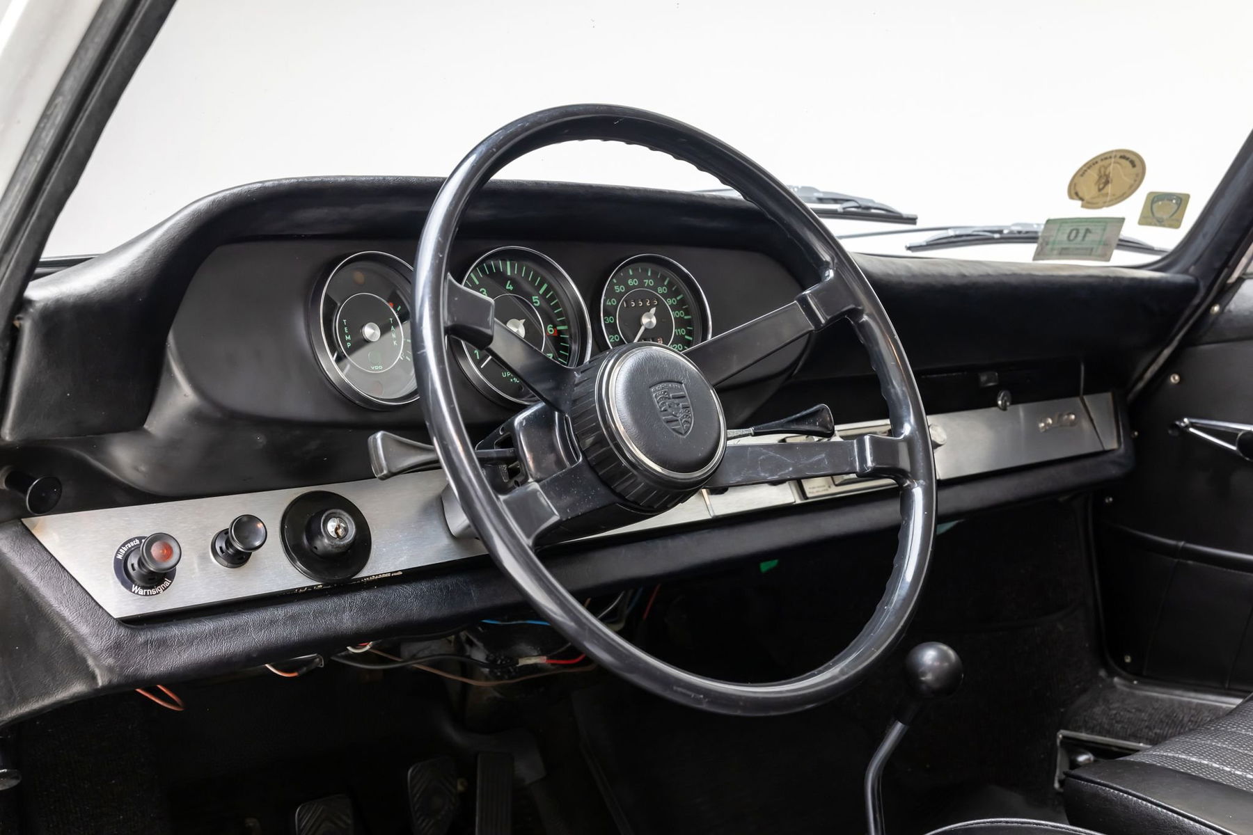 The paintwork has had paint correction and is nicely detailed with patina. It presents beautifully with excellent panel fit and gaps. Exterior features include Hella 128 fog lights, chrome bumperettes, and chrome hub caps with Porsche crests. The interior is in excellent condition with new German carpets, VDM steering wheel, VDO instrumentation, headrests, and a period Pioneer AM/FM radio. The undercarriage is solid and rust-free and has been thoroughly cleaned, detailed, and undercoated to factory specification. The 912 rides on chrome-steel wheels mounted to Vredestein Spring Classic 165 HR 15 tires (date-coded 2025).