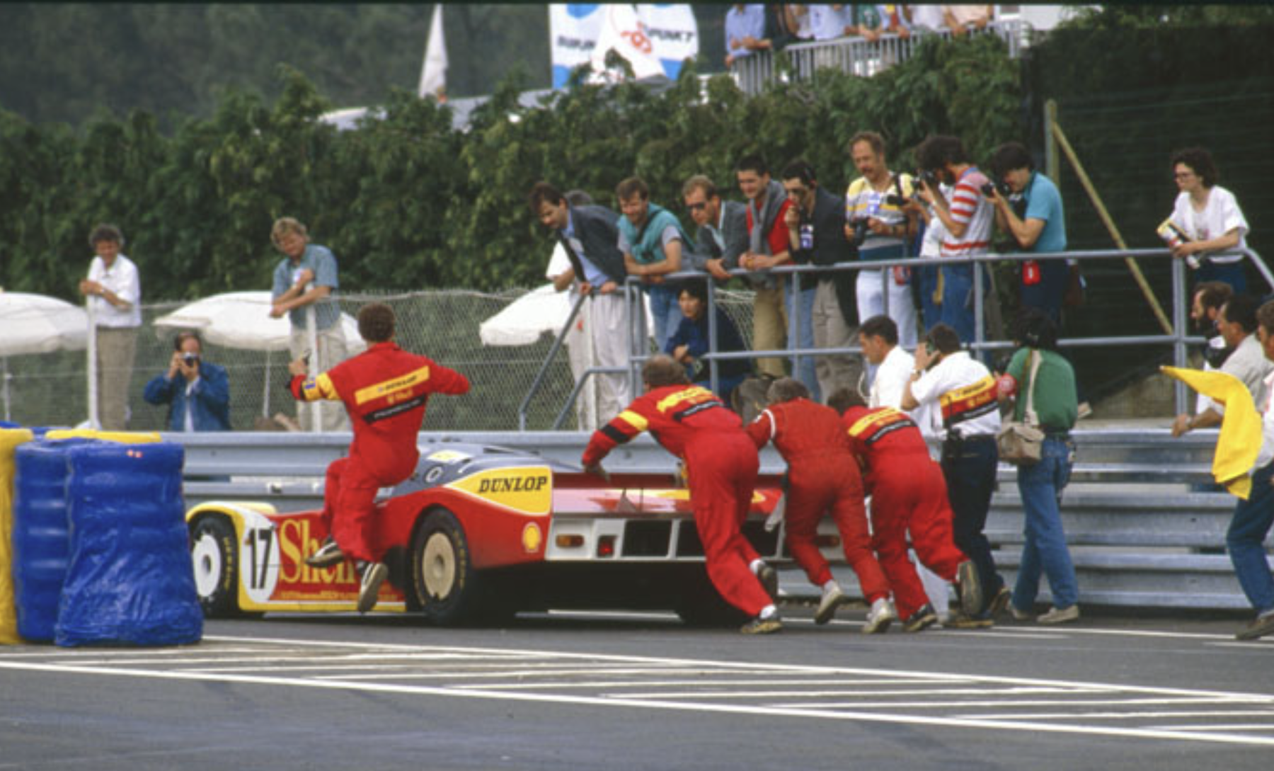 He managed to get ‘010’ back to the pits on the starter motor alone, but two laps had been lost by the time the car rejoined the fray. All three drivers then got their heads down and charged back into contention. By midnight, the 962 was up to fourth, and five hours later it was back in the lead before a broken water pipe relegated the car back a couple of laps.