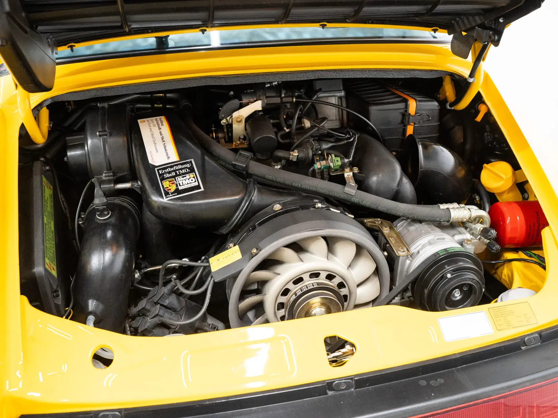 The car has been stripped down to the metal and then repainted in the original color: Paint to Sample Flower Yellow (Bluetengelb). It’s exactly the kind of color you either don’t dare to choose, or you choose consciously because you know what you’re doing. It suits the 964: unique, pure, and timeless all at once. And because this is a 1991 Carrera 2 Targa, you’re also talking about a rare base: one of 730. How many of these were delivered to PTS is unknown, and that speaks volumes about how special this build is.