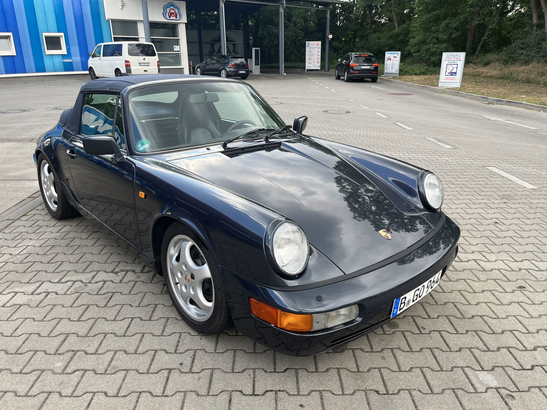 Very nice, unmodified convertible with verifiable mileage. There is a service booklet with 12 entries and a folder with various documents. The vehicle is accident-free and still has most of its original paintwork. The interior is almost flawless. The soft top is original, the rear window has been replaced. It has Cup rims and H & R suspension. My collection includes three other 964s (all coupés). I am only selling this model because I no longer have any use for it.