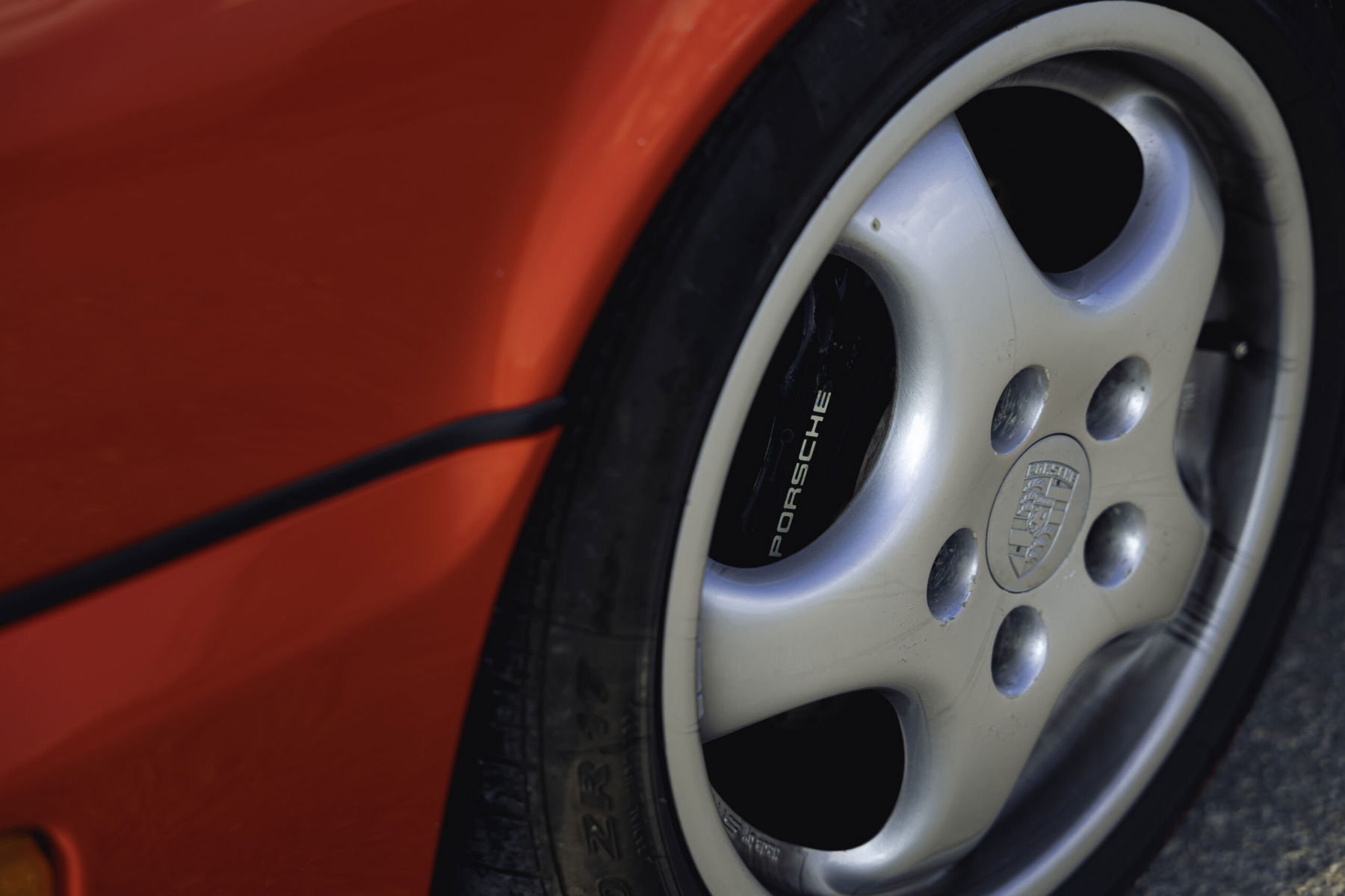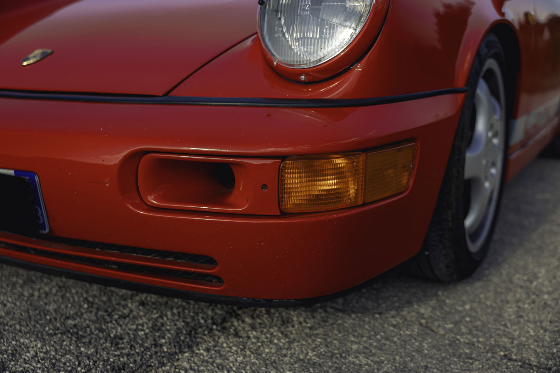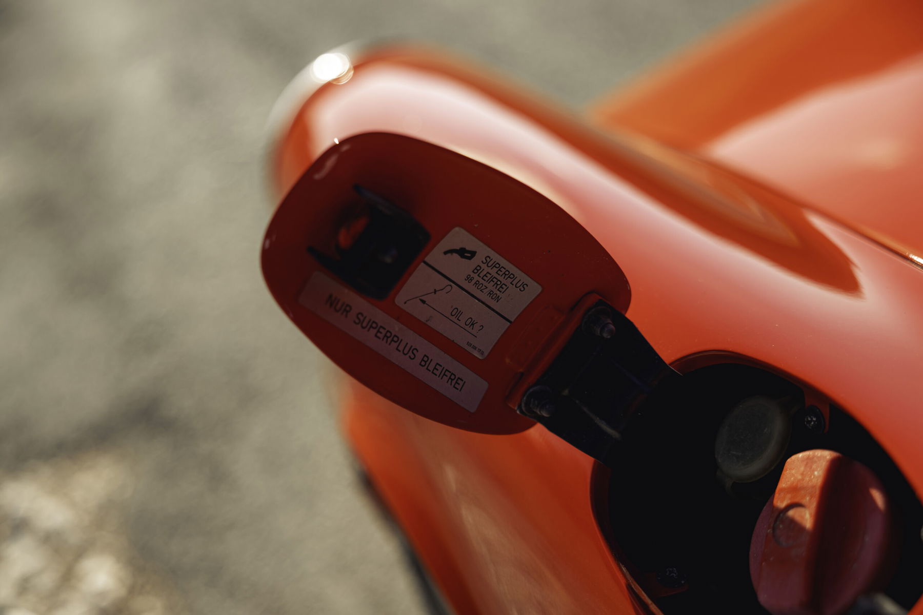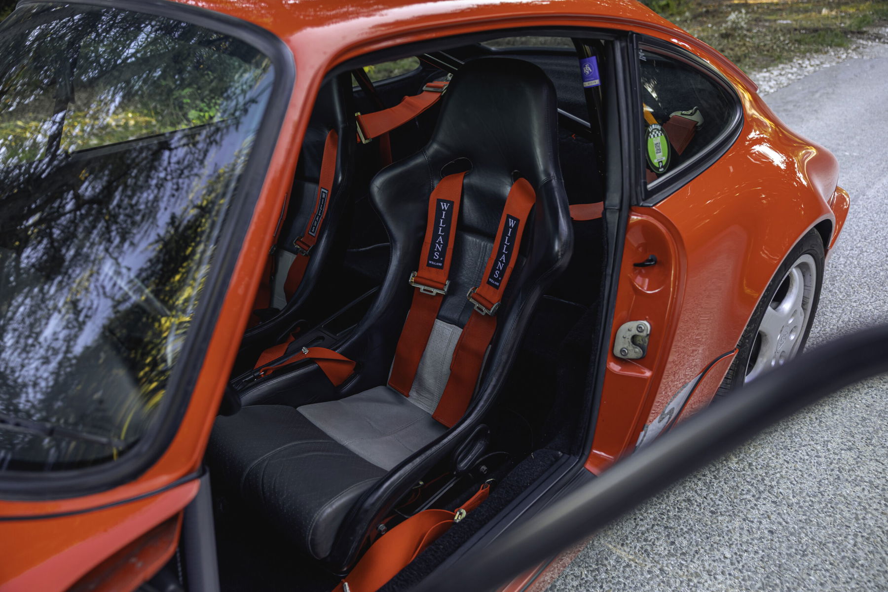 Exterior: The bodywork is sound. It has already been repainted in its original colour: Indian Red. The paintwork is in very good overall condition. We note some stone chips on the front. The car is equipped with its original headlight covers and STTI magnesium rims. The paint on the rims is peeling in places and they show some signs of rubbing.
