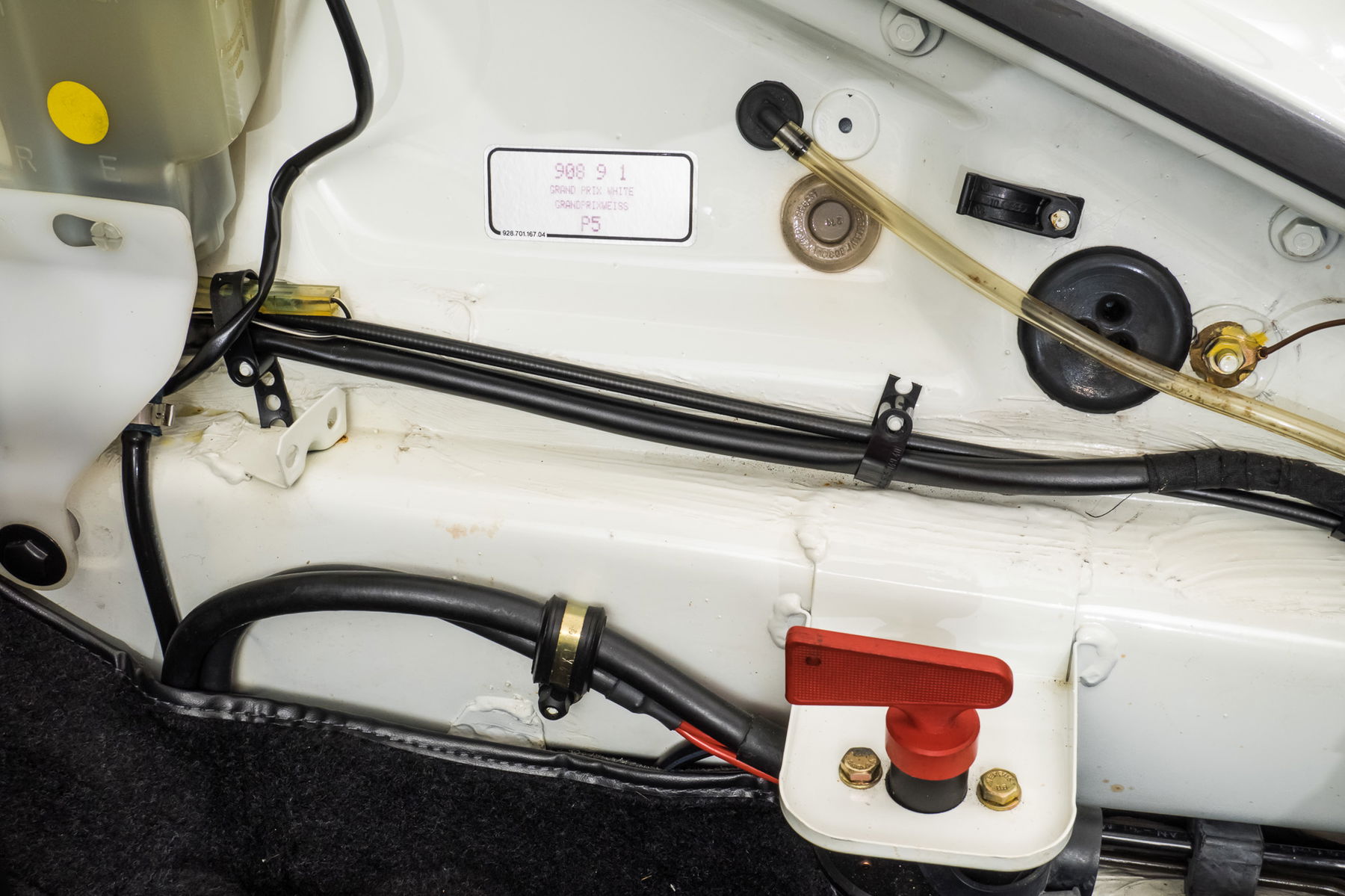 German vehicle with only one registered owner in the vehicle registration document! Ultimately stored in a private collection for 13 years. Completely original condition. Very rare color combination – Grand Prix white with black leather & three-color magenta.