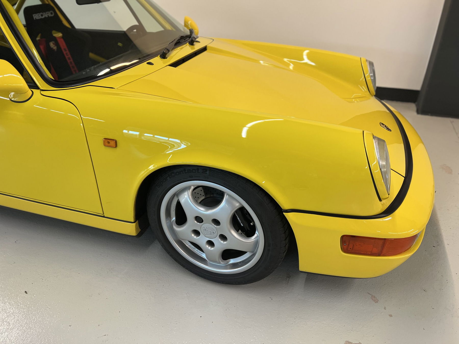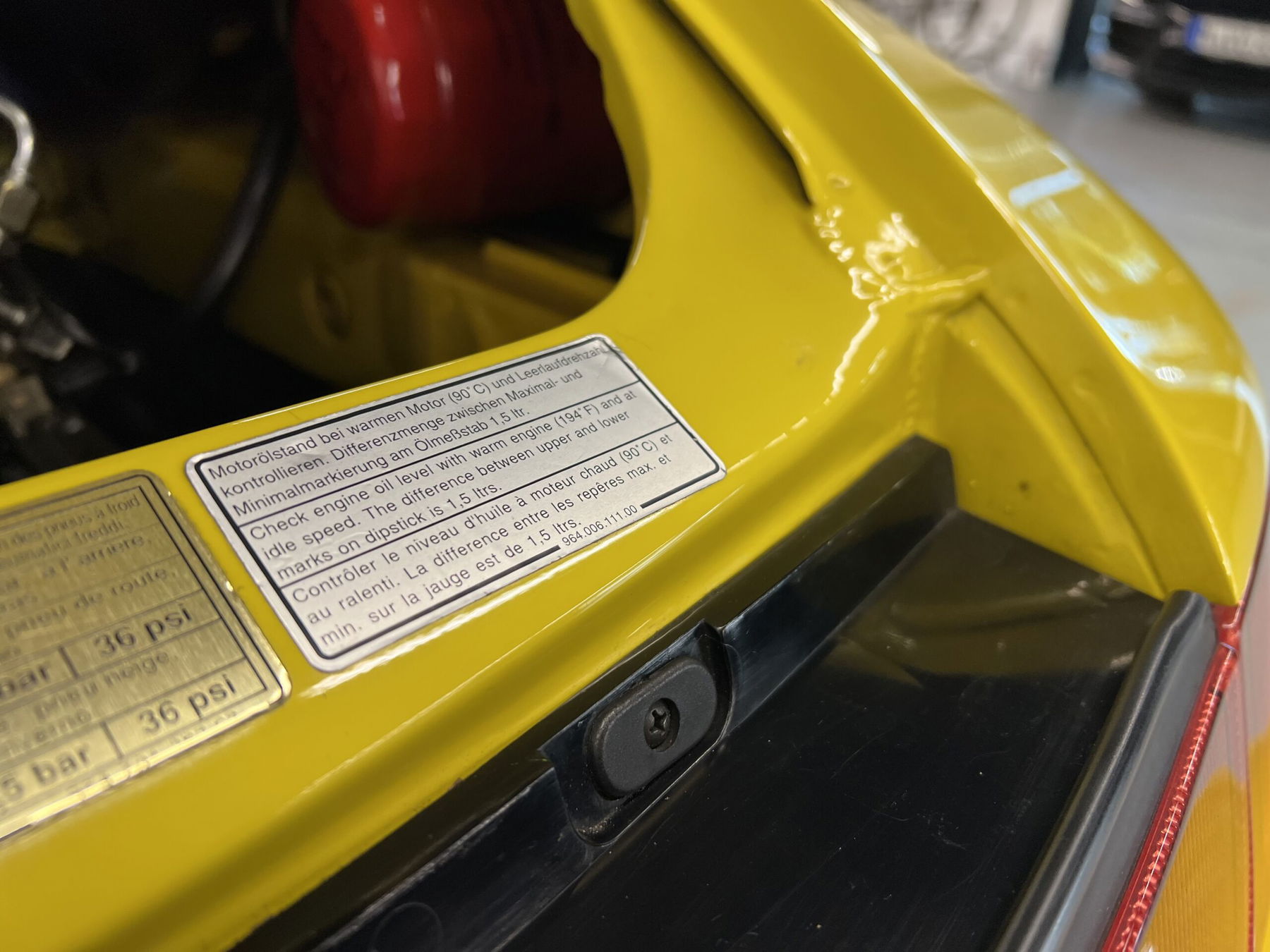 The 964 RS N/GT Clubsport (M003) was produced on December 18, 1991 and first registered in Ferrari yellow on February 12, 1992 in Bad Oeyenhausen.