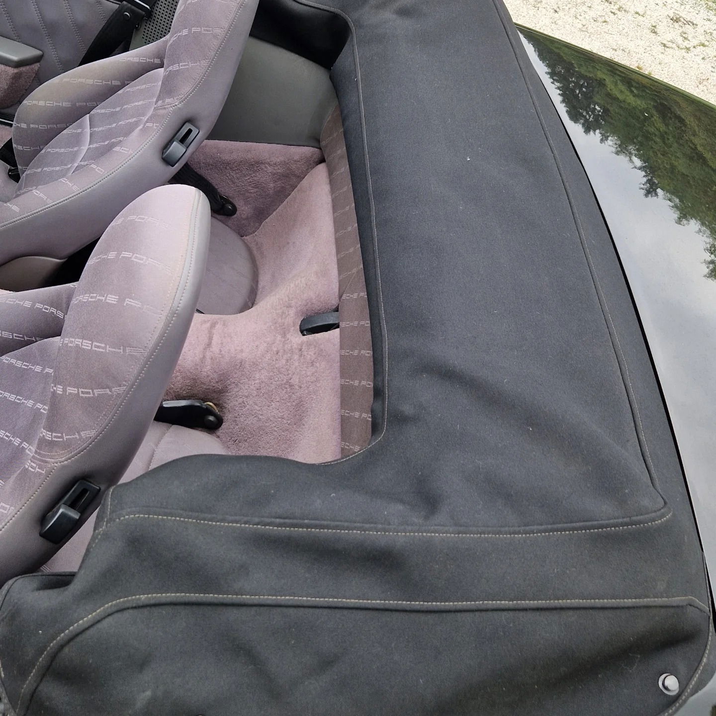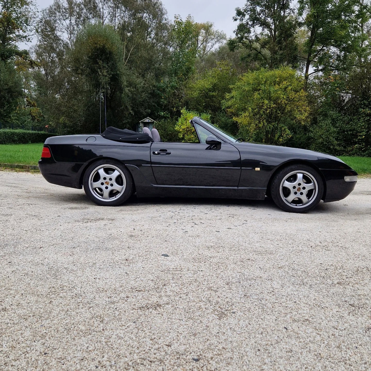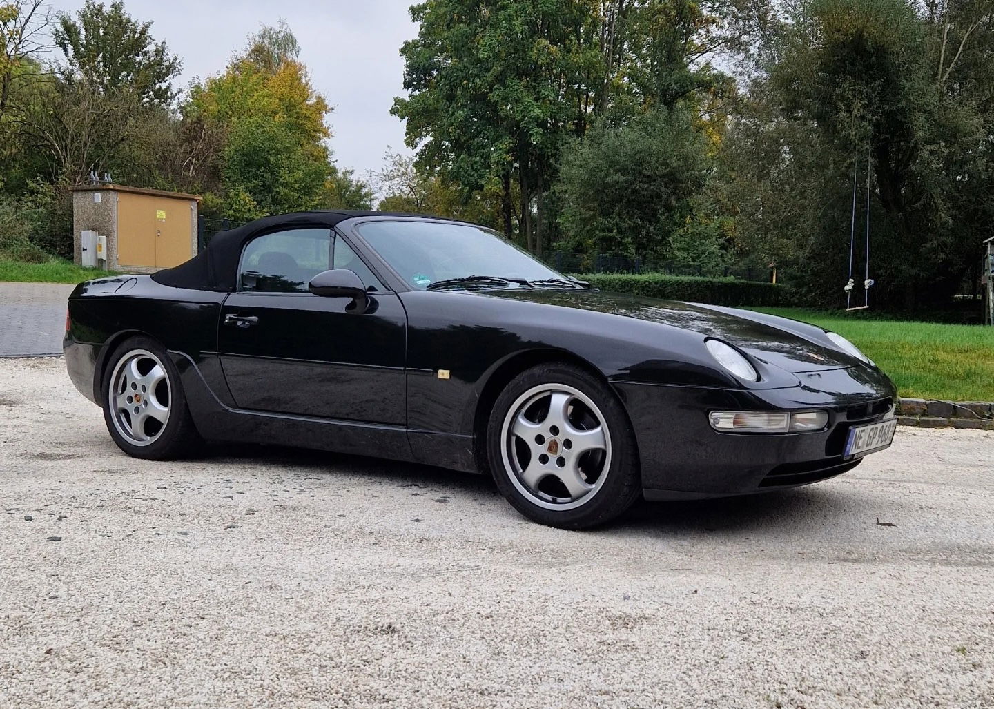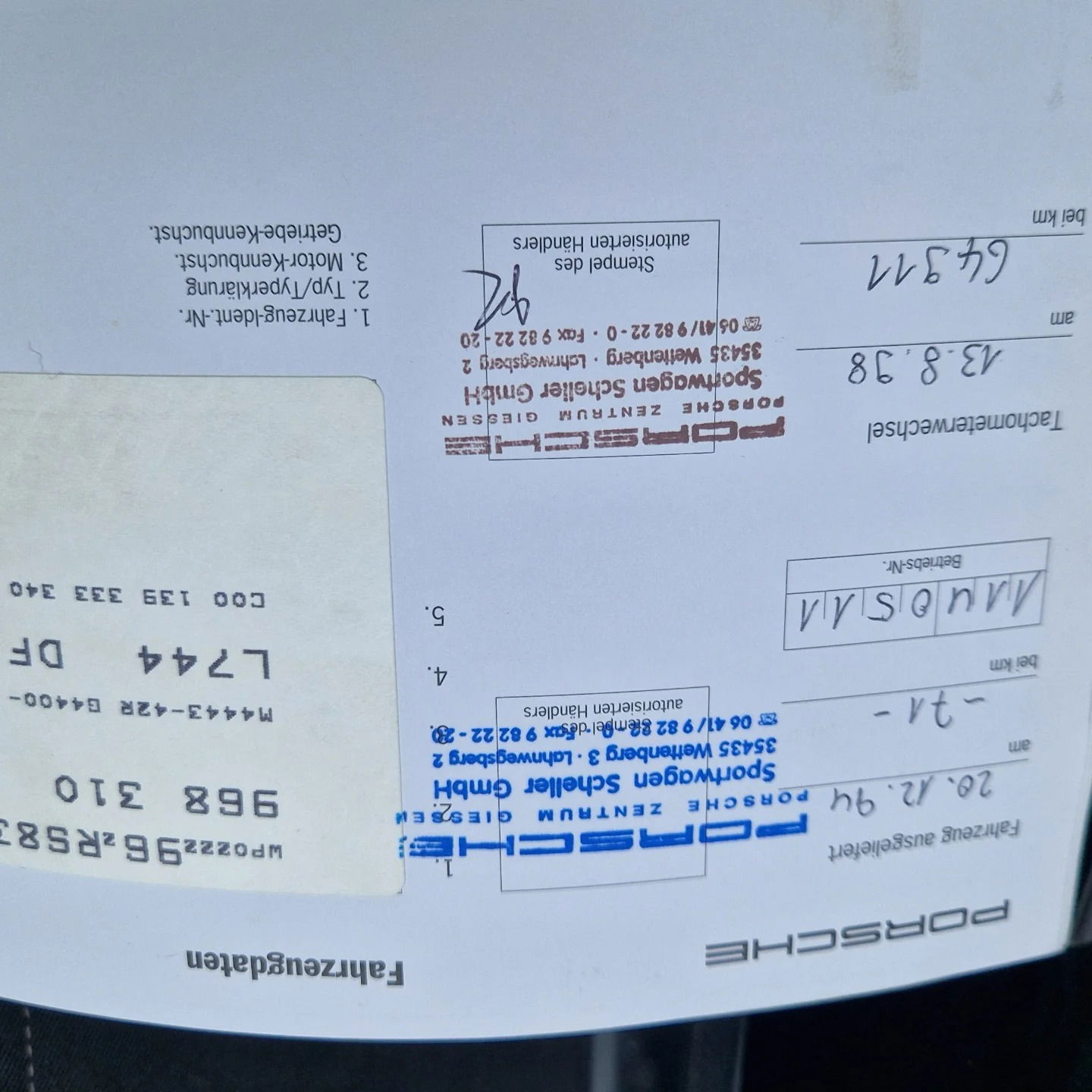 This Porsche 968 Cabrio with 6-speed manual transmission was first registered in December 1994 and is one of the last models built. It was initially registered to the Porsche Center, then spent four years as the third vehicle owned by a banker from Frankfurt. I have owned the car for 24 years. The vehicle is registered from April to October and has always been serviced according to the service schedule. The mileage is approximately 165,000 km, with the speedometer having been replaced at around 61,000 km – the current speedometer therefore shows 104,000 km. A new soft top was installed in 2023. The Porsche is in very good condition!