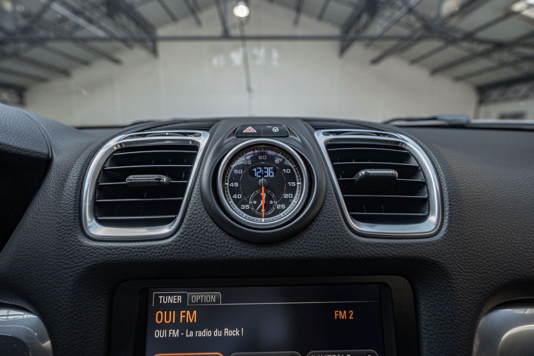 The original wheels of this Cayman S have been replaced by OZ Racing Ultraleggera wheels finished in satin black, providing a perfect contrast with the Carrara White paint.