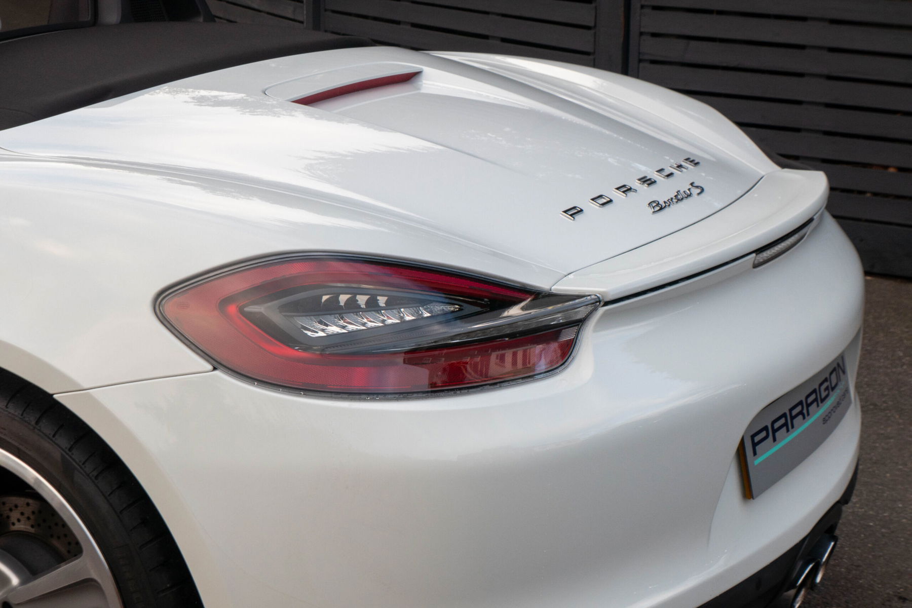 Porsche Boxster S (981) 7-speed PDK, Carrara White, Black leather sports seats, air conditioning, Porsche stability management, automatic headlights, stop/start function, on board computer.