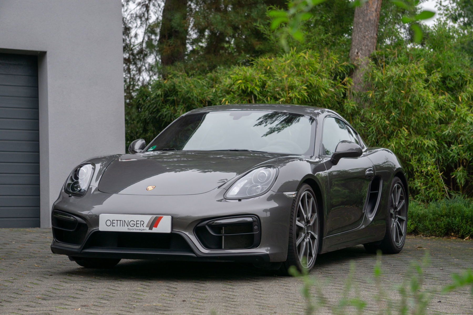 The agate gray Cayman was delivered to its first and so far only owner at the Porsche Center Schwäbisch Gmünd in the summer of 2014, fulfilling his dream of owning a sports car. As the immaculate condition of the vehicle shows, it was only driven in good weather and during the summer months. The Cayman was only driven on public roads. No race track or similar.