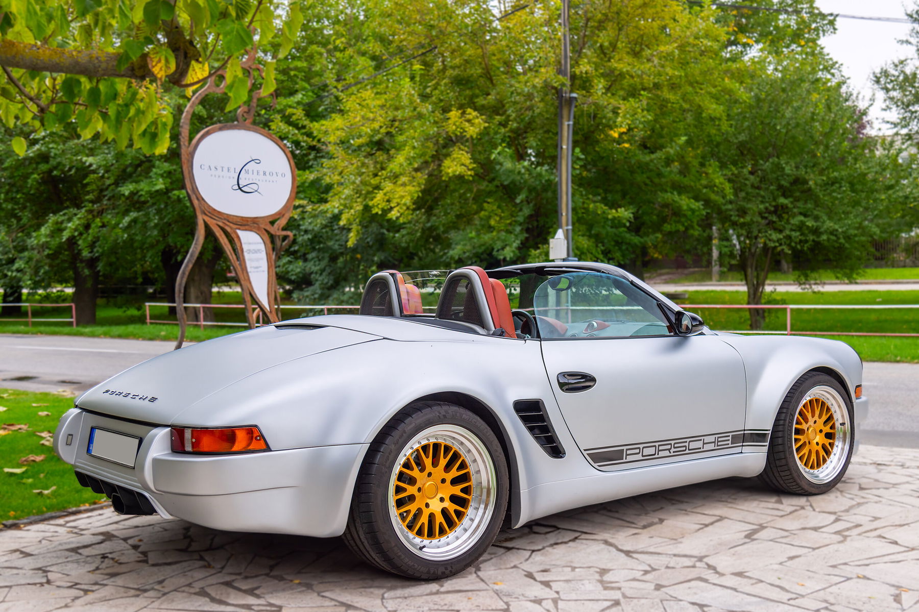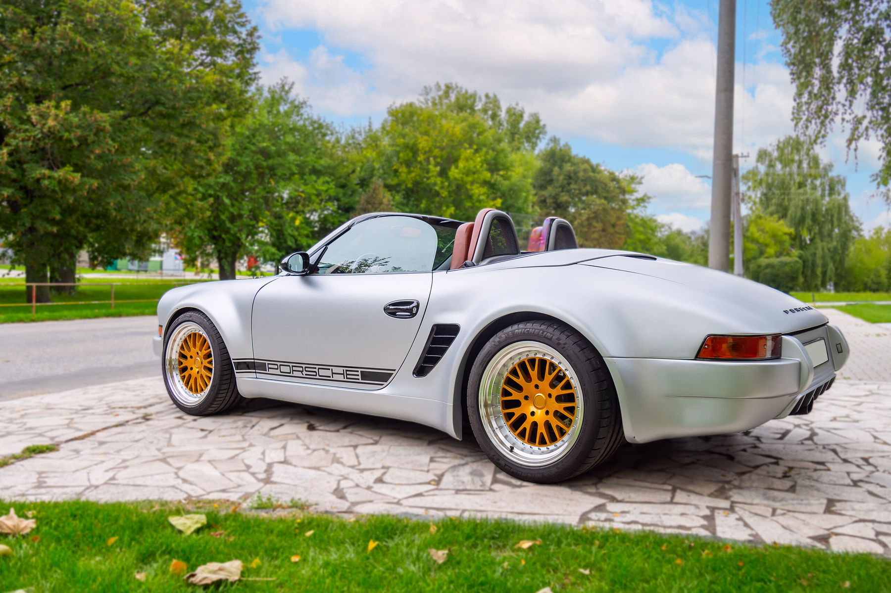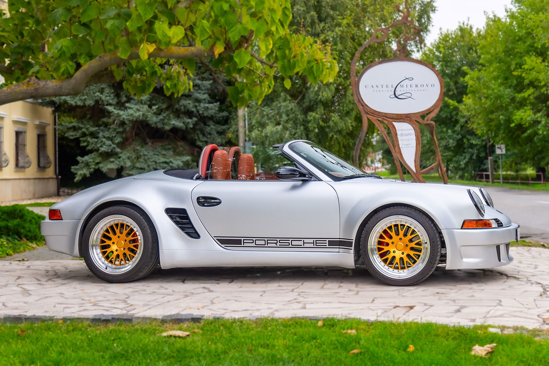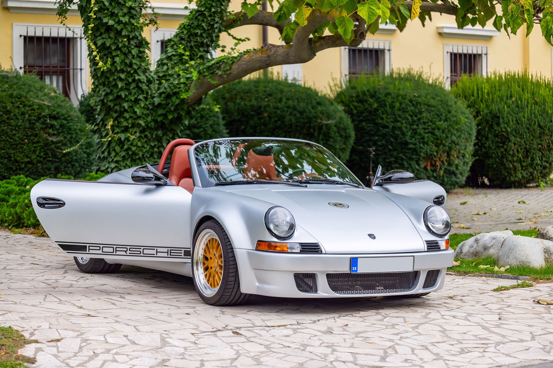 Visually, the car pays homage to the legendary 911 RS models. It features a custom wide-body design with period-correct details and proportions that give it a muscular, purposeful stance. Every line was crafted to capture the essence of 1970s Porsche performance aesthetics – reimagined through modern materials and finish.