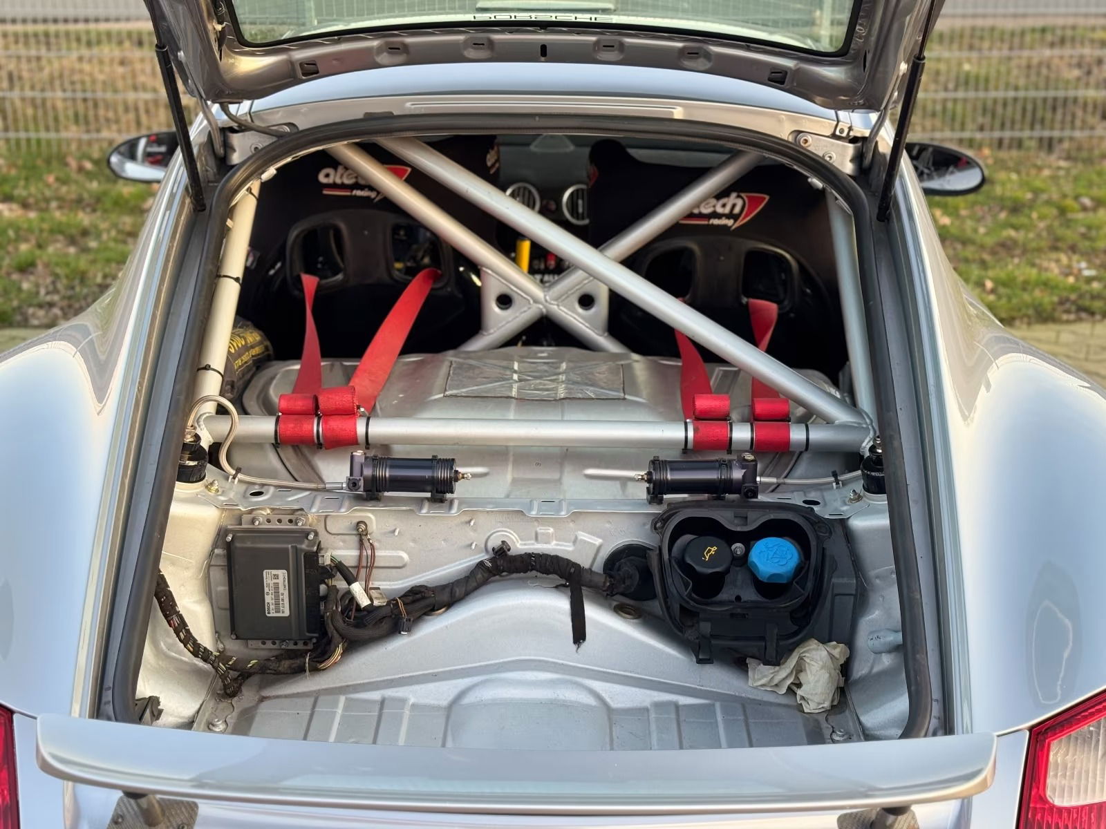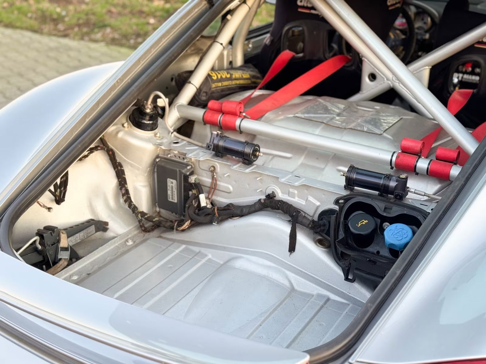 This Cayman S has been painstakingly built into a rally car with great attention to detail. The body impresses with its uncompromising motorsport look and radiates pure aggression. The paintwork and rally decals underline the uncompromising racing look. A few authentic battle scars, no dents - this vehicle is an absolute eye-catcher