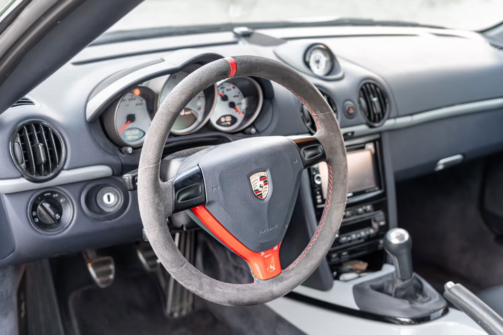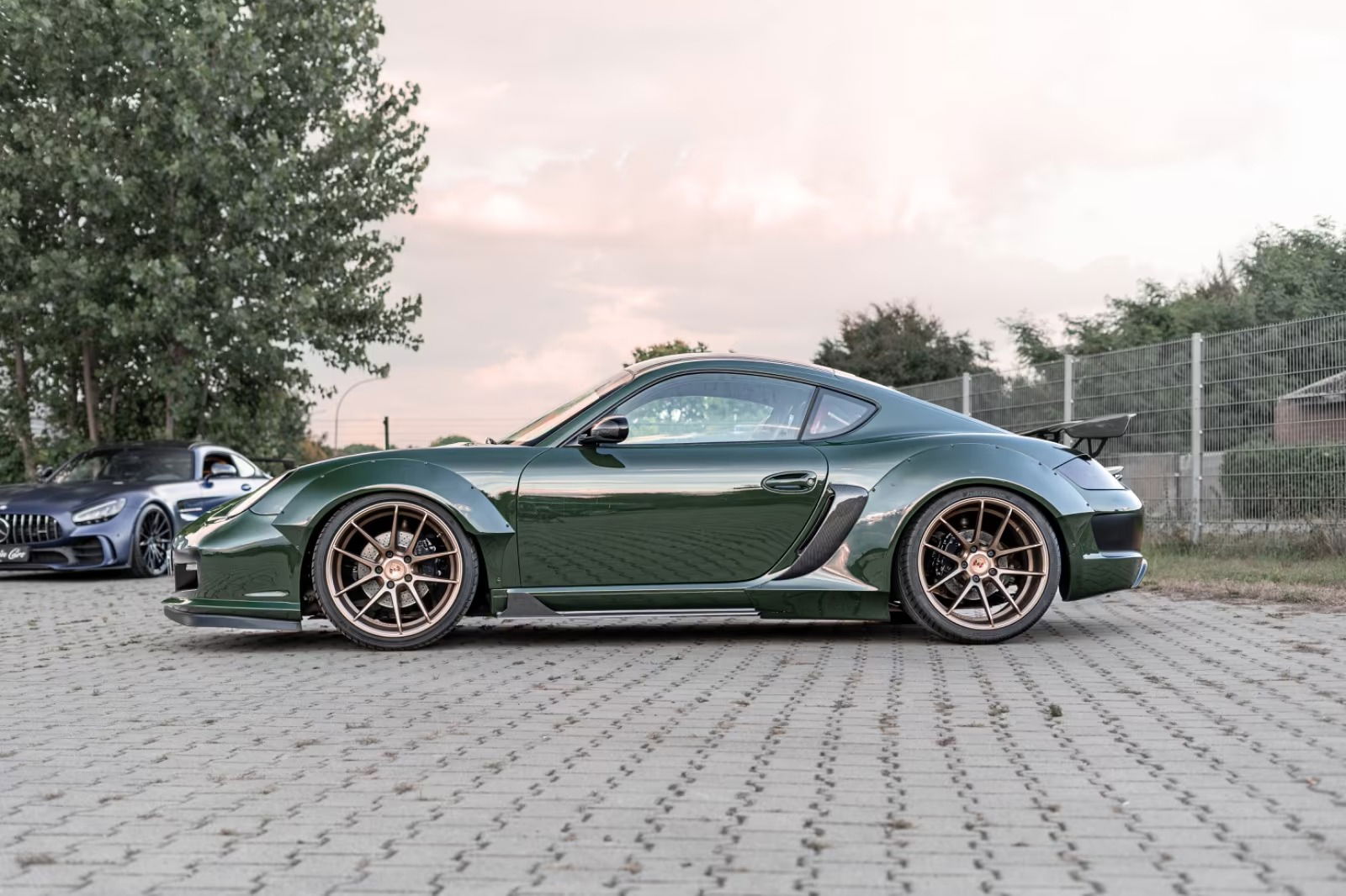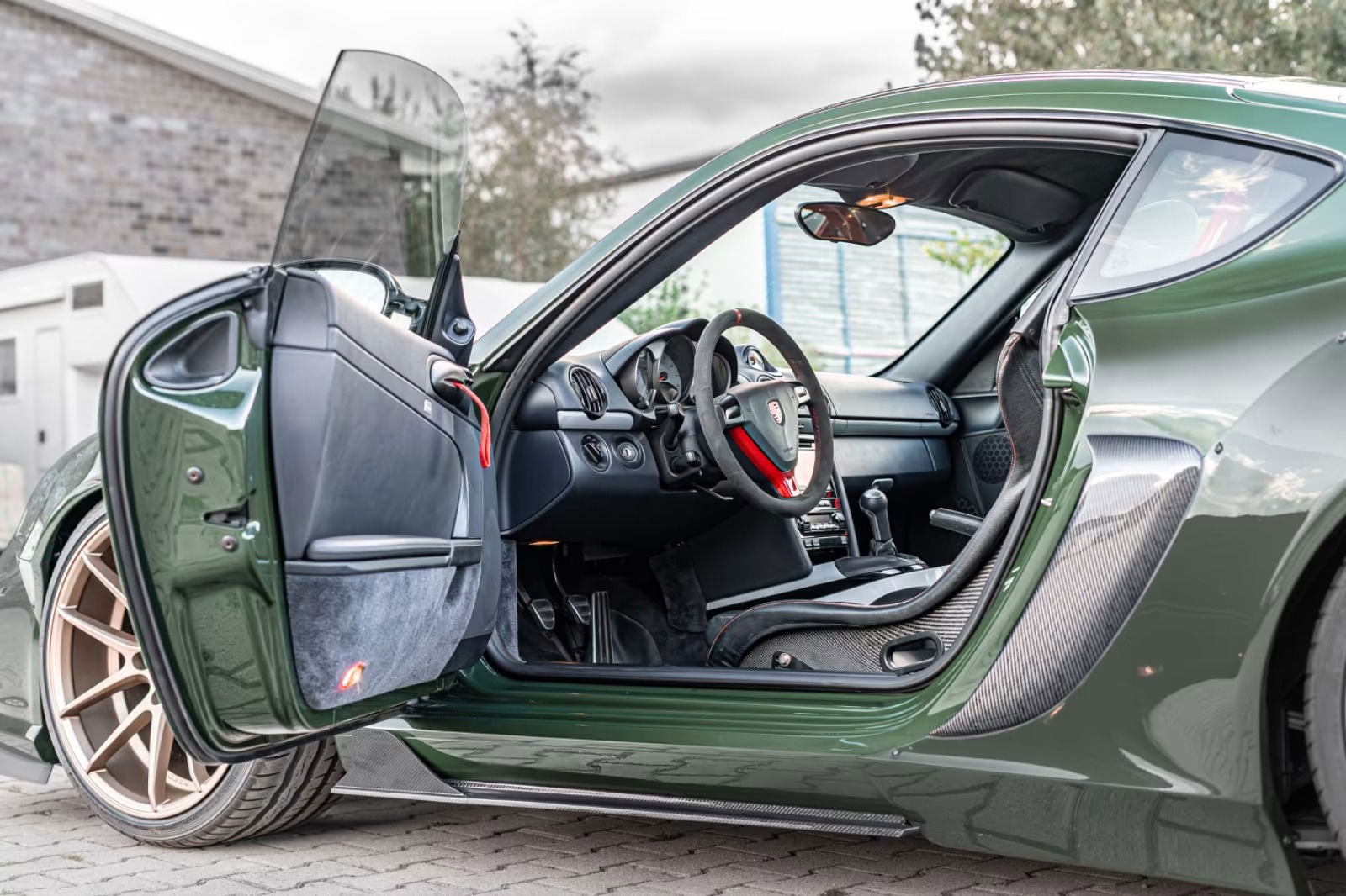 The elaborately converted Pro Street wide body gives the Cayman S an extremely powerful appearance. The bodywork has been perfectly adapted and repainted, and the car is in immaculate condition – without a single scratch or dent. The conversion was carried out professionally and documented. The wider track in combination with the sporty chassis is a real highlight, not only visually but also in terms of driving dynamics.