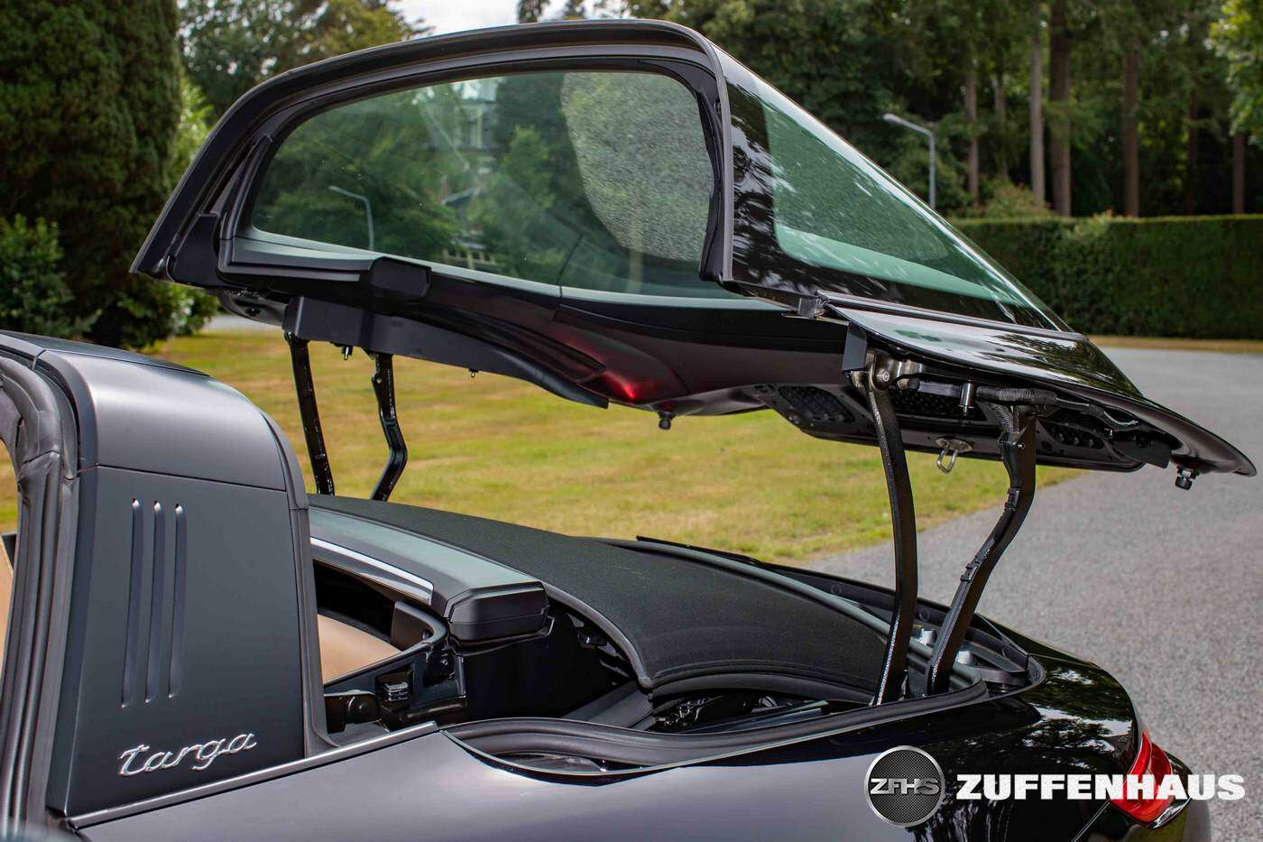 The 911 Targa has had to miss something beautiful in the past 20 years. The typical roll bar is so characteristic, if only because of the Police who proudly drove these Porsches for years. They still had real prestige on the highway back then. Fortunately, this style element is back, because it gives it such a great look. Especially in a dark color, such as this Deep Black Metallic, the roll bar with panoramic rear window is clearly visible.